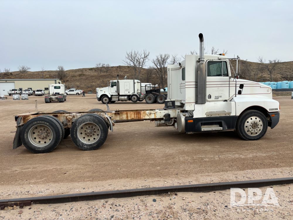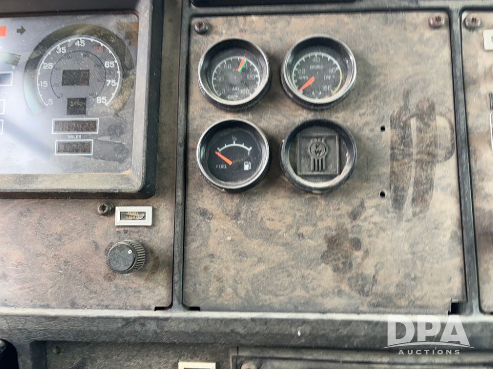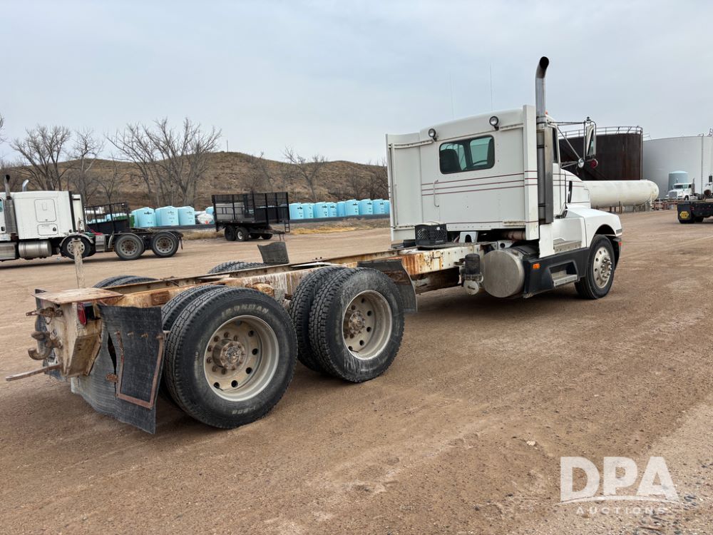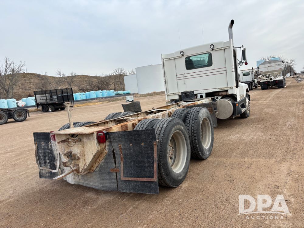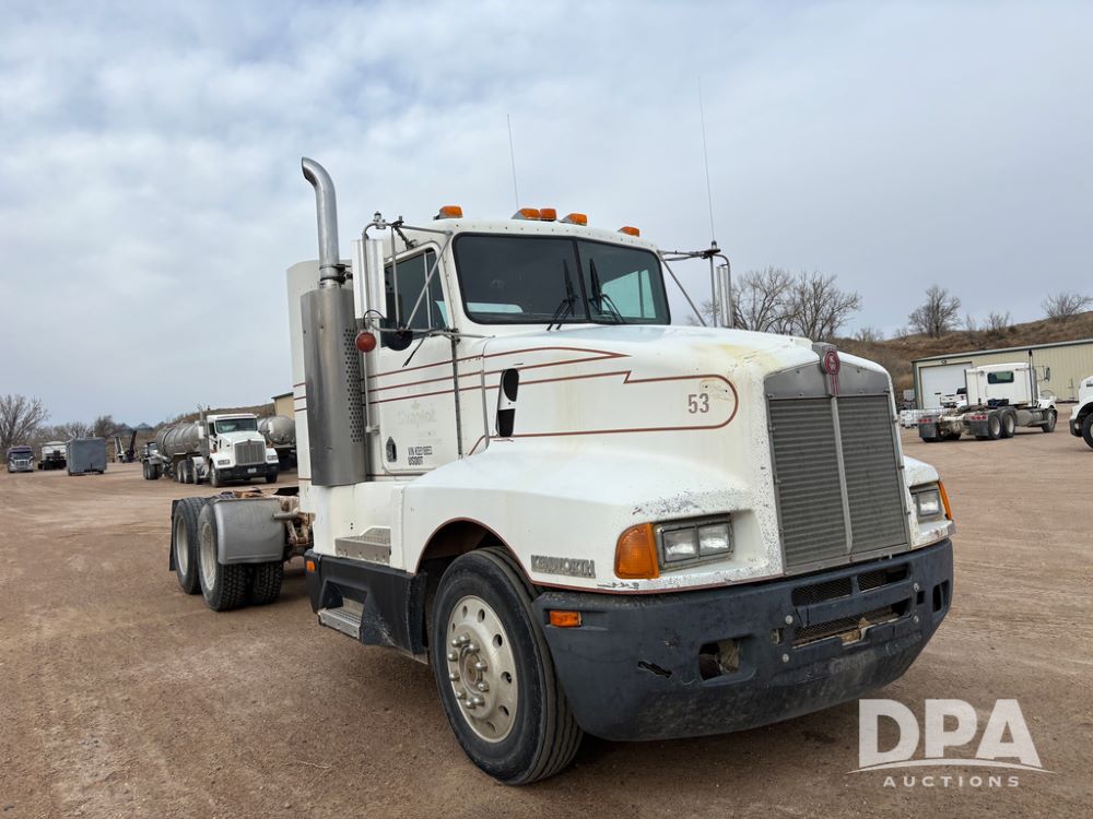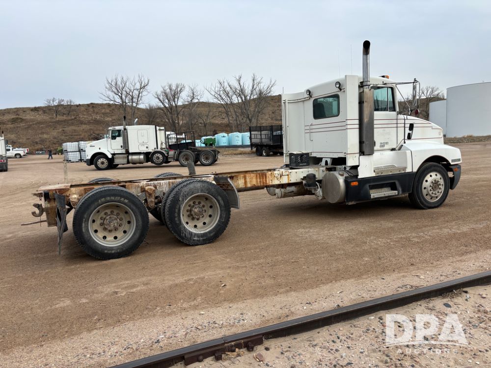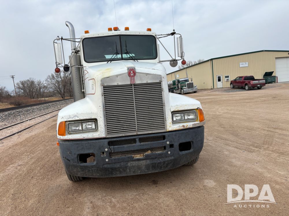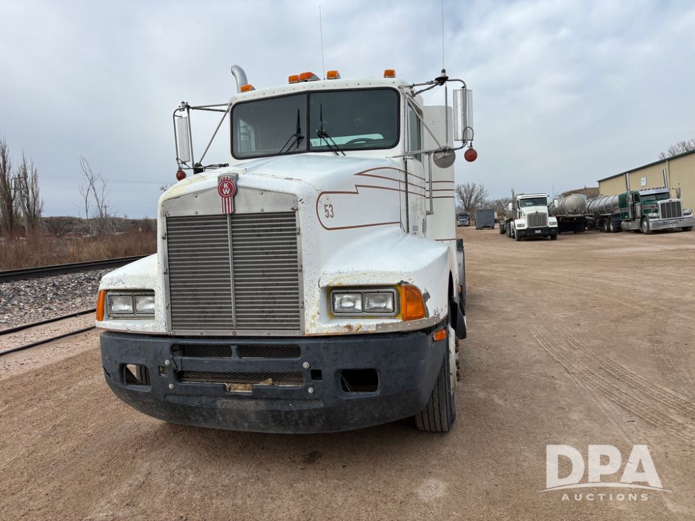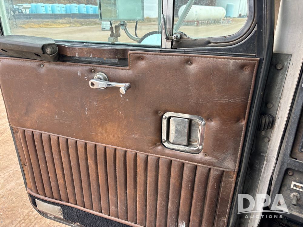 1989 Kenworth T600 Truck (DR13142 Unit 438146), C/C truck, Cat 3406 single turbo diesel engine, 13 speed transmission, tandem axle full crew, 232'' WB, day cab, dual aluminum fuel tanks, rear pintle hitch, engine brake, cab heat/air conditioning, 24.5 tires, all aluminum wheels, odometer reads 780,426 miles.