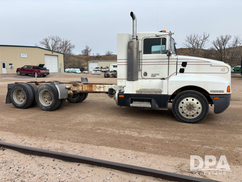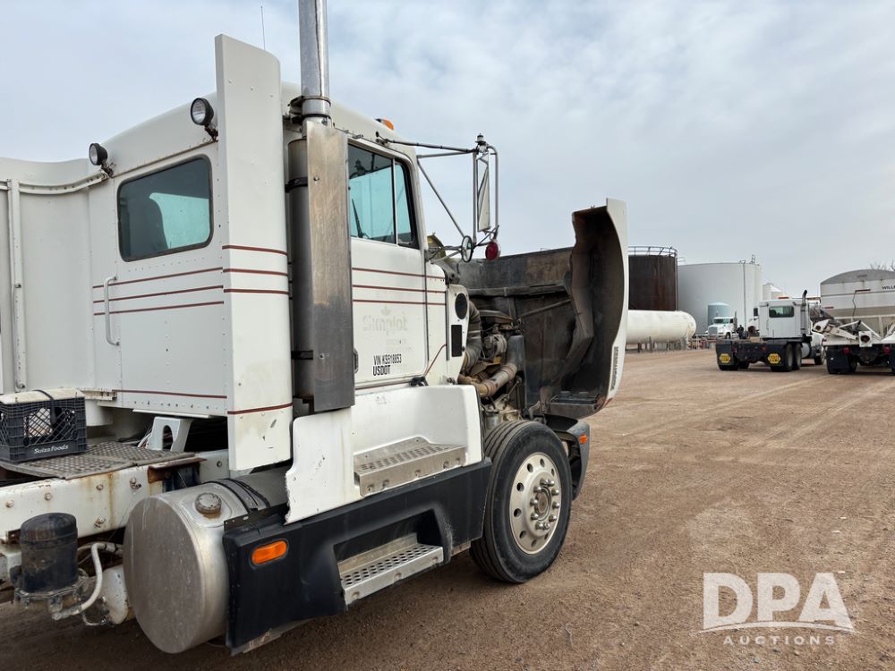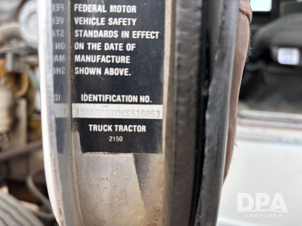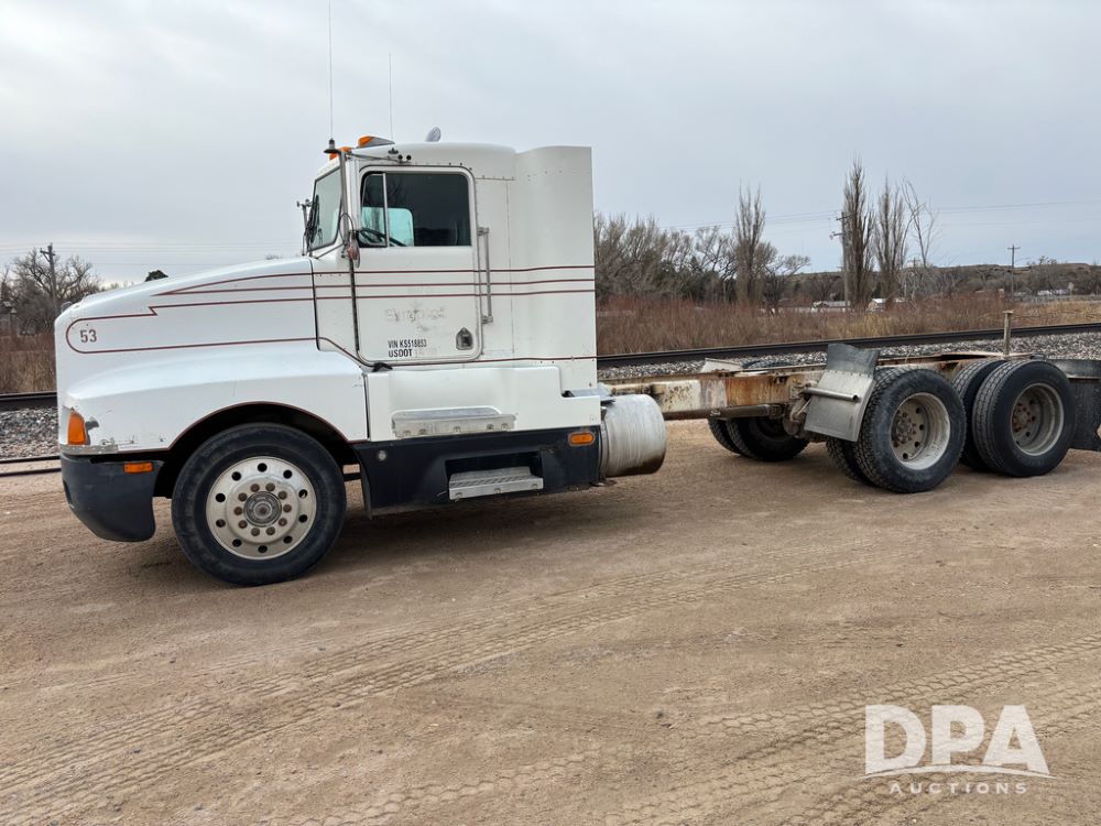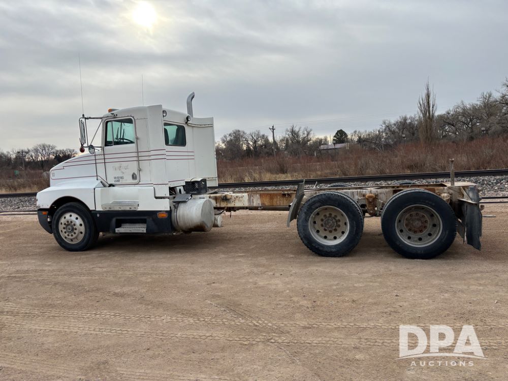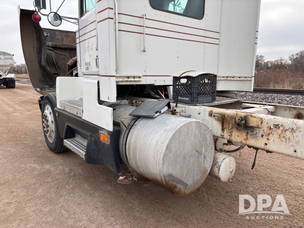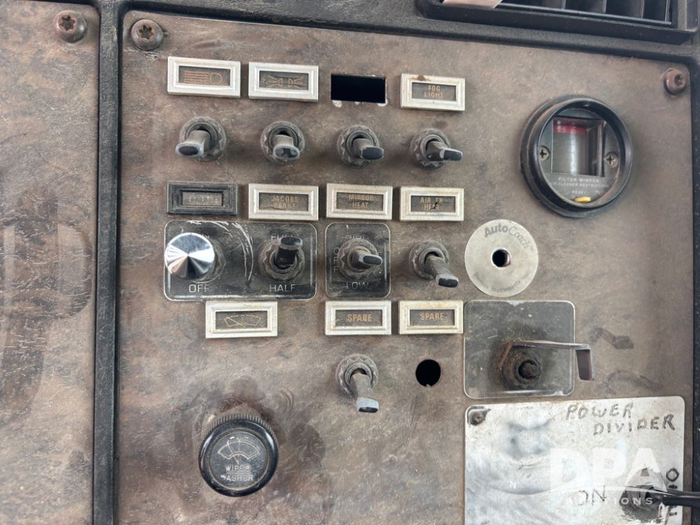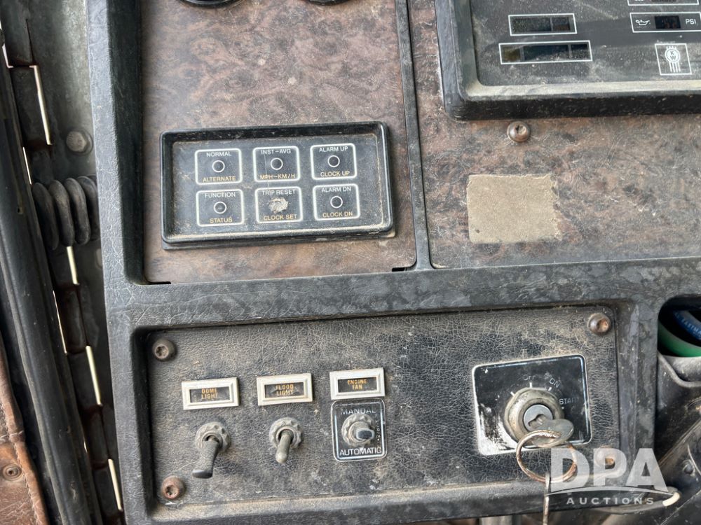 1989 Kenworth T600 Truck (DR13142 Unit 438146), C/C truck, Cat 3406 single turbo diesel engine, 13 speed transmission, tandem axle full crew, 232'' WB, day cab, dual aluminum fuel tanks, rear pintle hitch, engine brake, cab heat/air conditioning, 24.5 tires, all aluminum wheels, odometer reads 780,426 miles.