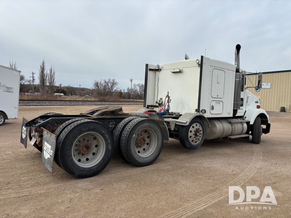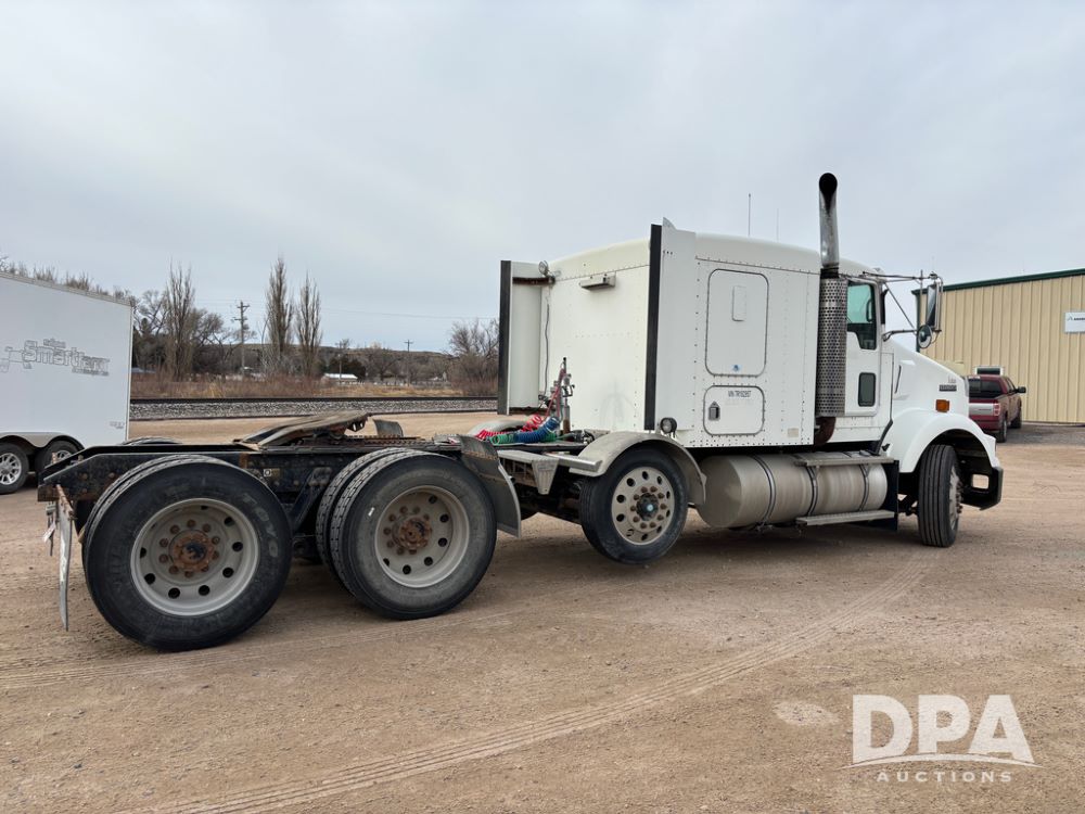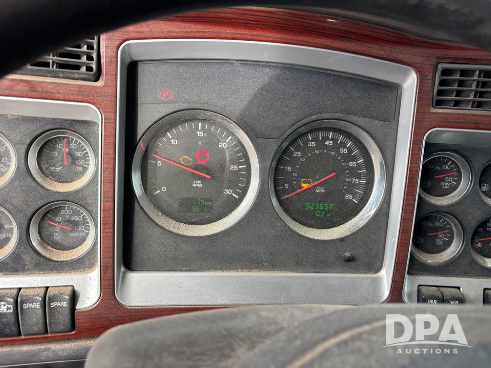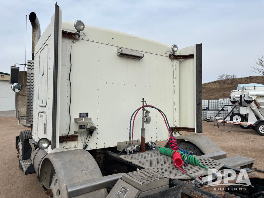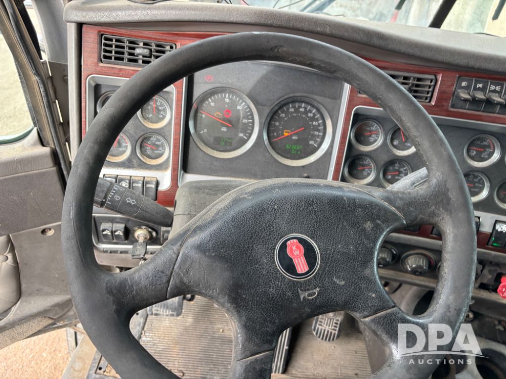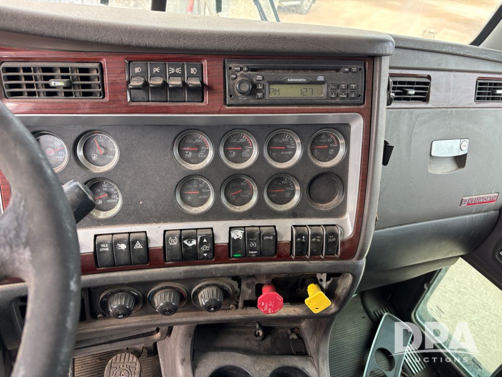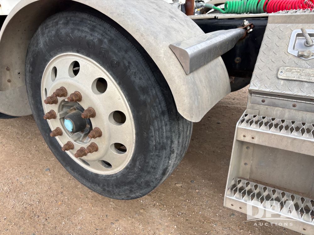 2007 Kenworth T800 Truck (DR13144 Unit 236930), Cat diesel engine, 10 speed transmission, tandem axle full screw, air lift tag axle, 250'' WB, air ride suspension, 60'' flat top sleeper, engine brake, air dump, air slide 5th wheel plate, dual aluminum fuel tanks, cruise control, cab heat/air conditioning, 24.5 near new tires, all aluminum wheels, odometer reads 923,657 miles.