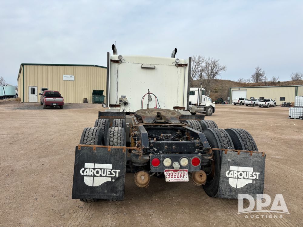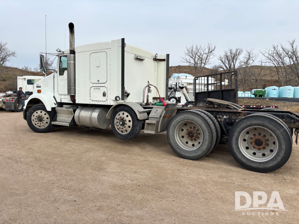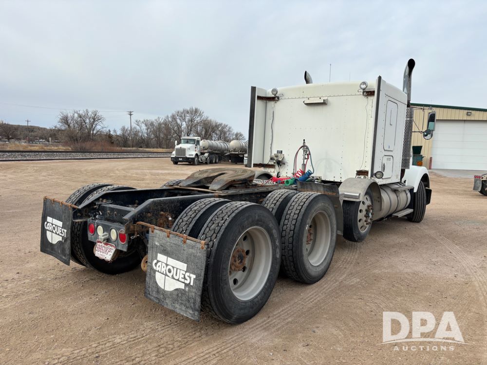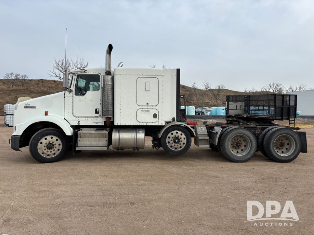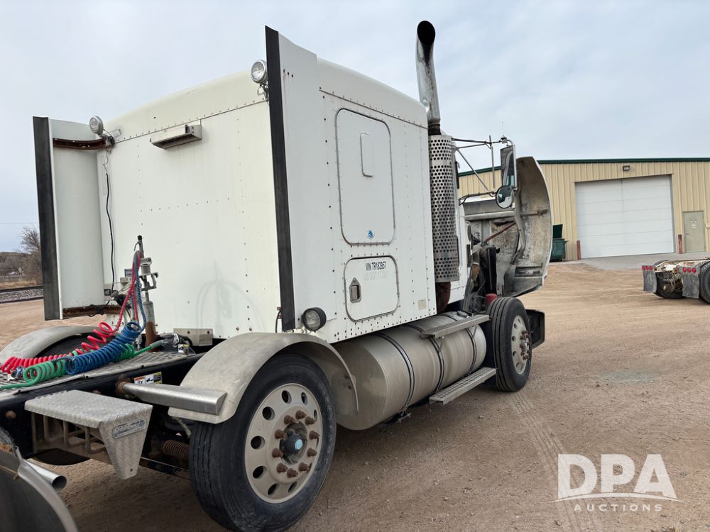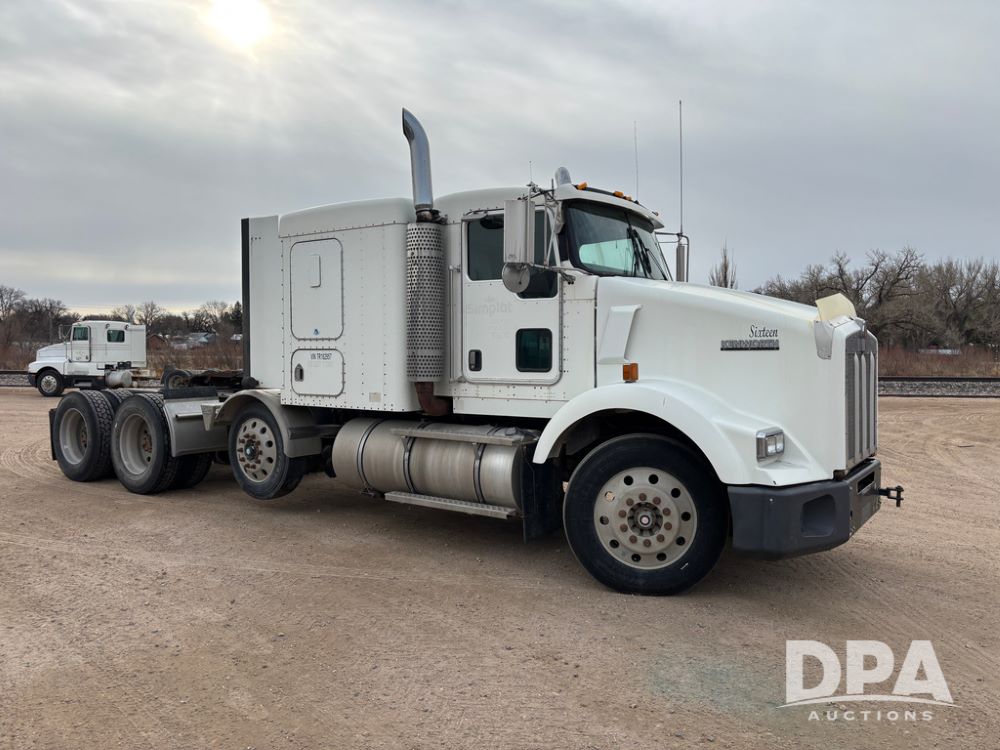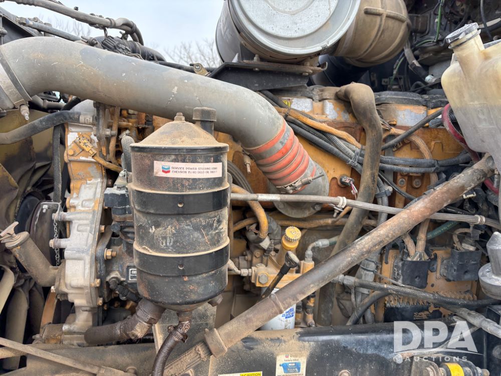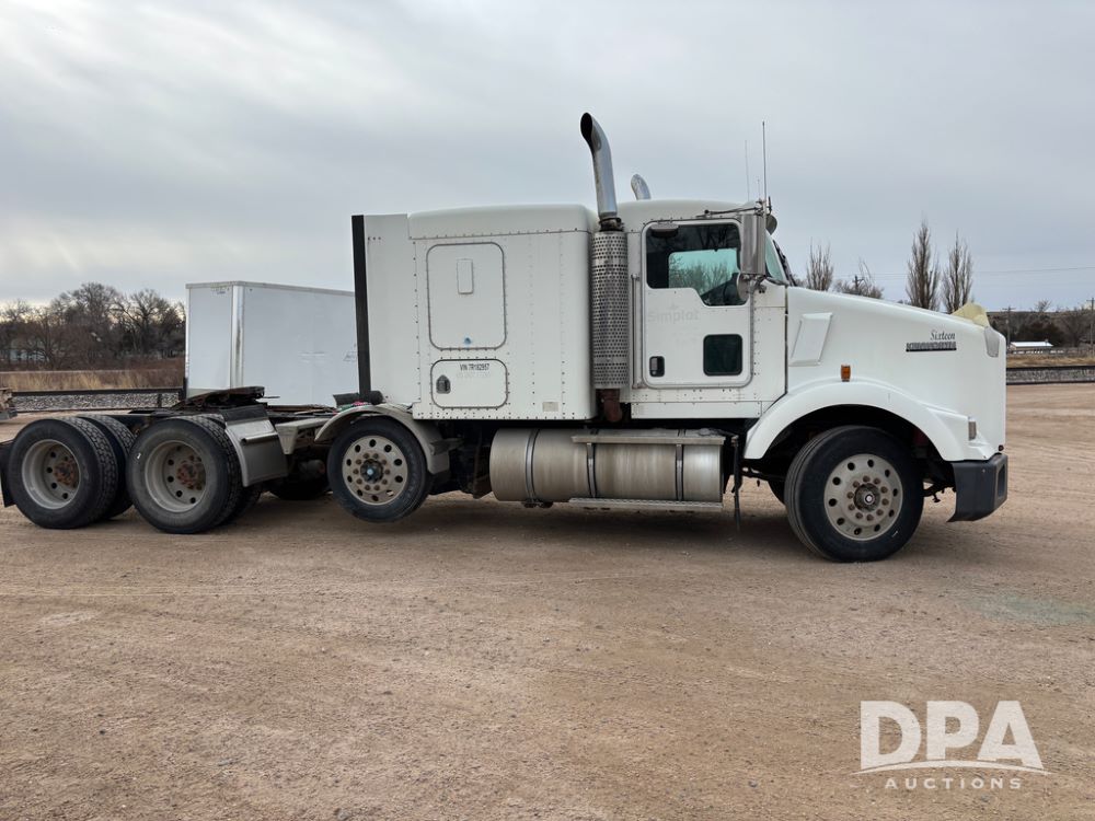 2007 Kenworth T800 Truck (DR13144 Unit 236930), Cat diesel engine, 10 speed transmission, tandem axle full screw, air lift tag axle, 250'' WB, air ride suspension, 60'' flat top sleeper, engine brake, air dump, air slide 5th wheel plate, dual aluminum fuel tanks, cruise control, cab heat/air conditioning, 24.5 near new tires, all aluminum wheels, odometer reads 923,657 miles.