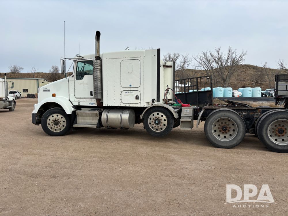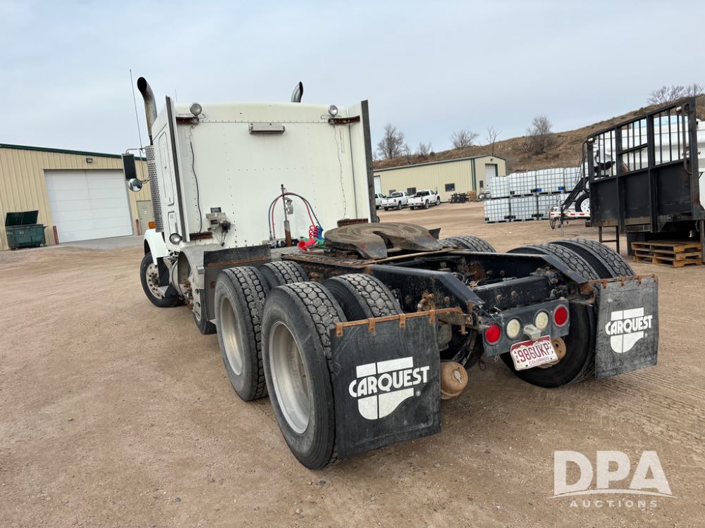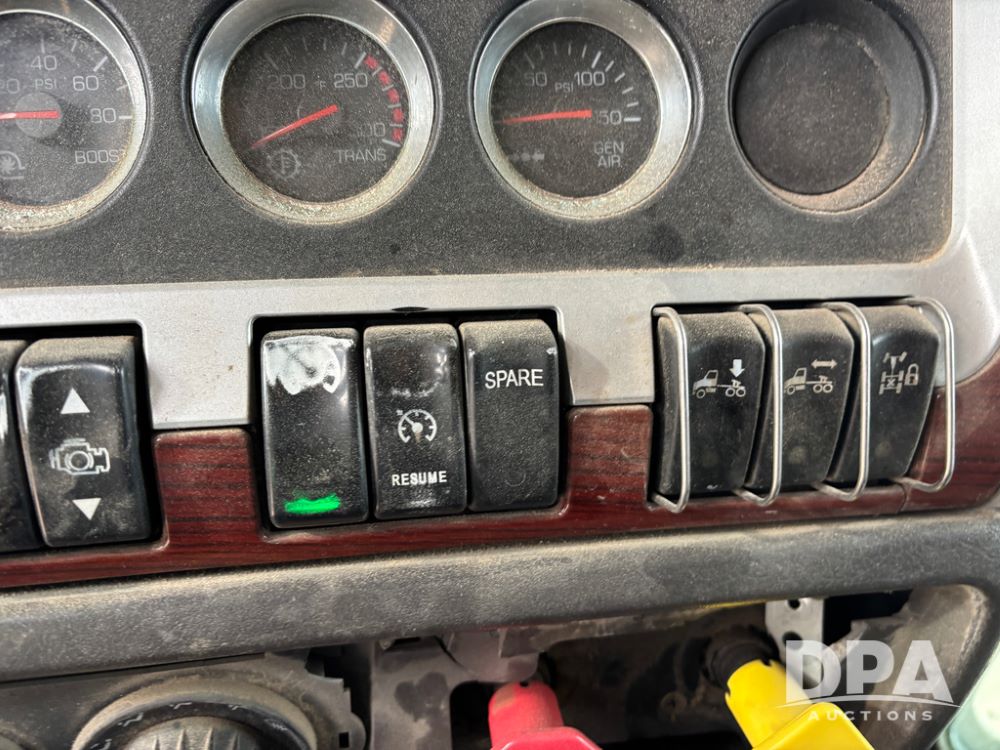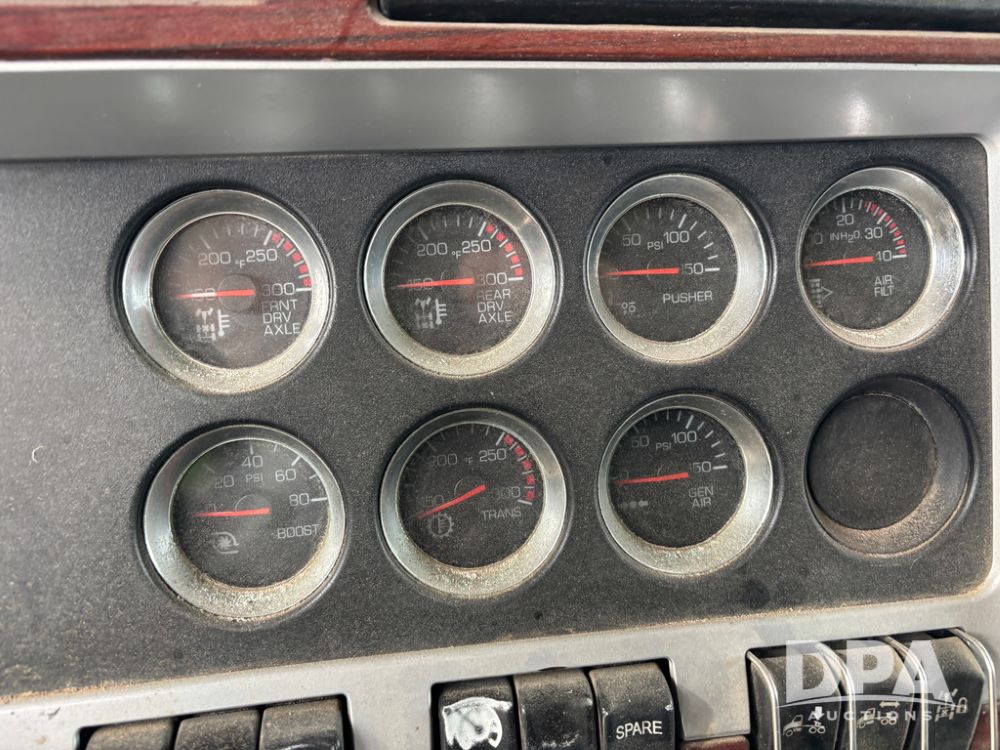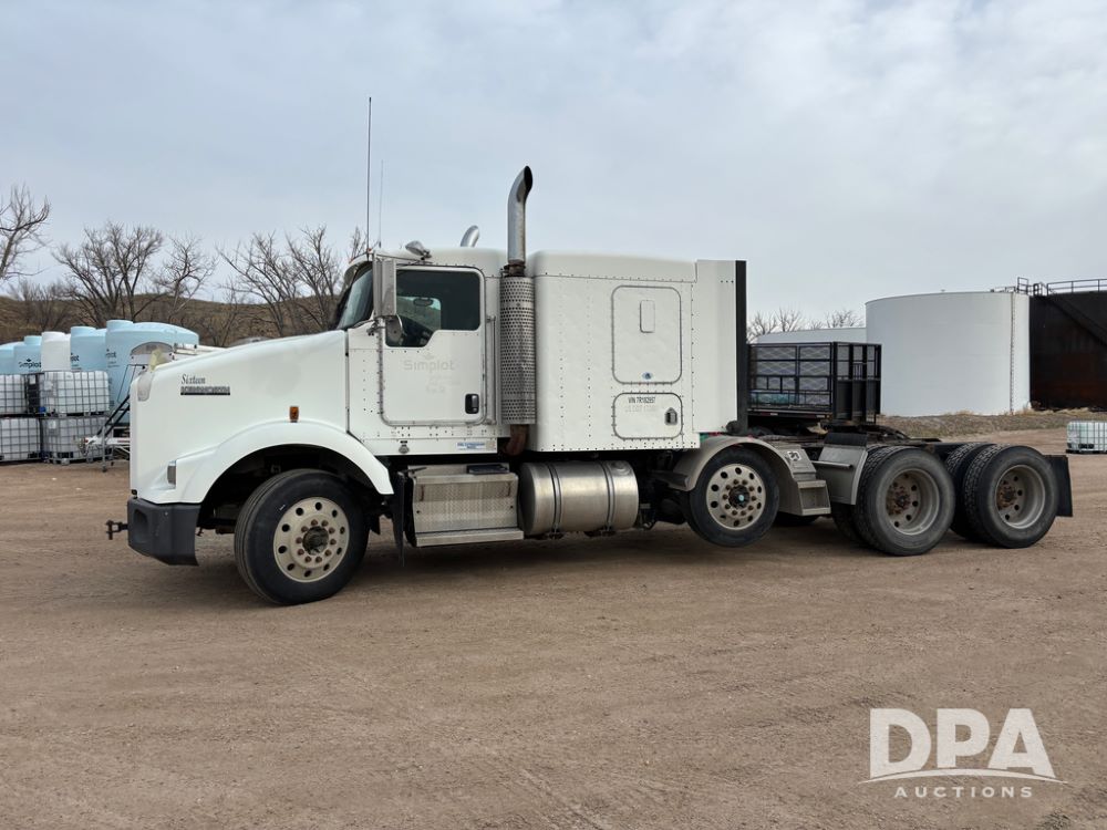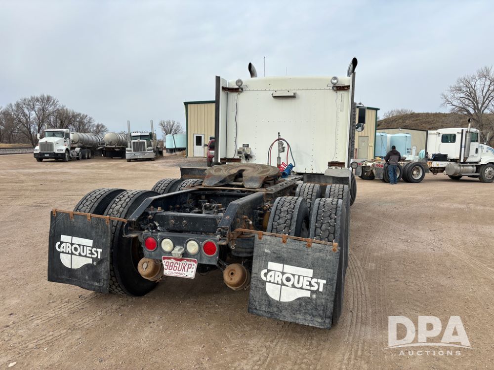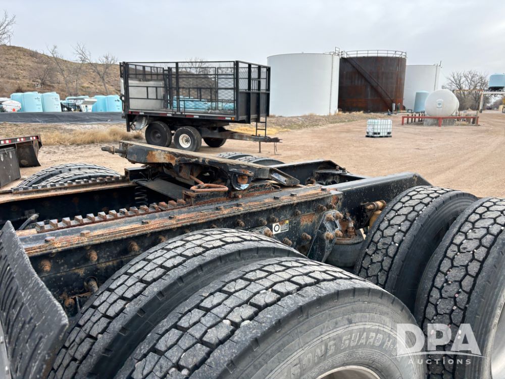 2007 Kenworth T800 Truck (DR13144 Unit 236930), Cat diesel engine, 10 speed transmission, tandem axle full screw, air lift tag axle, 250'' WB, air ride suspension, 60'' flat top sleeper, engine brake, air dump, air slide 5th wheel plate, dual aluminum fuel tanks, cruise control, cab heat/air conditioning, 24.5 near new tires, all aluminum wheels, odometer reads 923,657 miles.