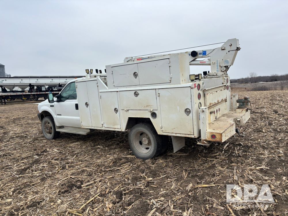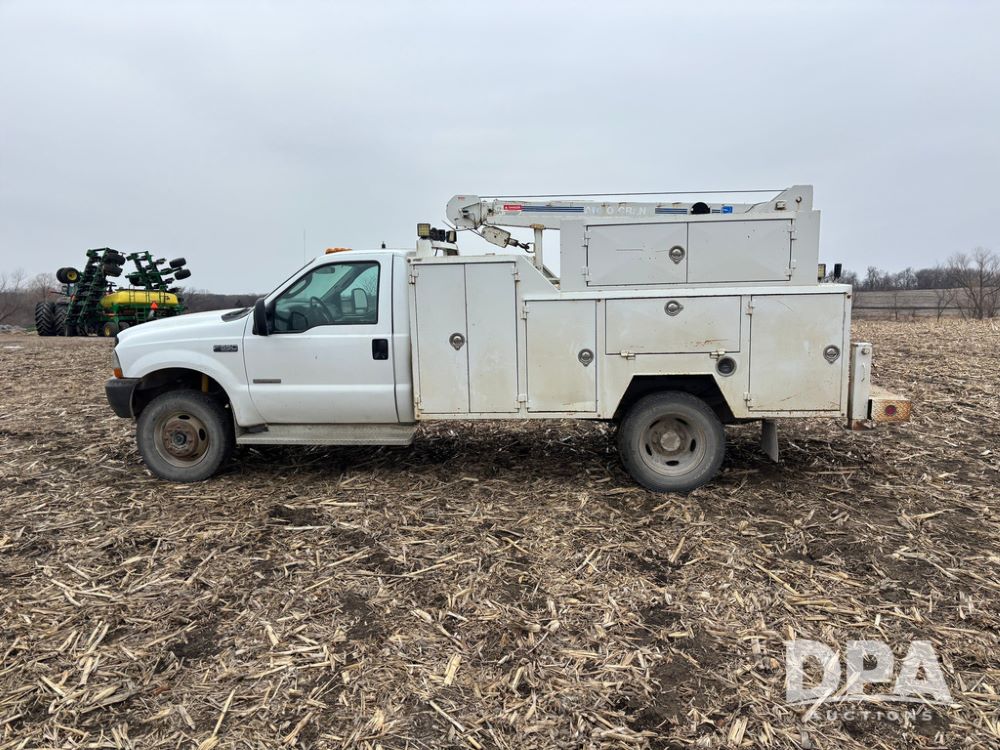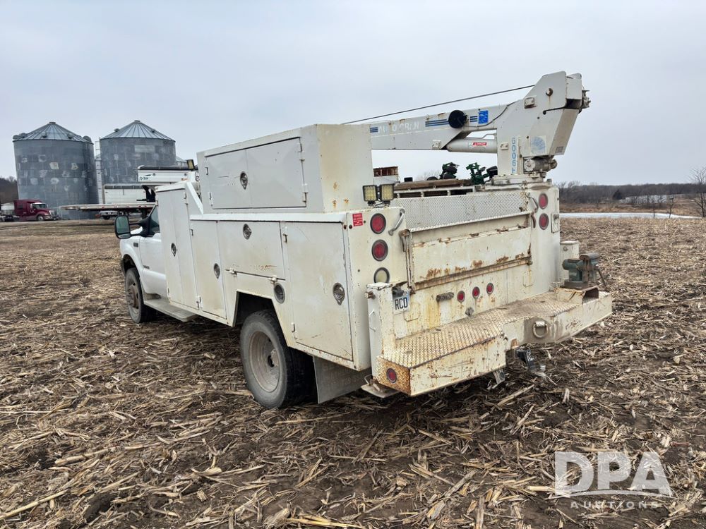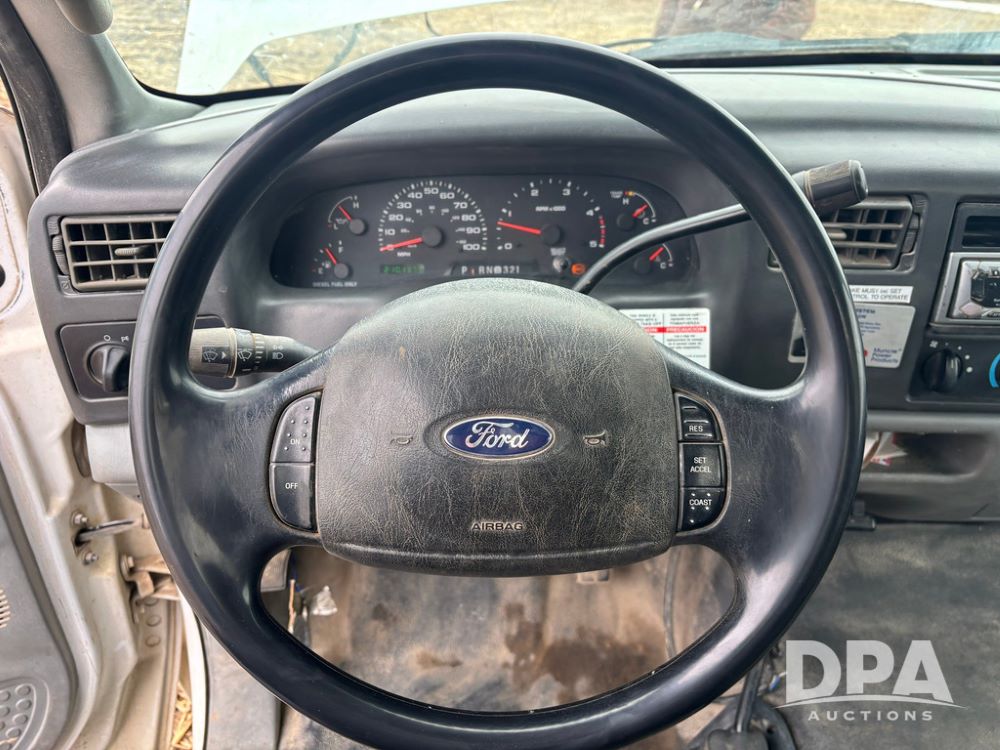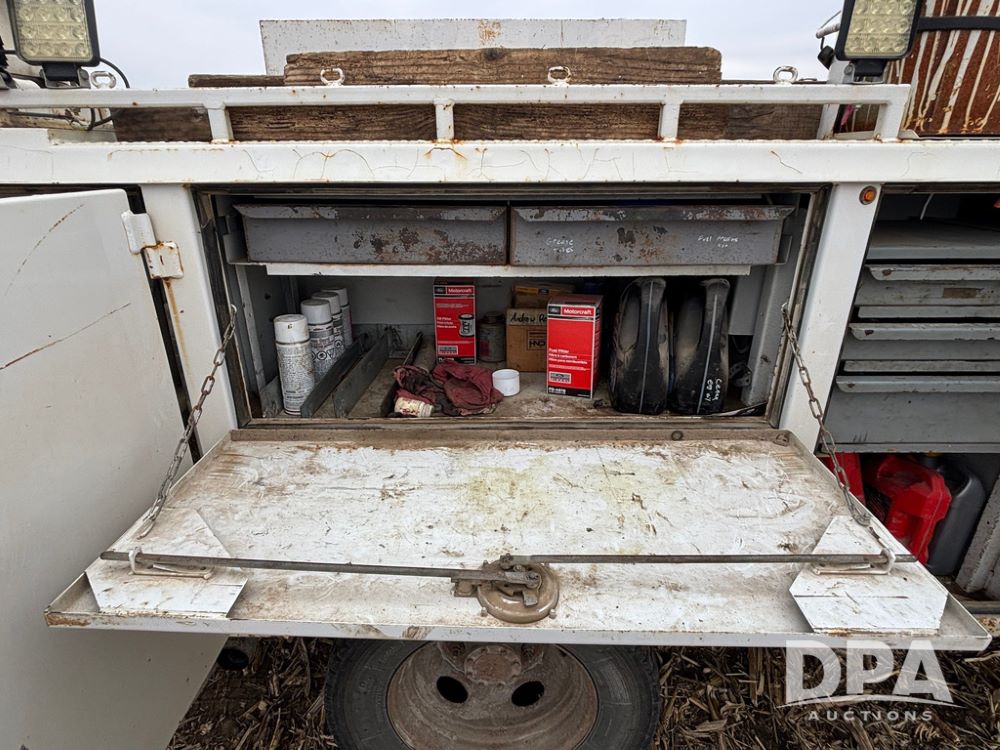 Notes: Replaced glow plugs and harnesses, ran cylinder compression tests before replacing injectors, all within specs. In the last 10,000 miles: reman OEM Ford transmission, new transmission oil, cooler, radiator. In the last 2,000 miles: new rear brakes, calipers, rotors. Front brake pads replaced, new rear axle bearings with diff oil change, all 8 reman injectors, new Strand pipes and dummy plugs, new HPOP, new IPR valve, oil cooler, radiator hoses, heater core lines, belt tensioner, idler pulleys, belt, water pump, thermostat. Regularly maintined, fuel filters replaced twice a year, air filter every two oil changes, oil changed at 5,000 mile intervals, with all Ford filters and oil. All tools and inventory will be removed from the service body, it will be the service body, air compressor and crane ONLY.