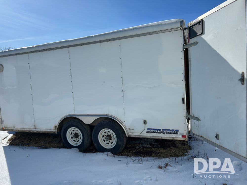 2012 Sure Trac Enclosed Chemical Trailer (CP1594), rear cargo doors, double curb side doors, tandem axle.