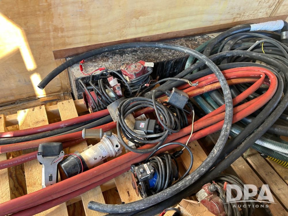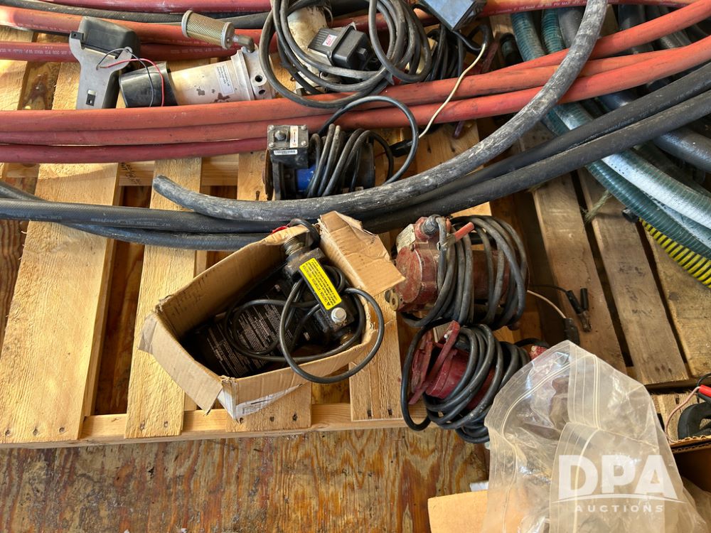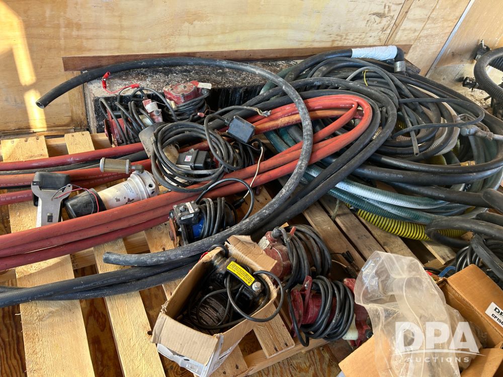 Chemical Pumps/Hoses (CP1563), pallet lot has 12 volt chemical pumps, and 1'' fuel hoses.