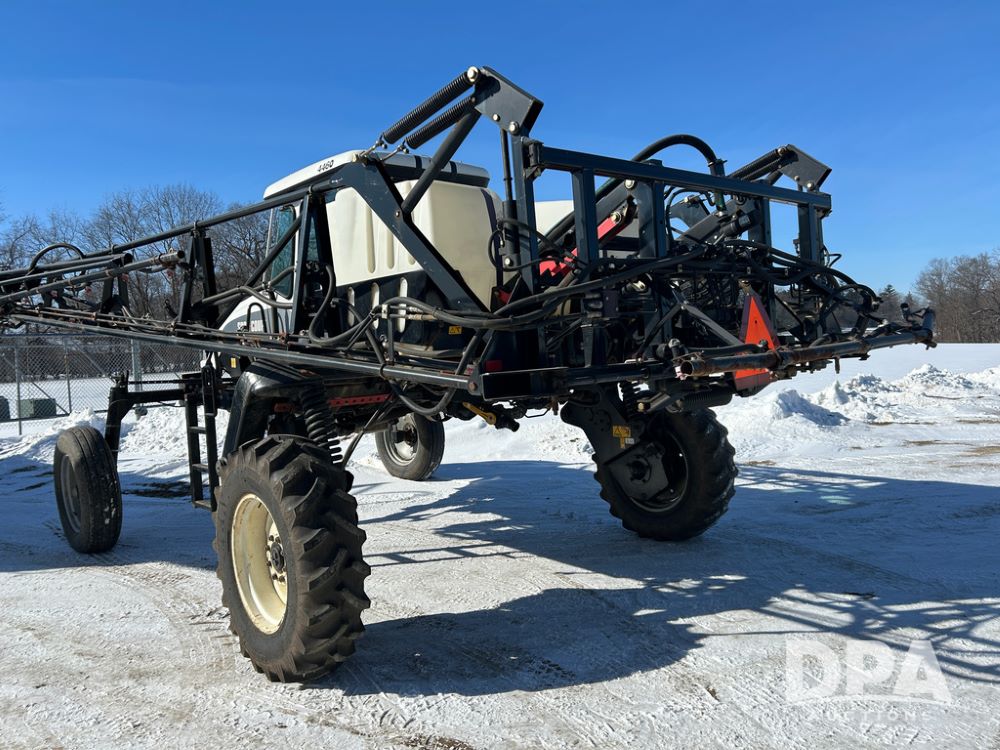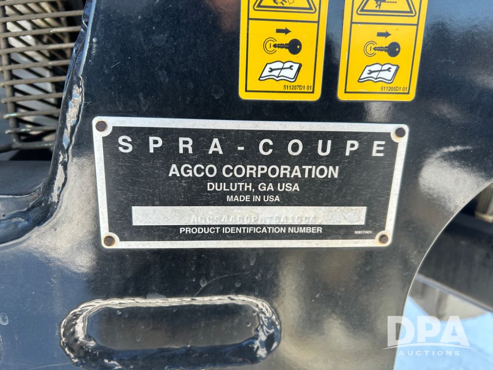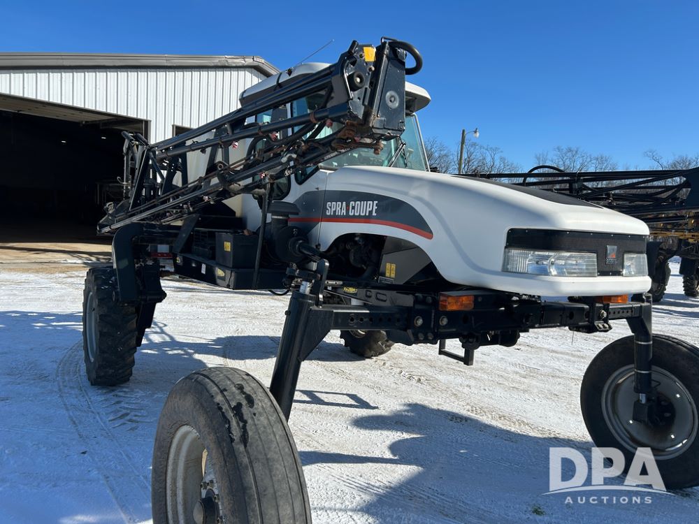Spray Coupe 4460 Sprayer (CP1590), Perkins 4 cylinder diesel engine, Allison 5 speed automatic transmission, 400 gallon poly liquid tank, 40/60' boom, 20'' spacings, Raven SCS460 controller, Envizio swathing, 45 gallon rinse tank, cab heat/air conditioning, AM/FM CD radio, 963 actual hours.