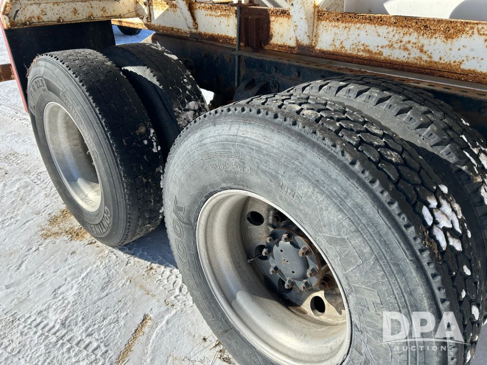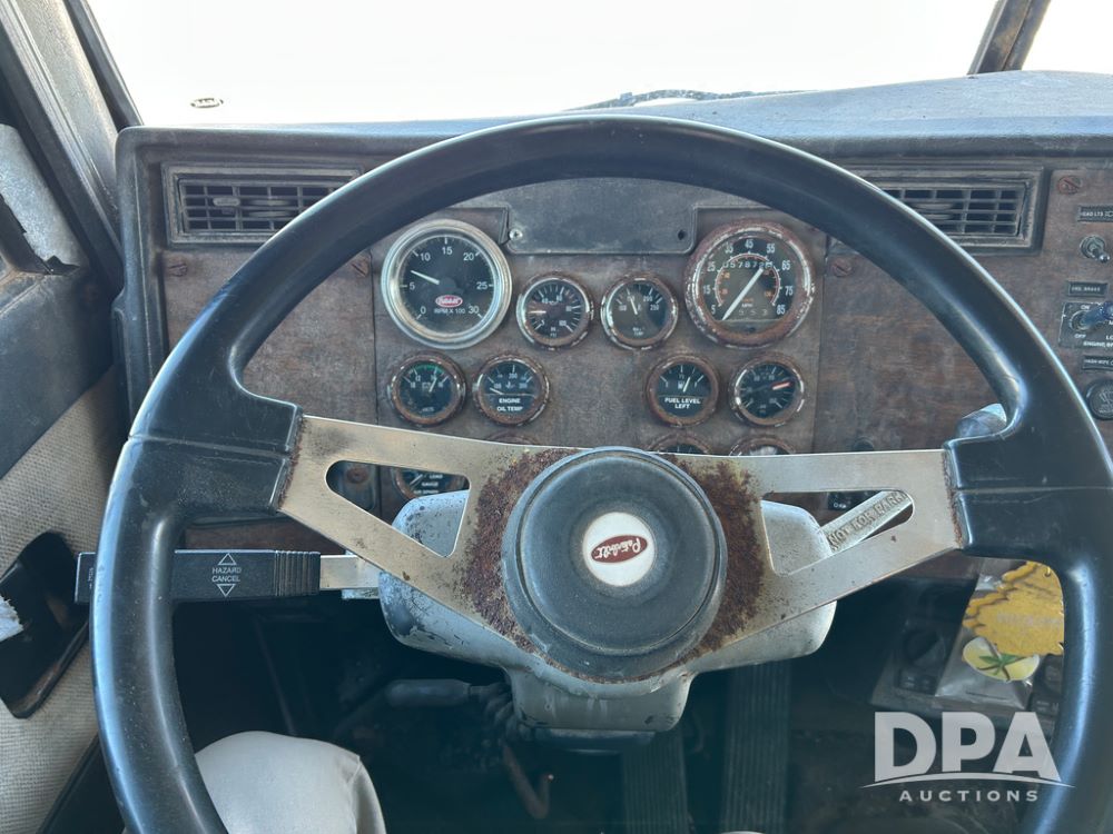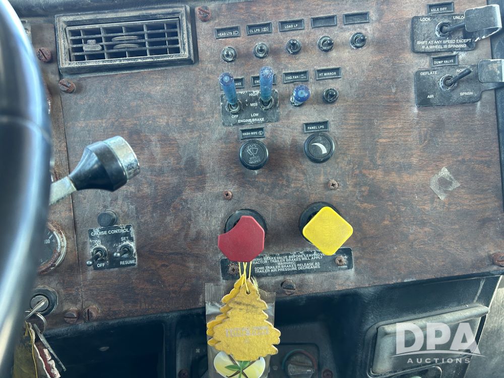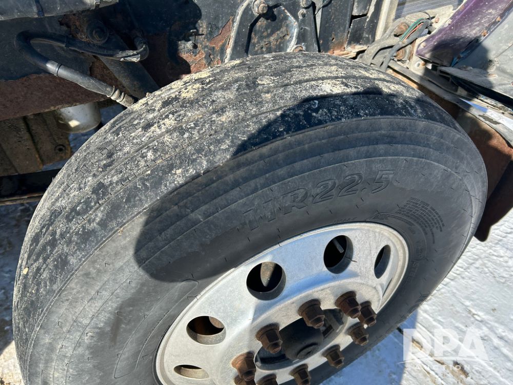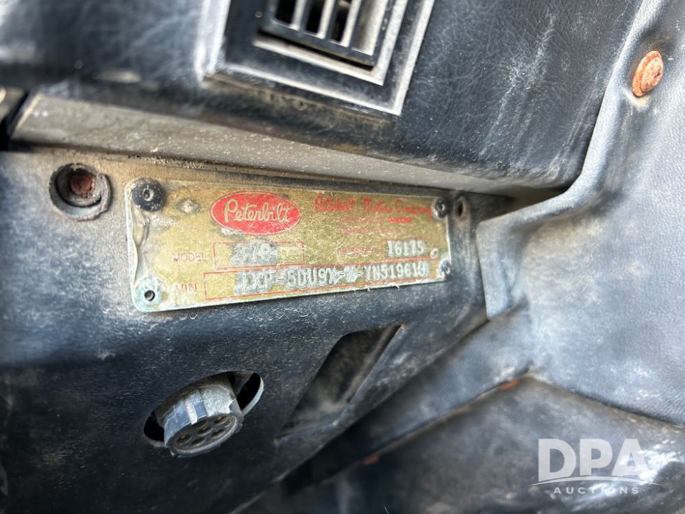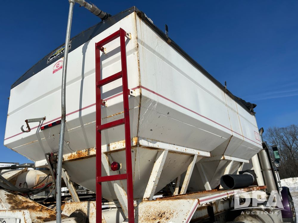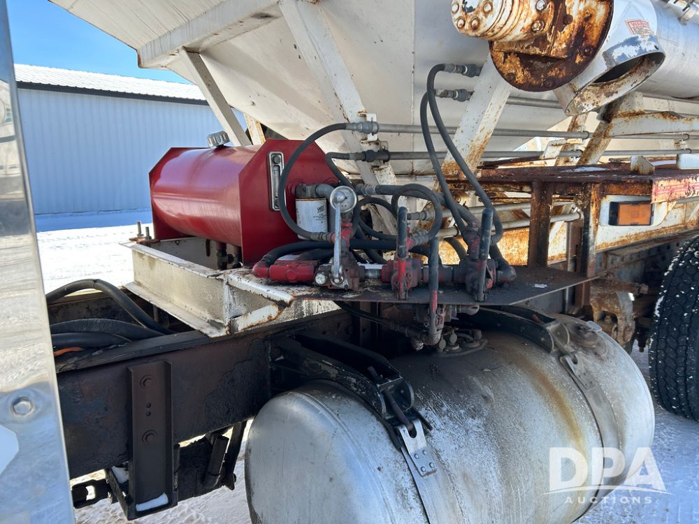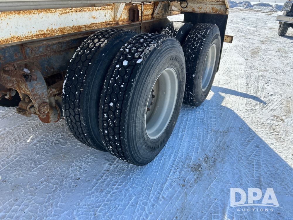 2000 Peterbilt Dry Truck (CP1593 Unit 7013), Cat diesel engine, 10 speed transmission, tandem axle full screw, air ride suspension, Chandler 16 ton stainless steel hydraulic dry tender box, side discharge auger, roll over tarp, engine brake, air dump valve, cruise control, dual aluminum fuel tanks, 22.5 tires, aluminum wheels.