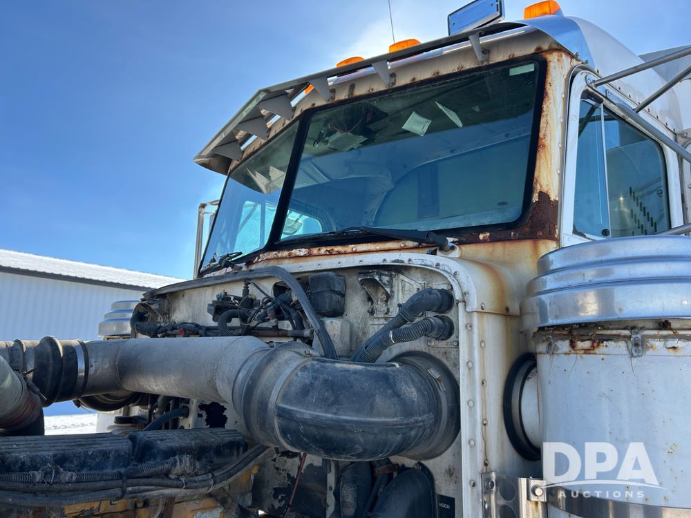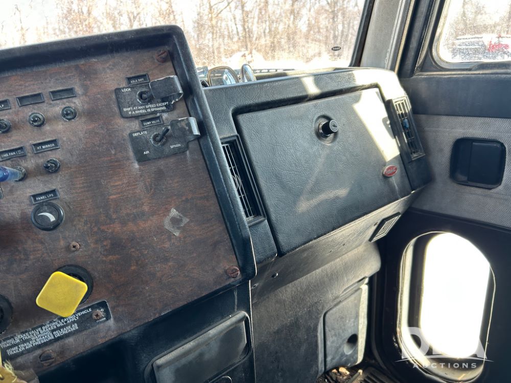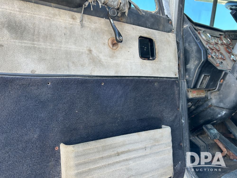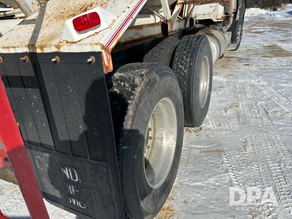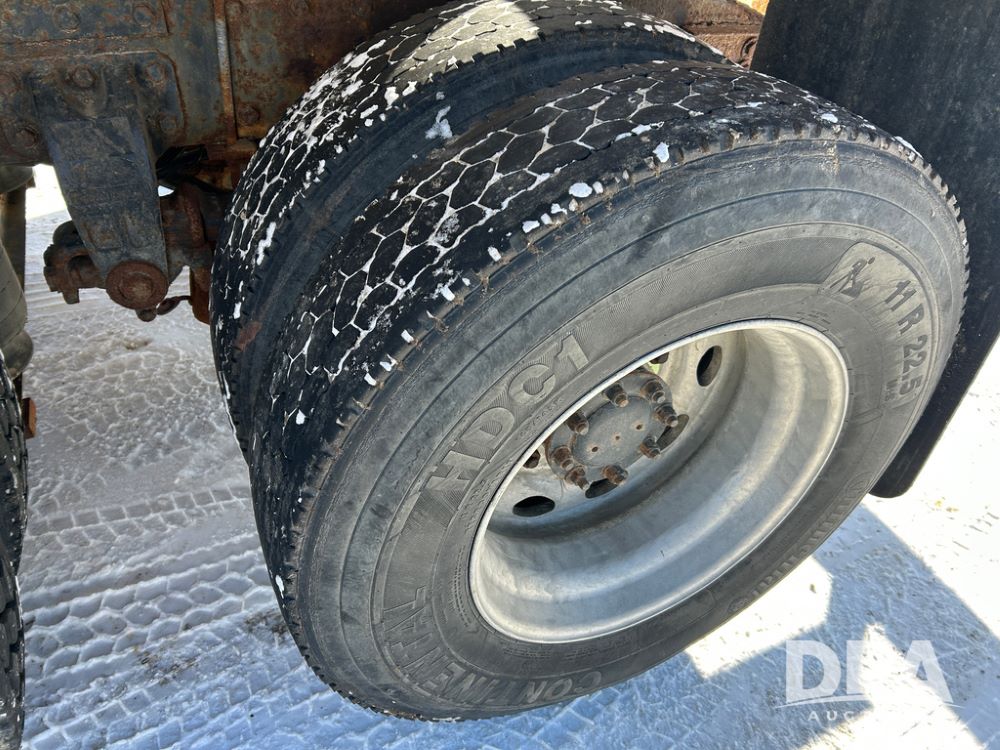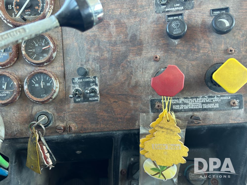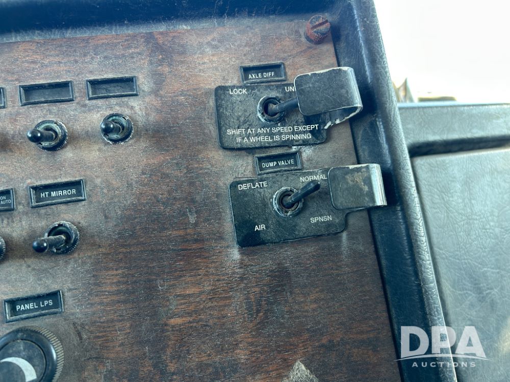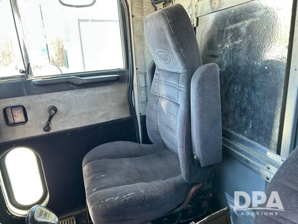 2000 Peterbilt Dry Truck (CP1593 Unit 7013), Cat diesel engine, 10 speed transmission, tandem axle full screw, air ride suspension, Chandler 16 ton stainless steel hydraulic dry tender box, side discharge auger, roll over tarp, engine brake, air dump valve, cruise control, dual aluminum fuel tanks, 22.5 tires, aluminum wheels.