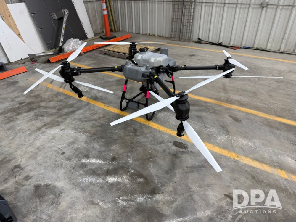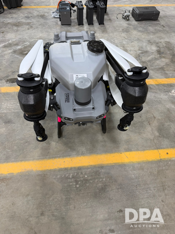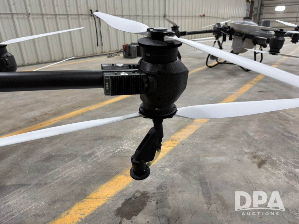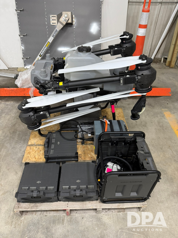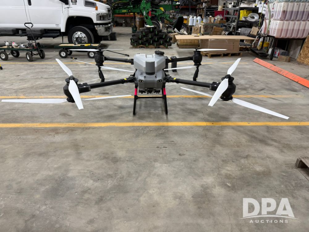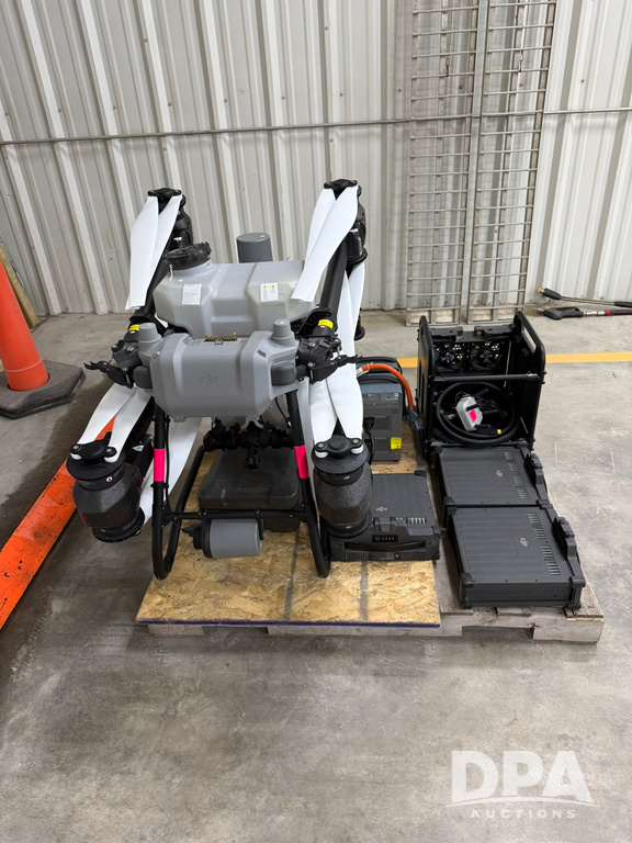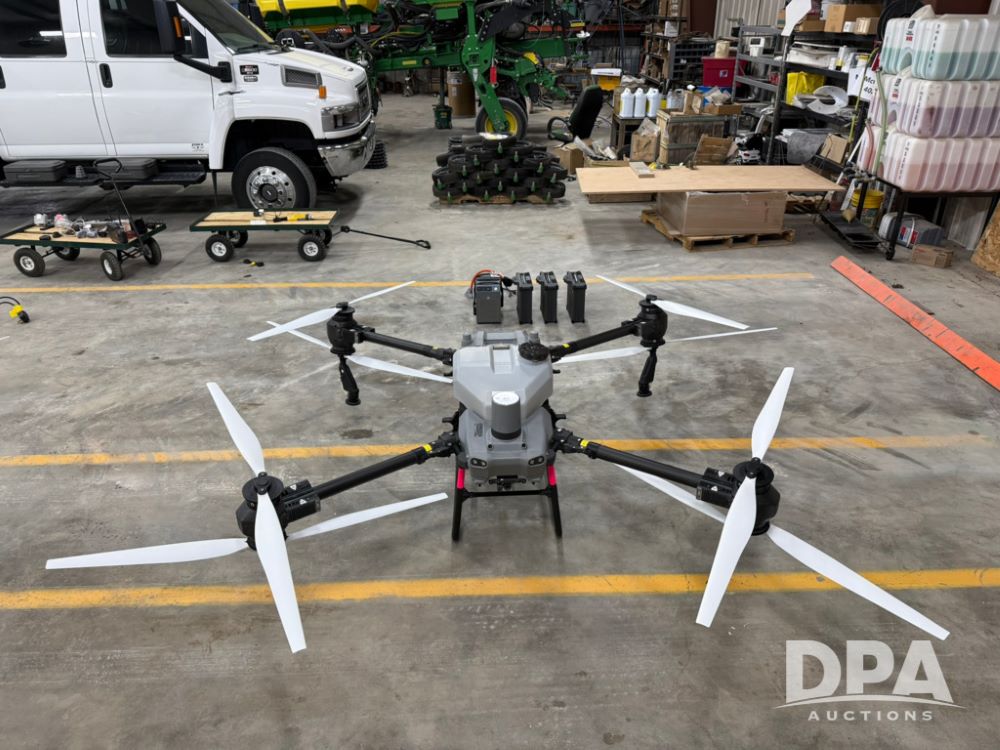 2024 DJI Agras T50 Drone (LT1528), spraying system, (2) nozzles on back arms, remote with case, (3) extra remote batteries with dual charger, (3) drone batteries, cooling station, battery charger, repeater extender already linked to drone, 128.92 flight hours, 4,444 acres covered, 1,308 flights.