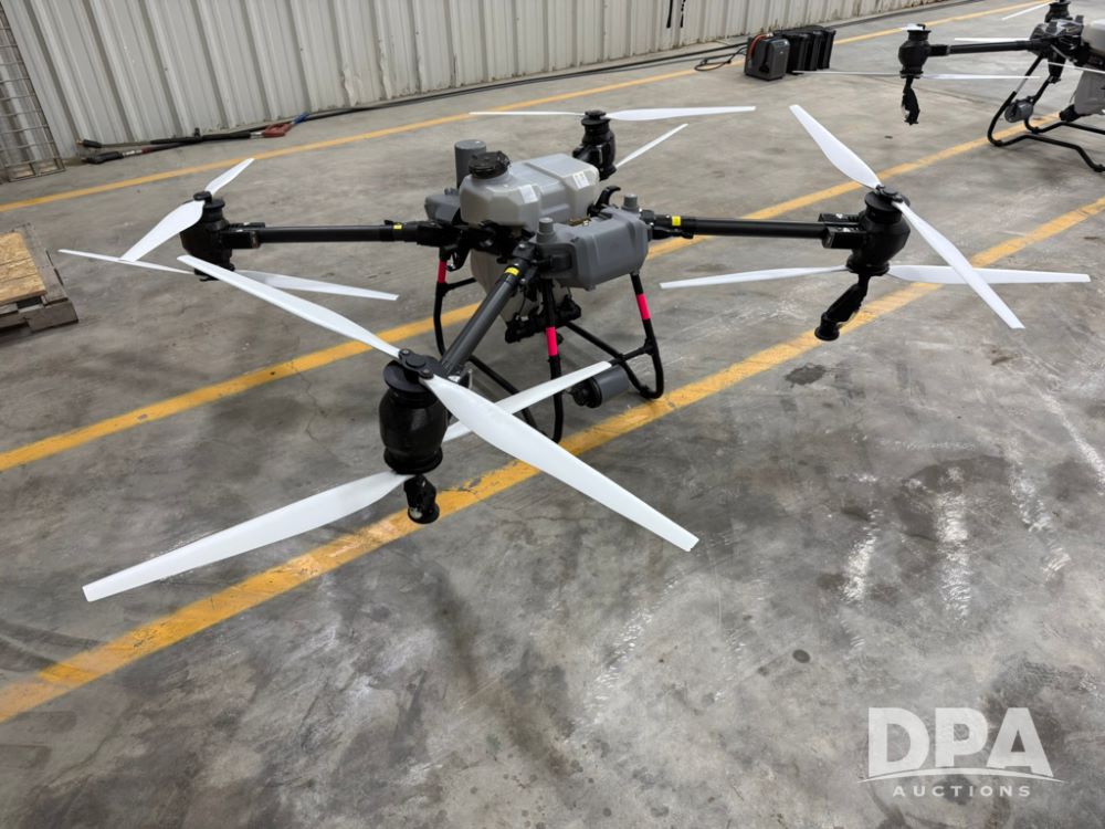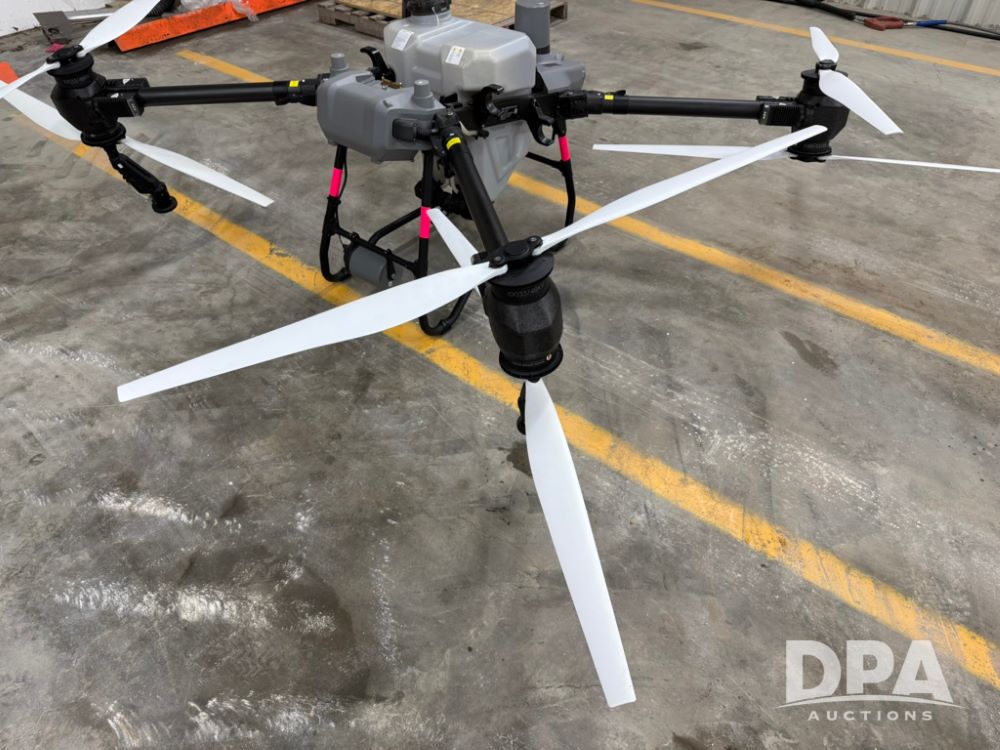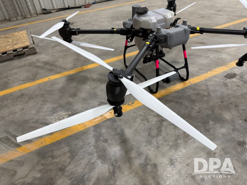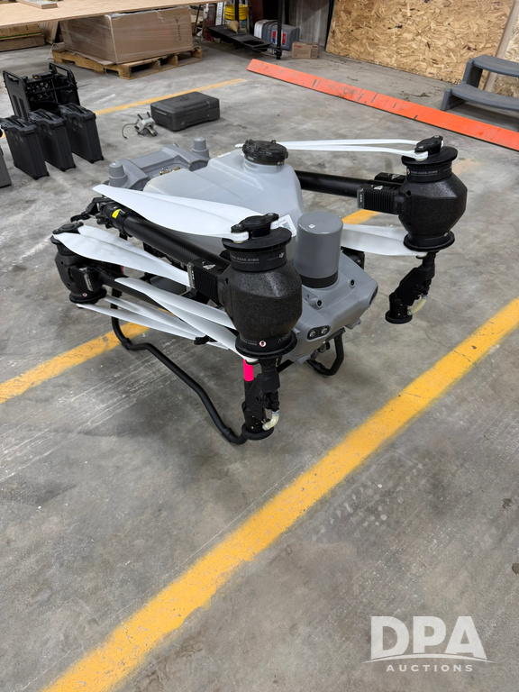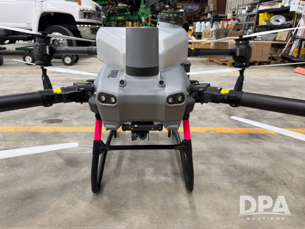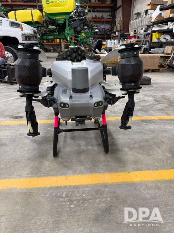 2024 DJI Agras T50 Drone (LT1528), spraying system, (2) nozzles on back arms, remote with case, (3) extra remote batteries with dual charger, (3) drone batteries, cooling station, battery charger, repeater extender already linked to drone, 128.92 flight hours, 4,444 acres covered, 1,308 flights.