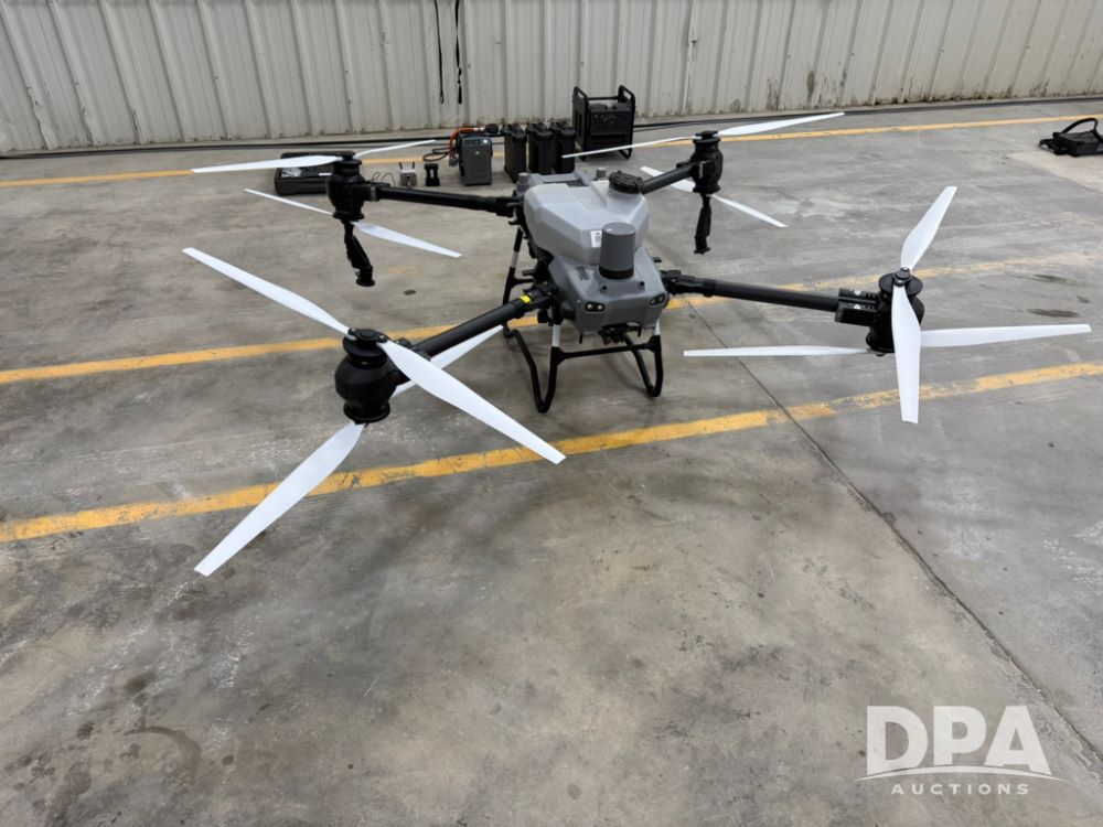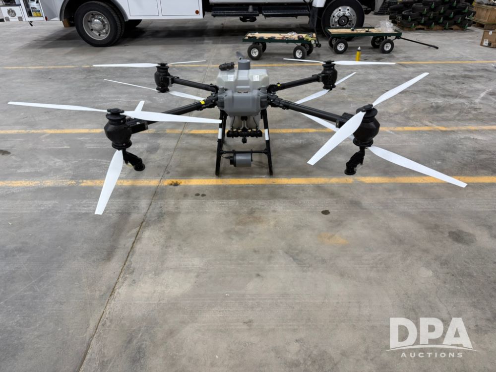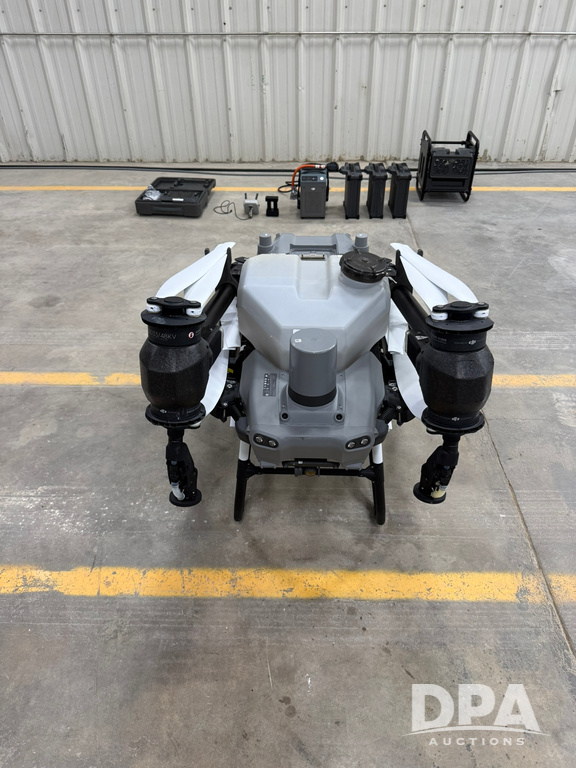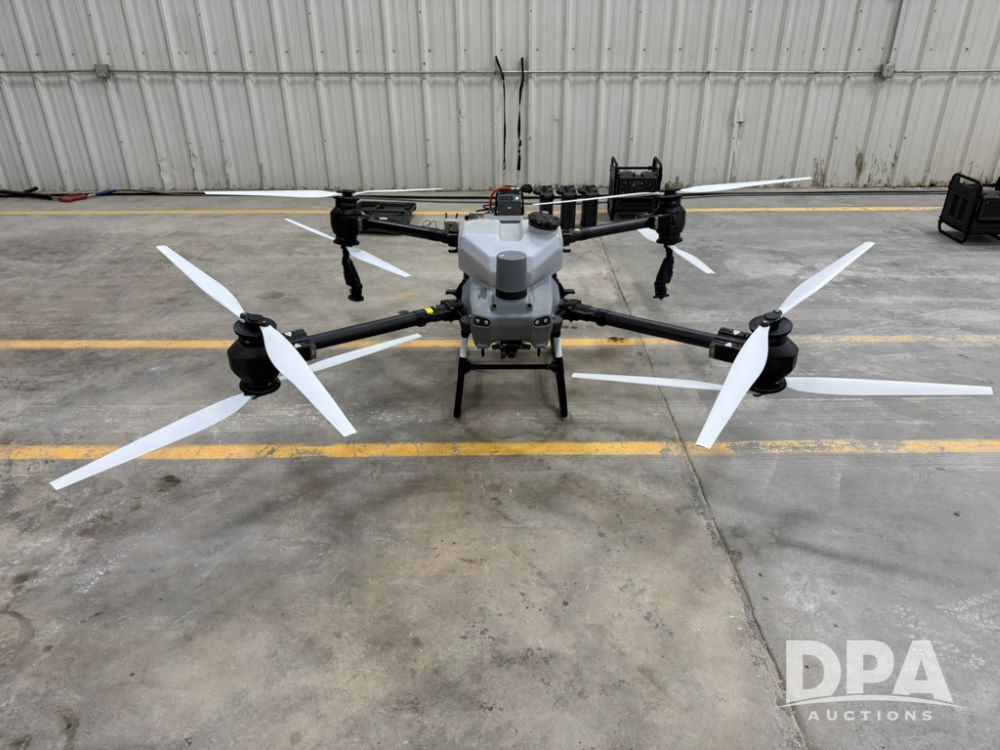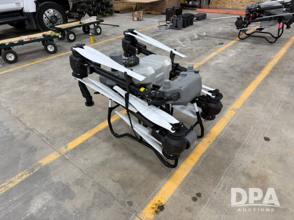 2024 DJI Agras T50 Drone (LT1529), spraying system, (2) nozzles on back arms, remote with case, (3) extra remote batteries with dual charger, (3) drone batteries, cooling station, battery charger, repeater extender already linked to drone, 127.56 flight hours, 4,388 acres covered, 1,246 flights.