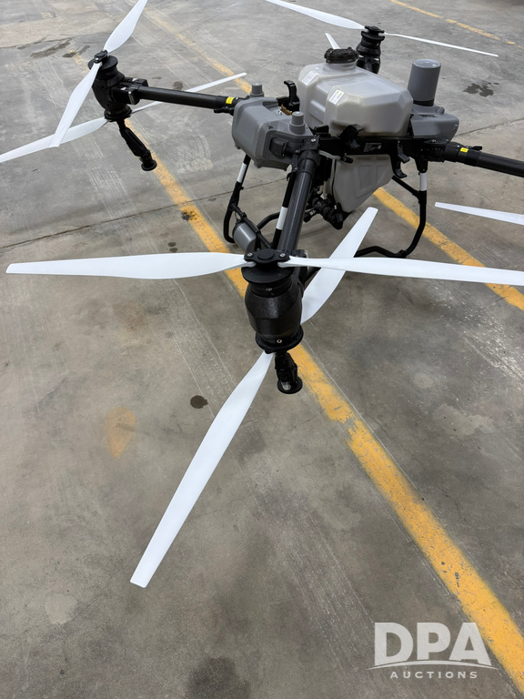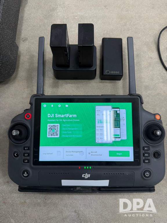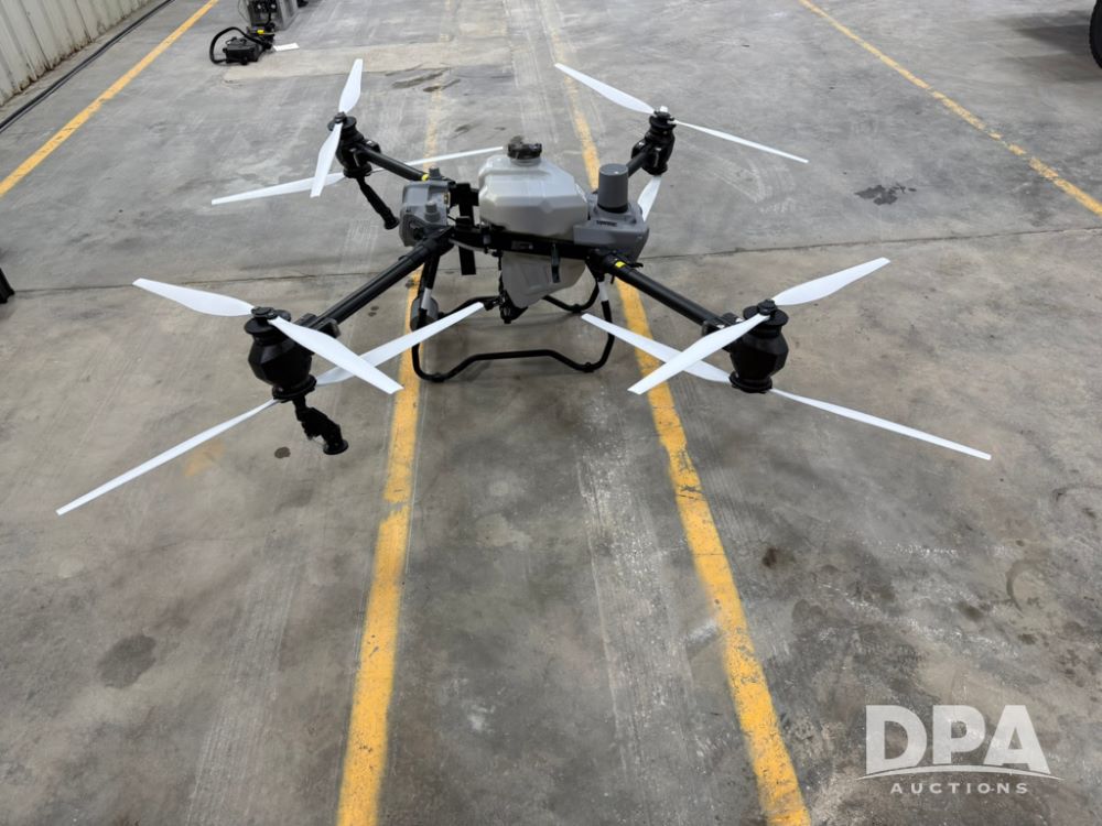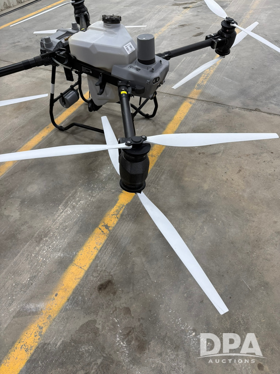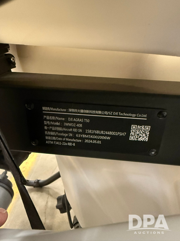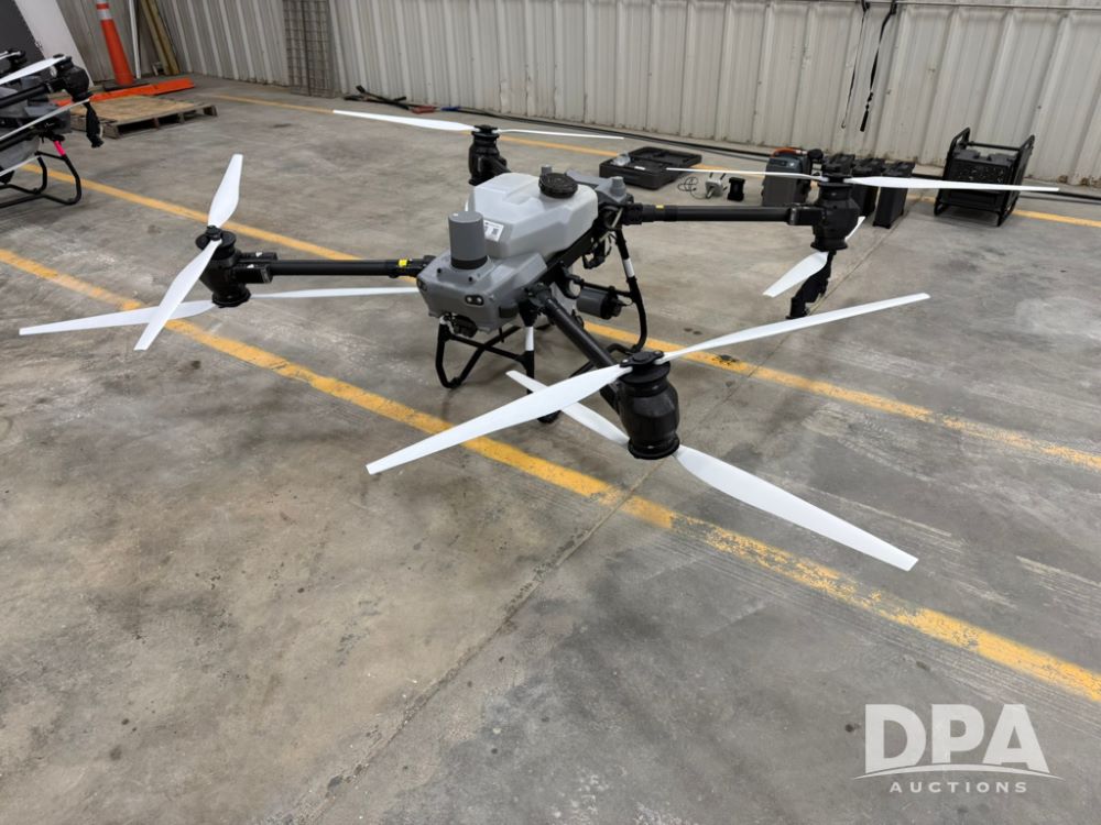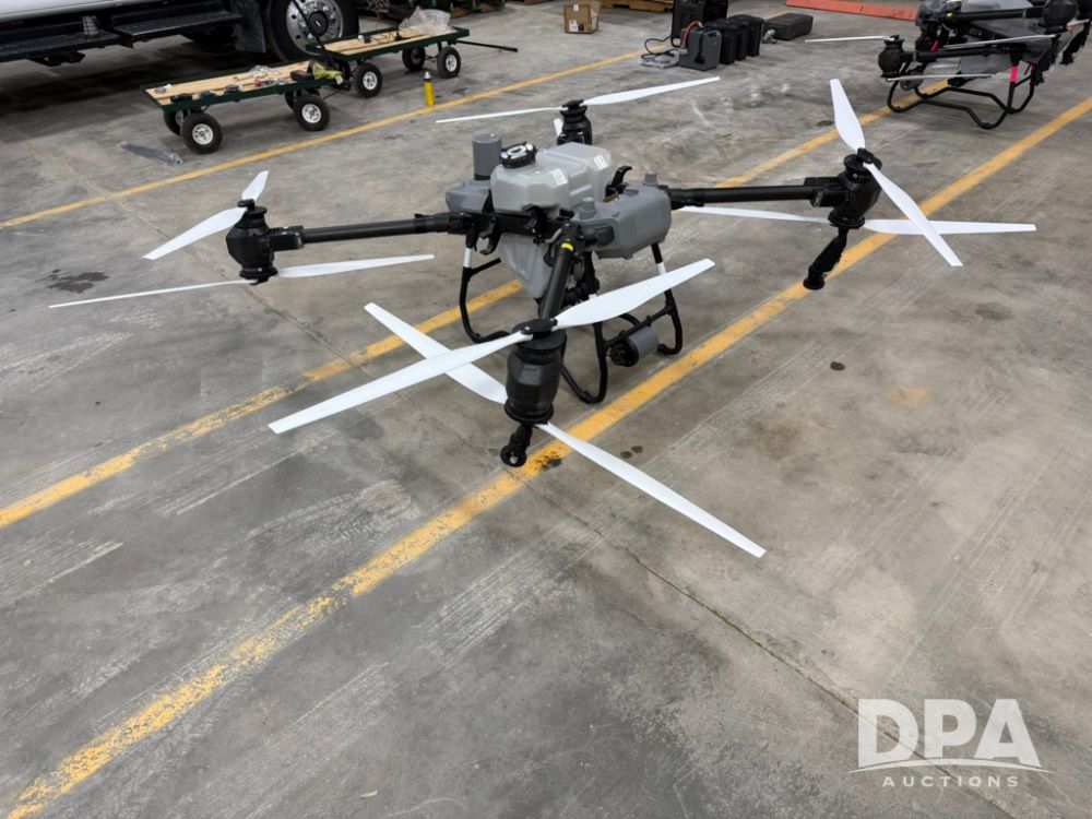 2024 DJI Agras T50 Drone (LT1529), spraying system, (2) nozzles on back arms, remote with case, (3) extra remote batteries with dual charger, (3) drone batteries, cooling station, battery charger, repeater extender already linked to drone, 127.56 flight hours, 4,388 acres covered, 1,246 flights.
