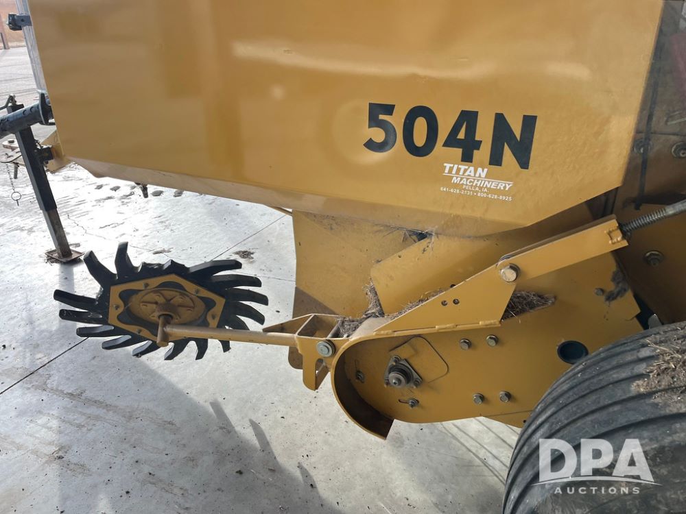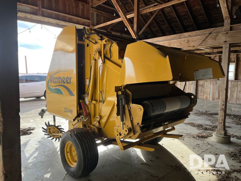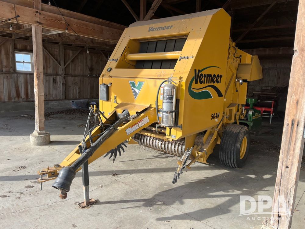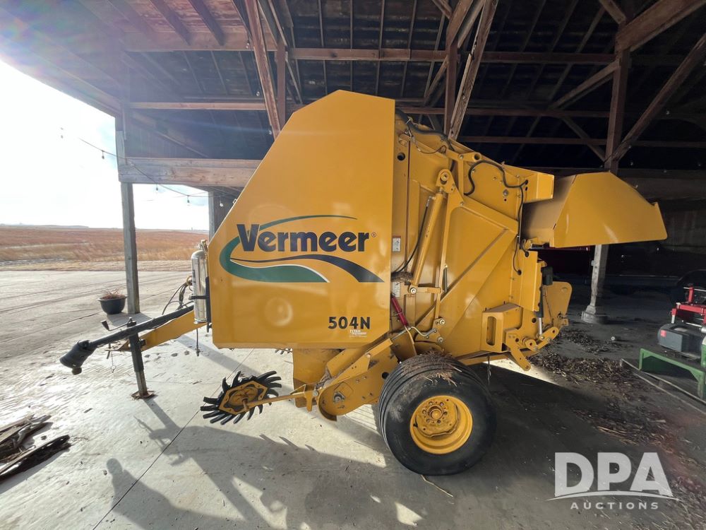 Vermeer 504N Round Baler (JN3739), 5 X 4 foot round baler for high density, versatile hay handling, five bar, 60 inch camless pickup, PTO, 6 belt system, automatic twine.