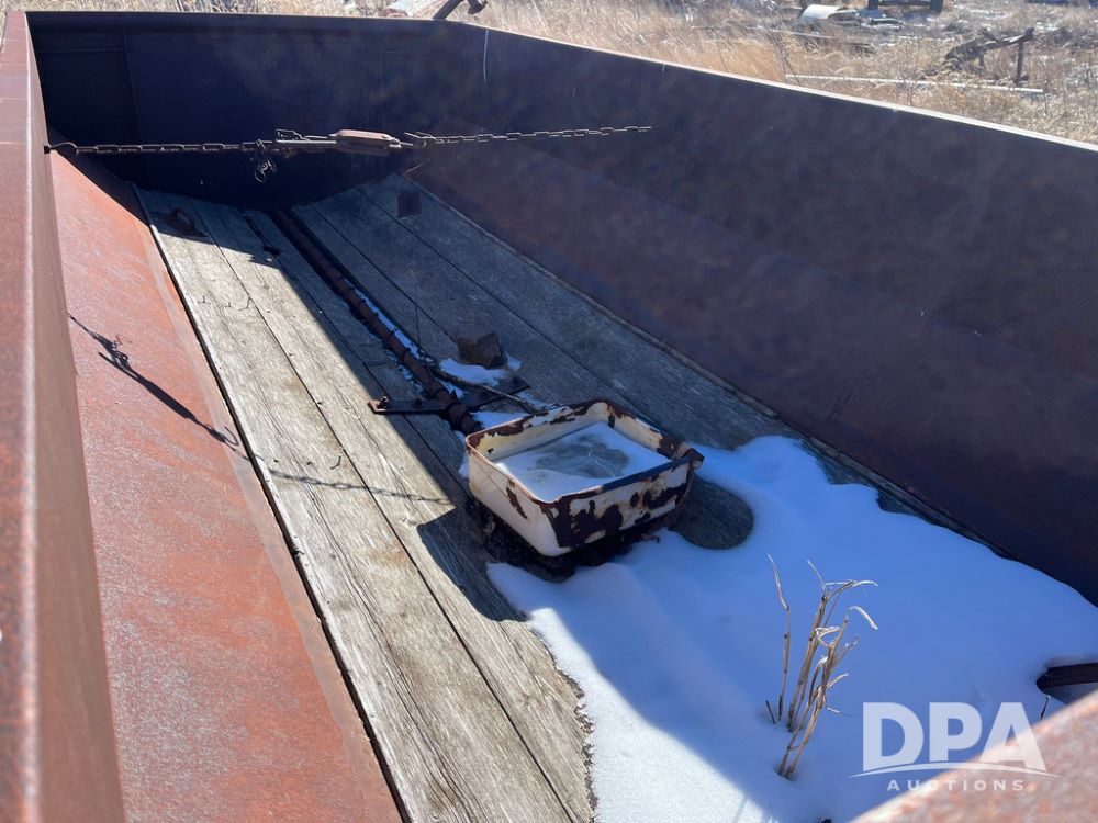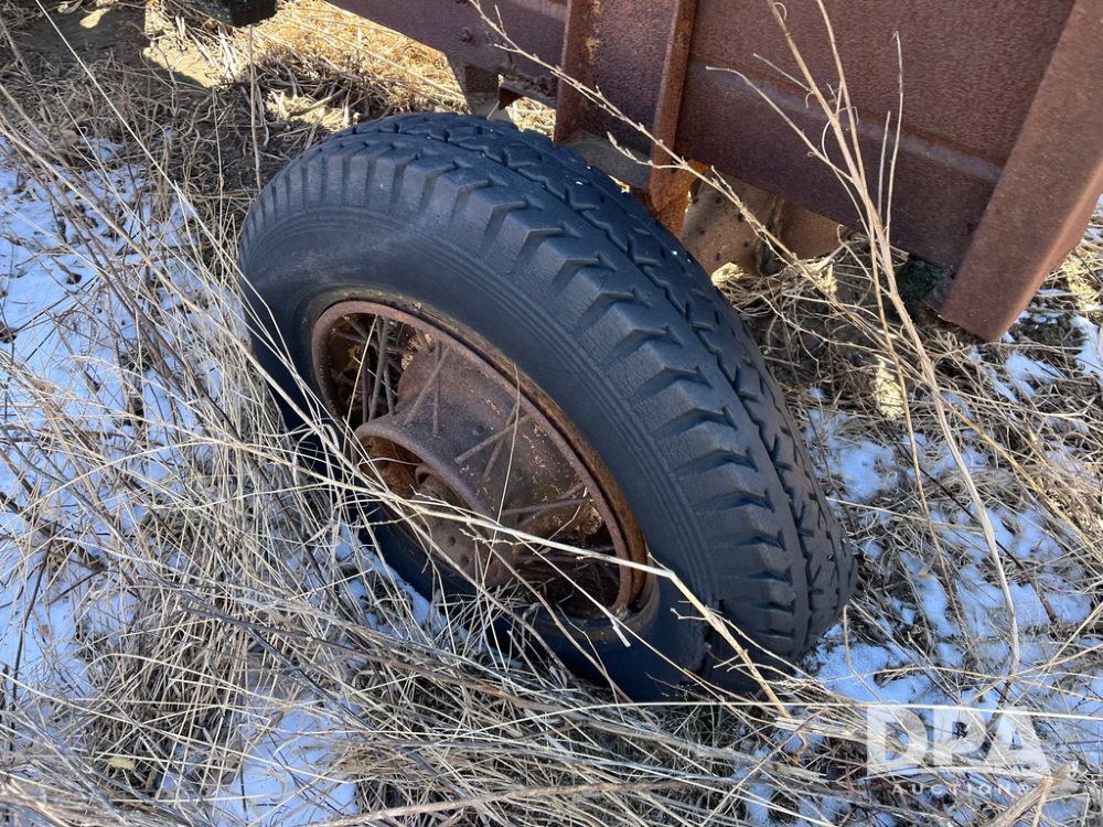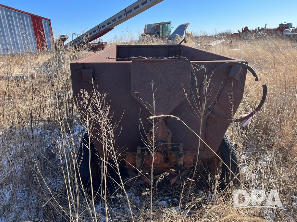 Vintage David Bradley Flare Box Wagon (JN3769), used for grain, mounted on steerable running gear, pull type.