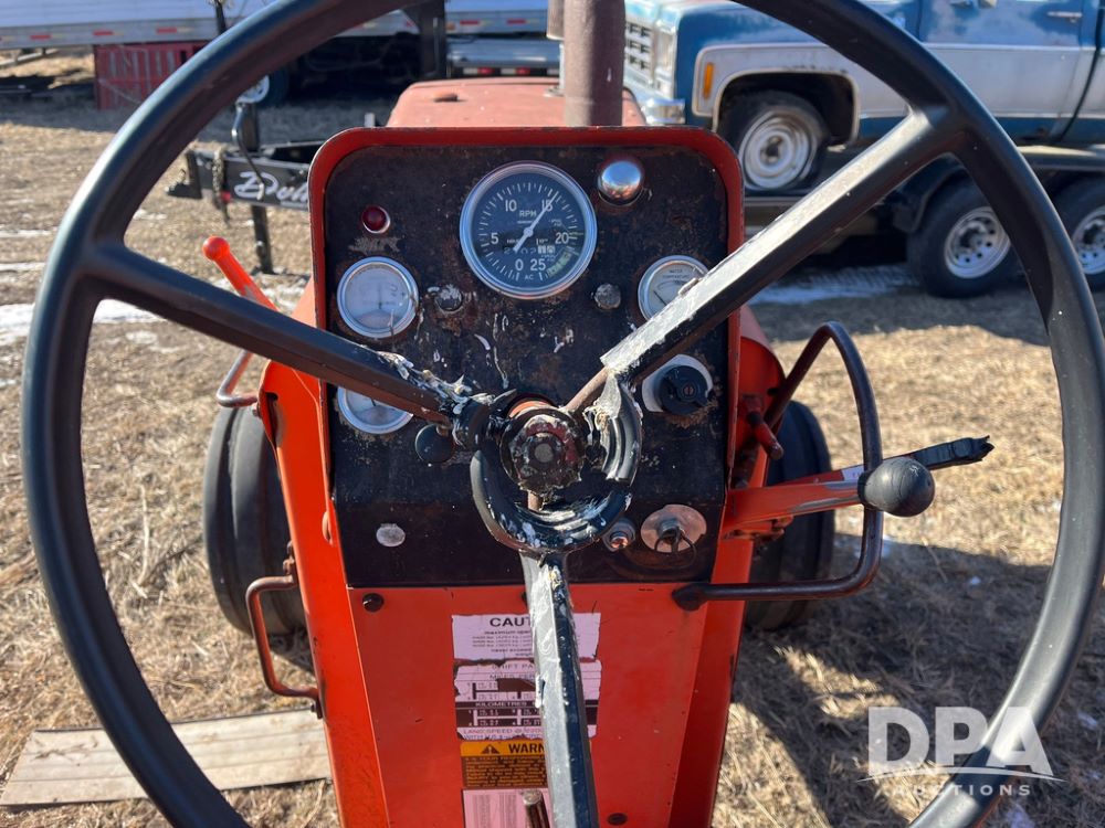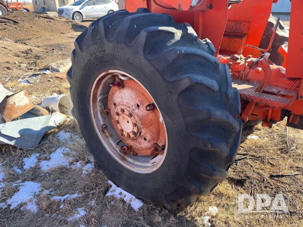 Allis Chalmers F85 Tractor (JN3787), Allis Chalmers 2800 six cylinder diesel engine, 8 speed transmission, spring seat suspension, shows 7356 hours.