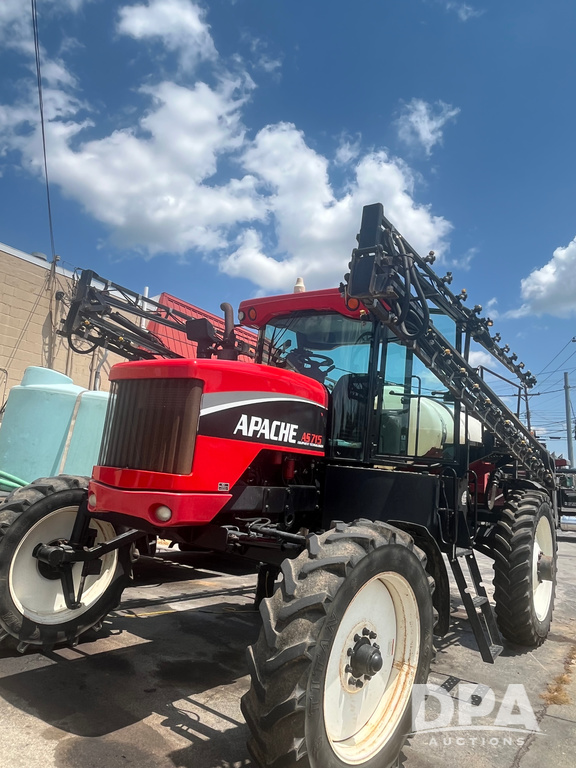 2010 Apache AS715 Sprayer (MN1207), Cummins 6.7L diesel engine, 160hp, 4 speed automatic transmission, heat, AC, radio, cruise control, 750 gallon liquid system, 80ft boom (folds to 60ft), 7 section, poly tank, side fill, 120in tire centers for 30in rows, fenders, 380/80R38 front tires, 380/90R46 rear tires, Raven Epro 2 monitor includes, Raven SmartTrax, Autosteer, shows 2,834 hours.