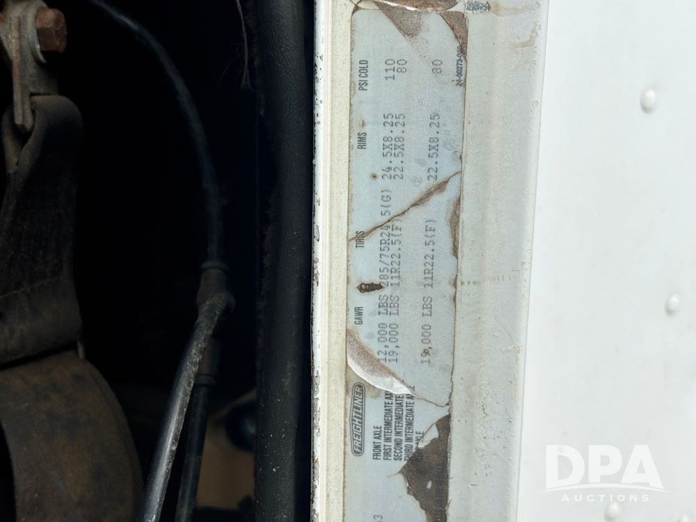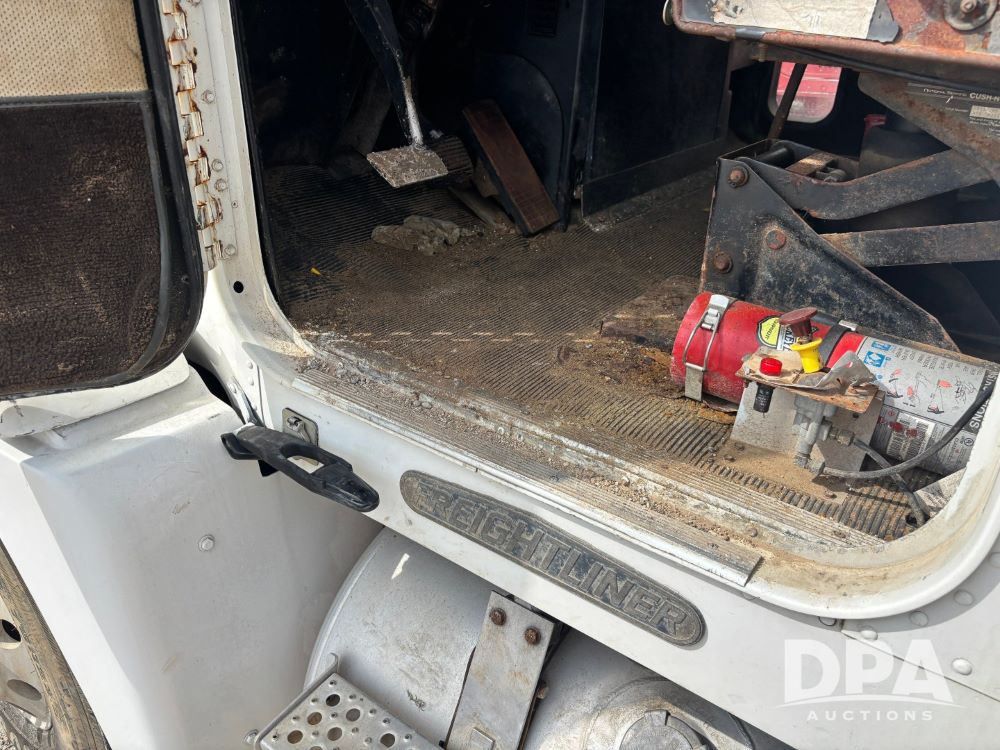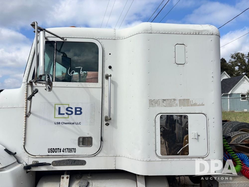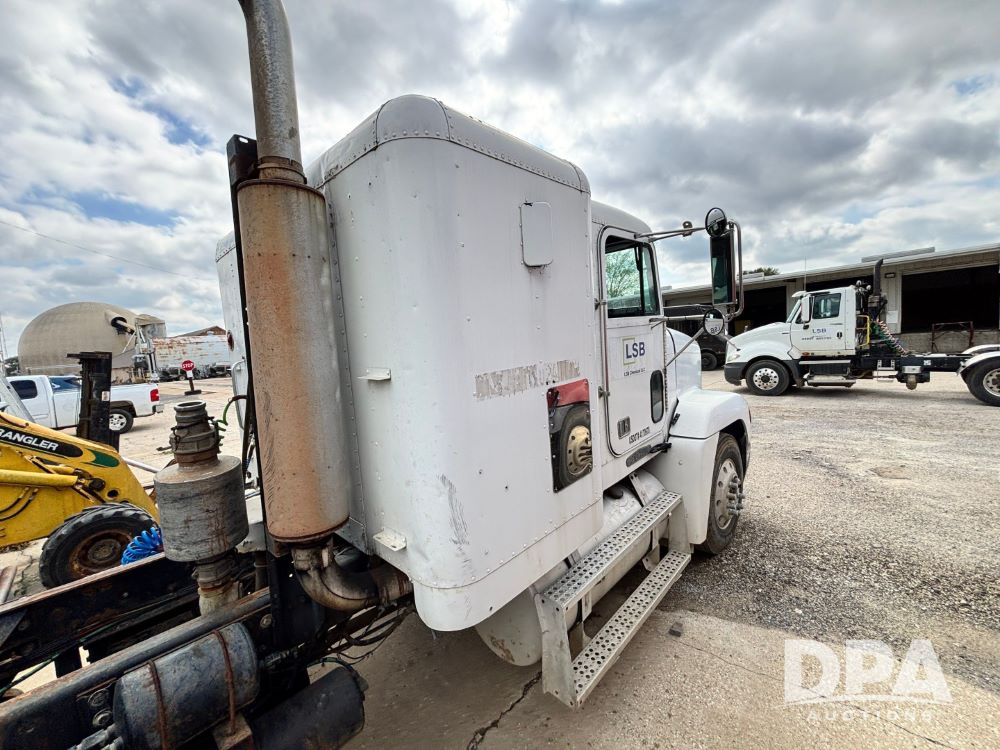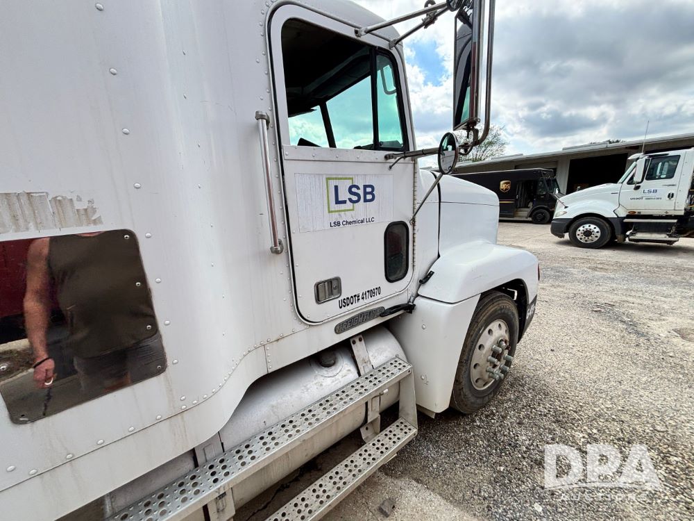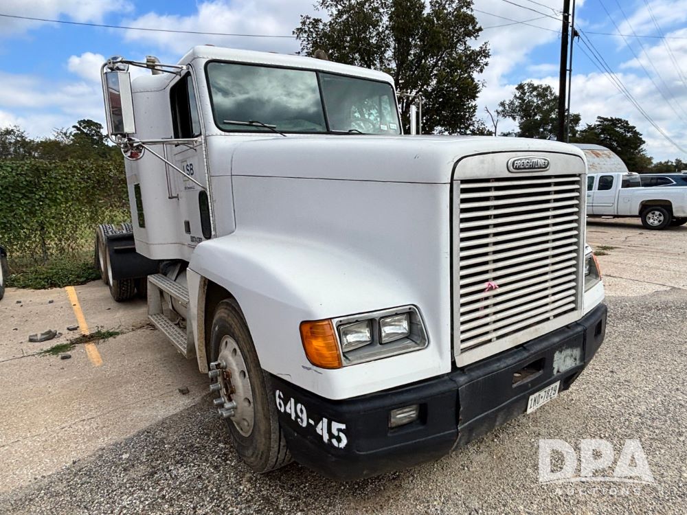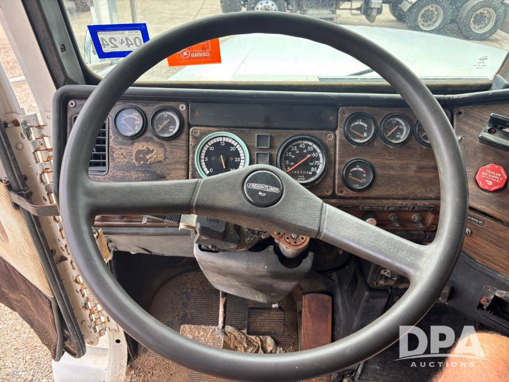 1994 Freightliner FLD120 Truck (GP11765, Unit 649-45), Cummins N14 diesel engine, Eaton Fuller 10 speed transmission, heat, Am/Fm radio, sleeper, tandem axle, air ride suspension, 5th wheel plate, dual fuel tanks, single exhaust, 295/75R22.5 tires, GVWR 50,000 pounds, shows 1,185,104 miles.