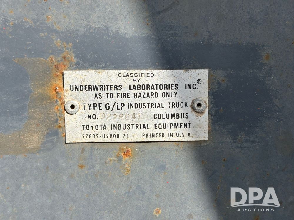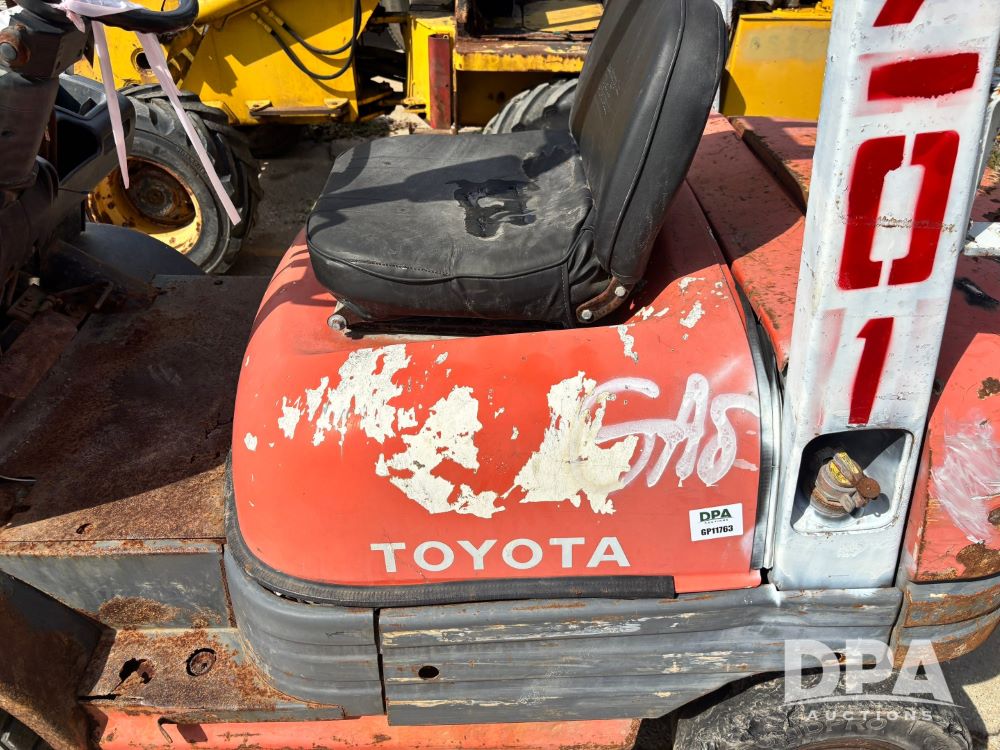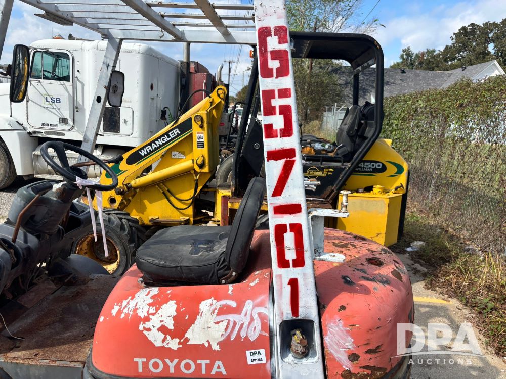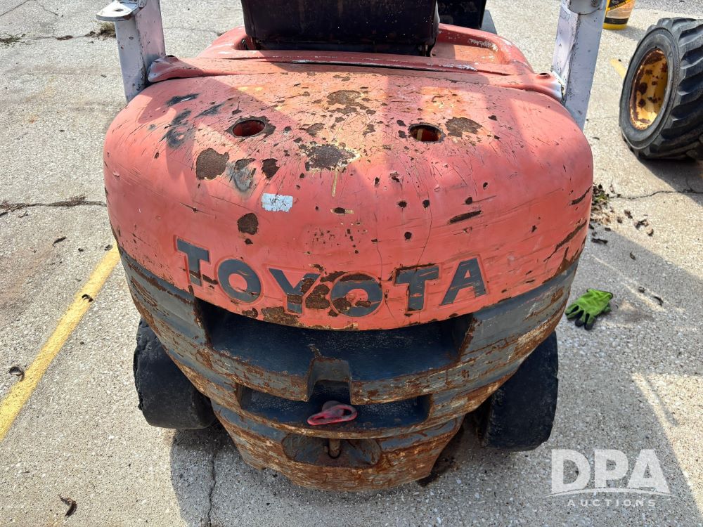 Toyota Forklift (GP11763, Unit 657-01), Toyota forklift, gas, forks, tilt, 7.00-12 front tires, 6.50-10/5.00 rear tires, shows 14,116 hours.