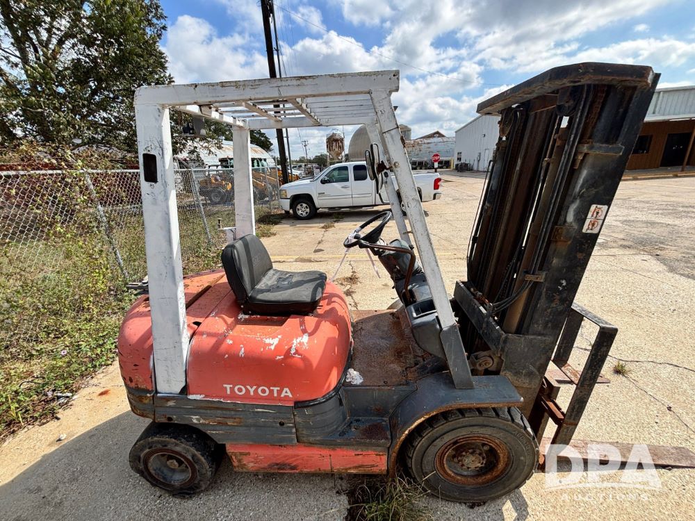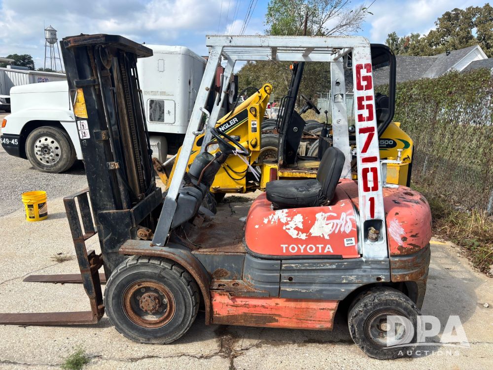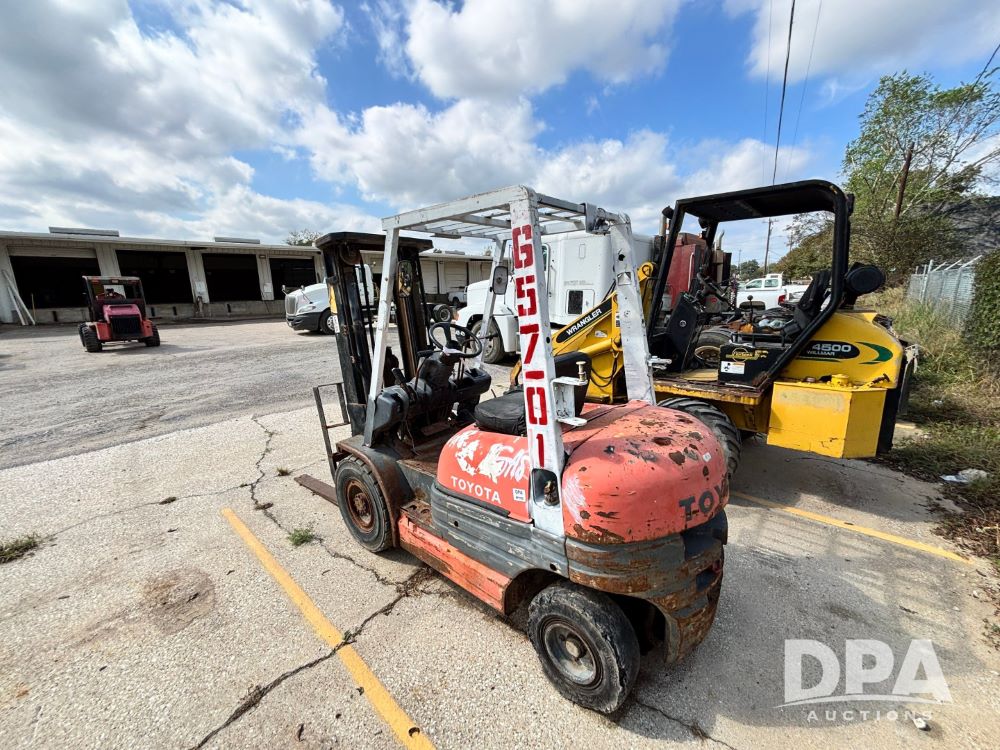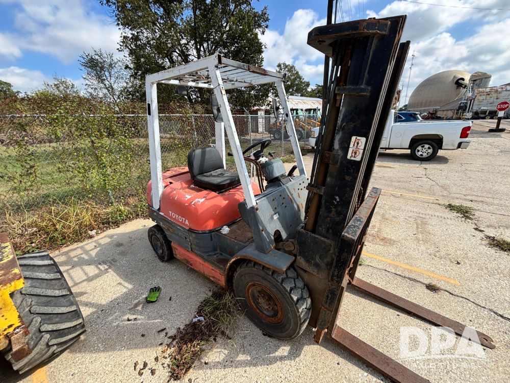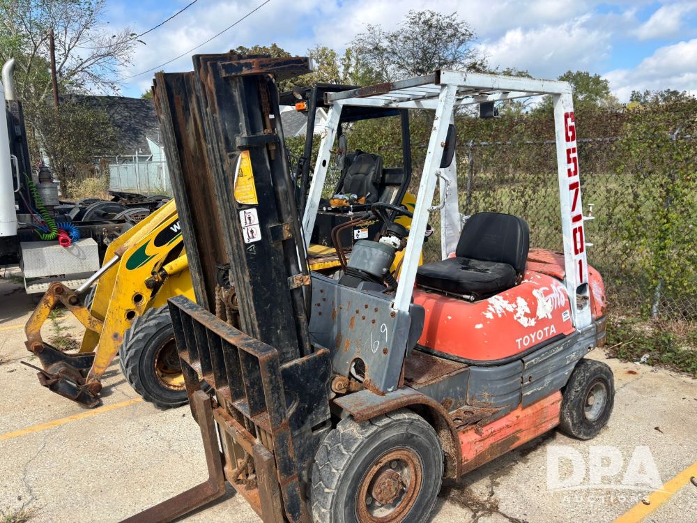Toyota Forklift (GP11763, Unit 657-01), Toyota forklift, gas, forks, tilt, 7.00-12 front tires, 6.50-10/5.00 rear tires, shows 14,116 hours.