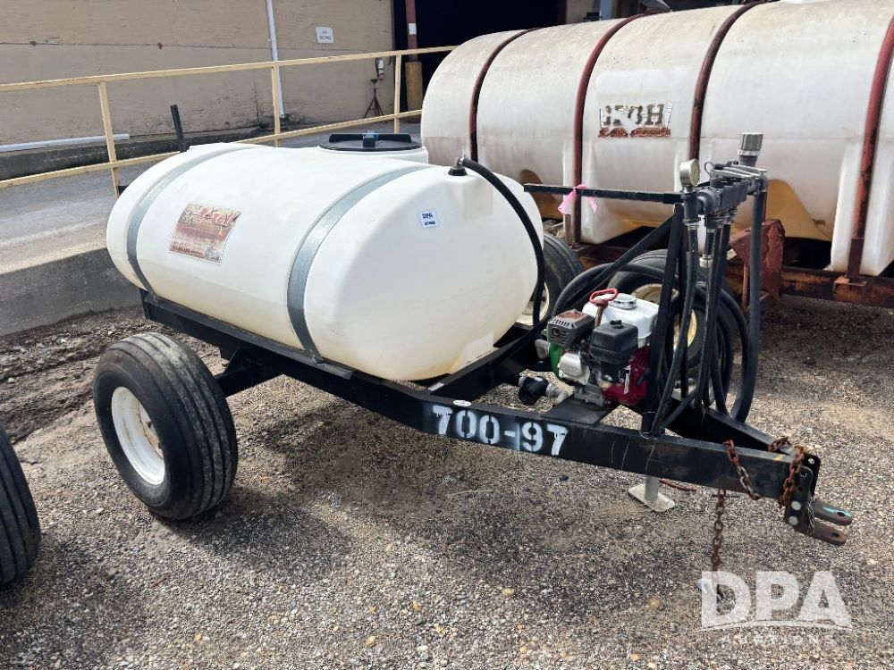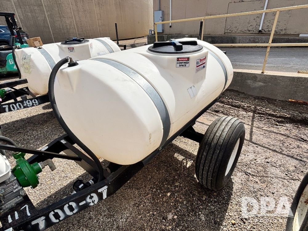 Rozell Liquid Nurse Trailer (GP11808, Unit 700-97), Rozell liquid nurse trailer, 300 gallon poly liquid tank, Honda GX160 gas motor, pump, single axle gear, 11L-15 flotation tires.