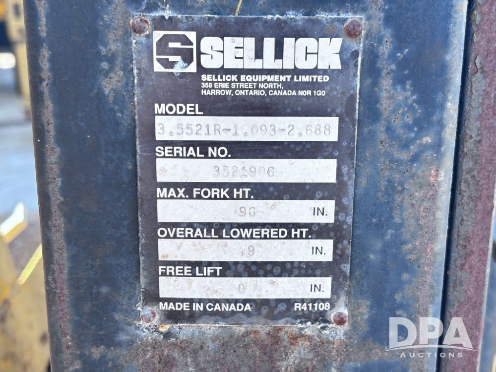 Sellick Forklift (GP11806, Unit 657-42), Sellick Model 3.551R-1.093-2.688 forklift, forks, 31x15.50-15 tires, shows 1,040 hours.