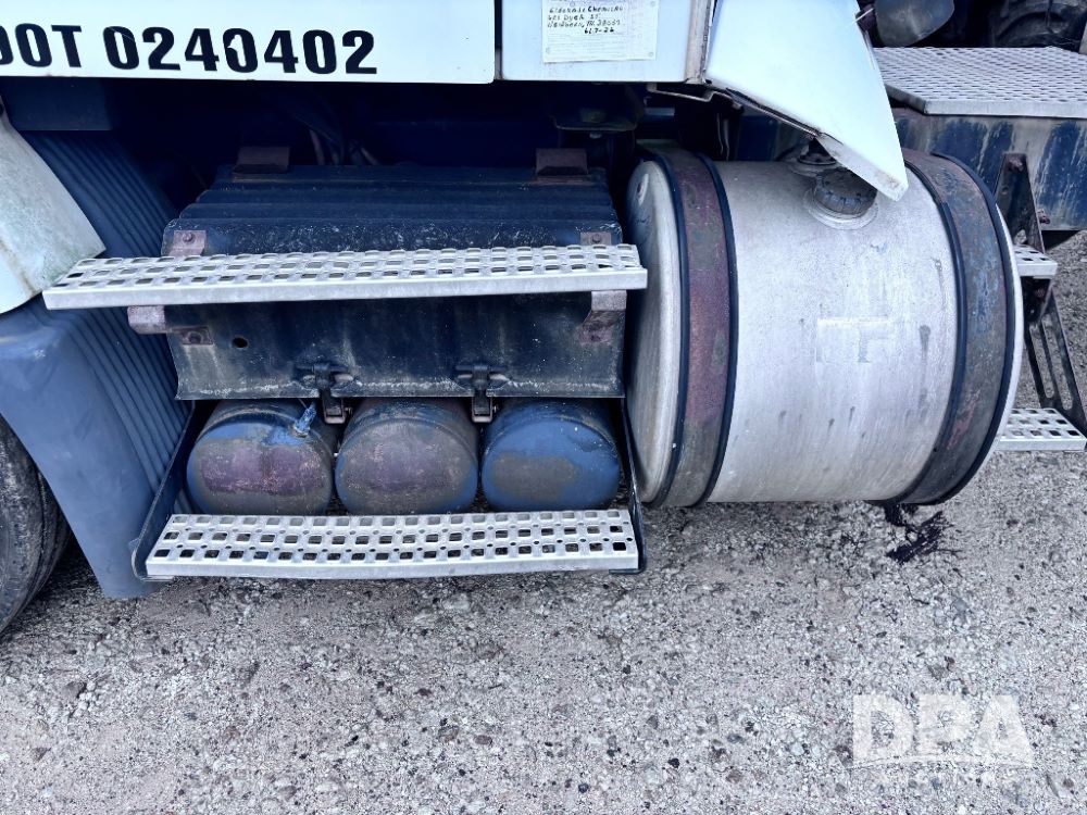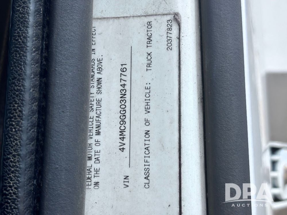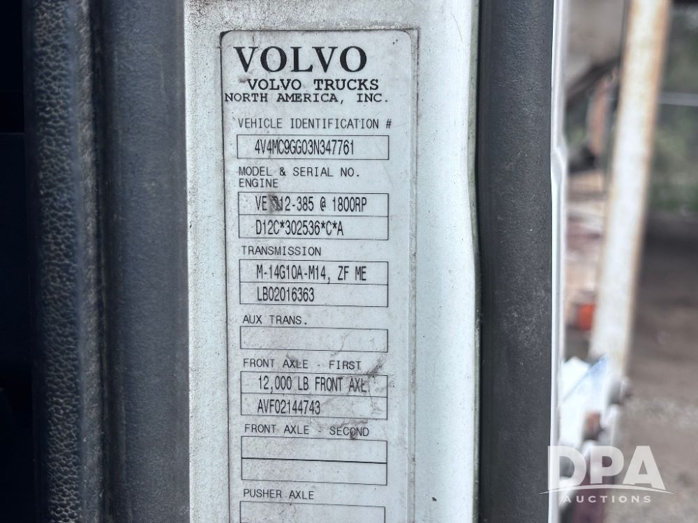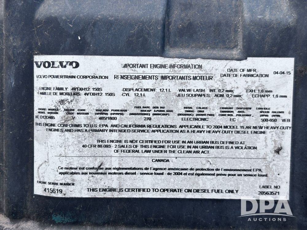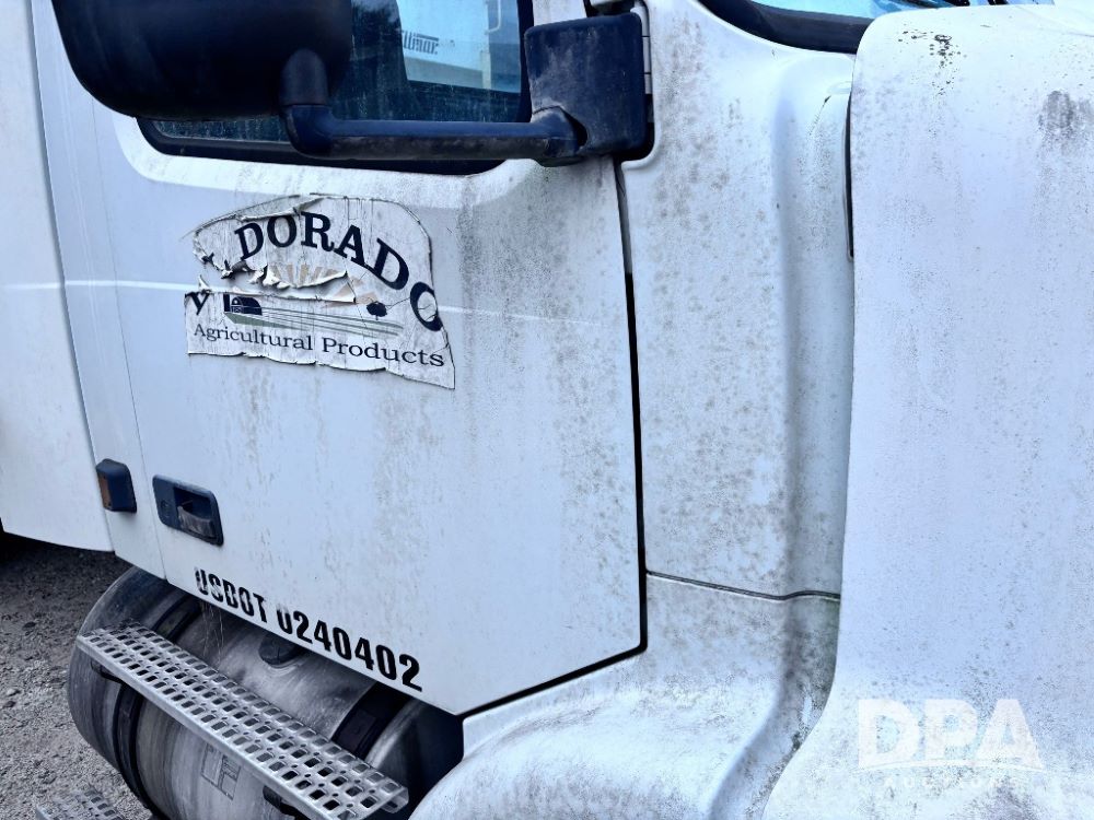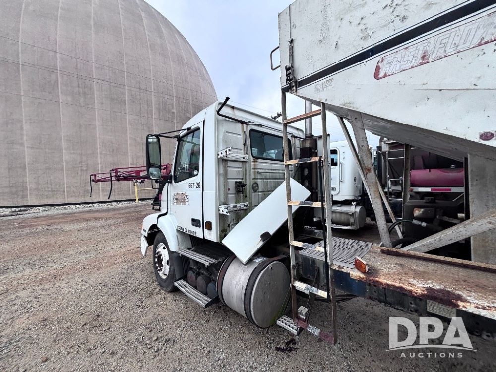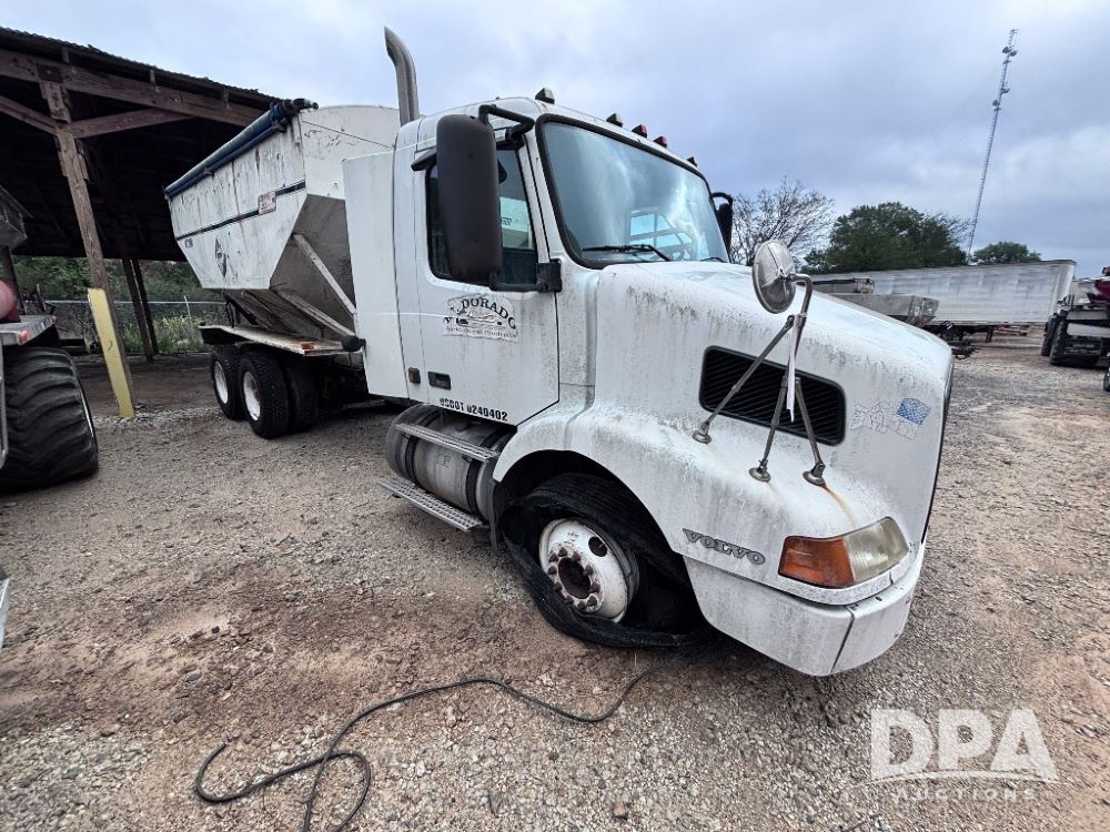 2003 Volvo Dry Tender Truck (GP11773, Unit 667-26), Volvo 12.1L diesel engine, Meritor 10 speed transmission, heat, tandem axle, air ride suspension, Willmar Fast Flow 16 ton dry tender box, rear discharge auger, roll tarp, hydraulic, fuel tank, single exhaust, 11R22.5 tires.