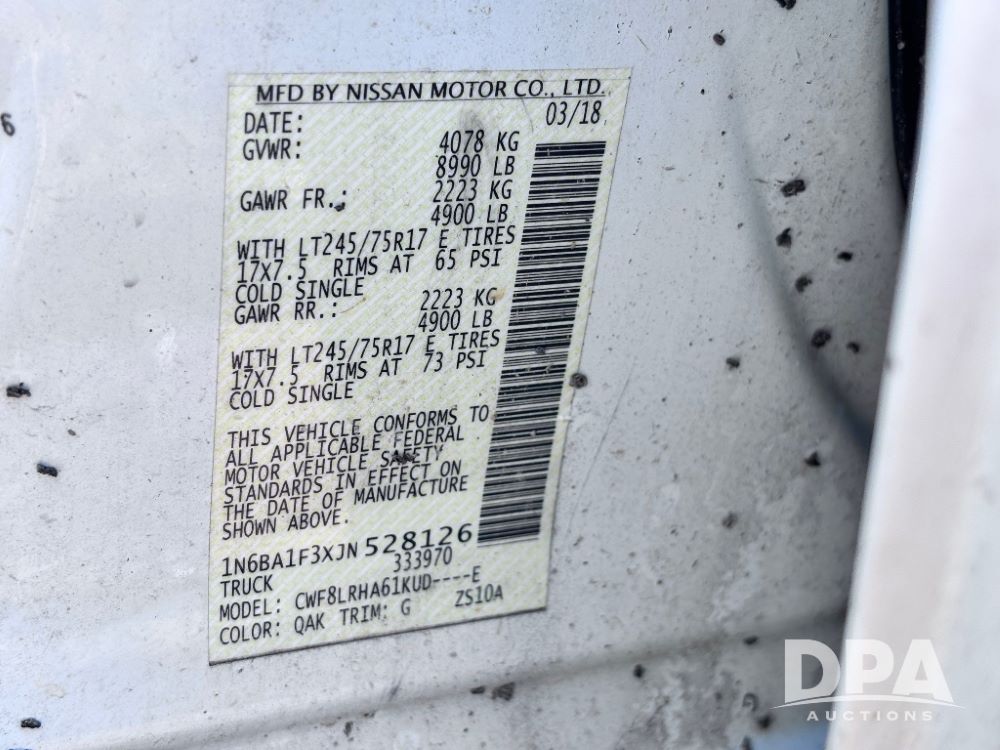 2018 Nissan Titan XD 4x4 Pickup (GP11772, Unit 700-71), 4 door, Cummins turbo diesel engine, automatic transmission, heat, air conditioning, Am/Fm radio, cloth interior, power windows and locks, cruise control, running boards, tow package, LT265/70R17 tires, miles unknown.