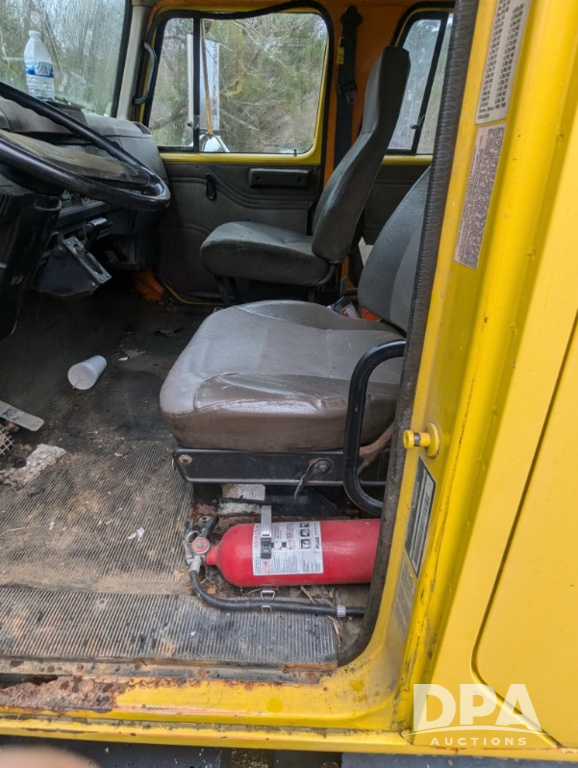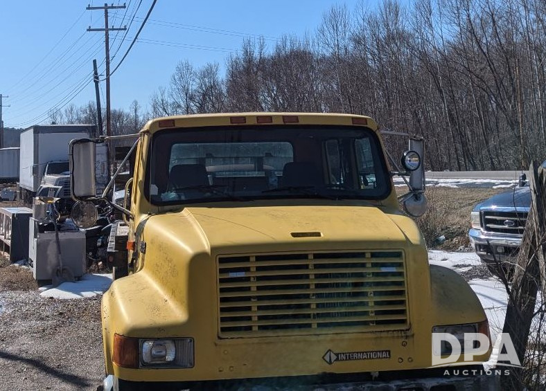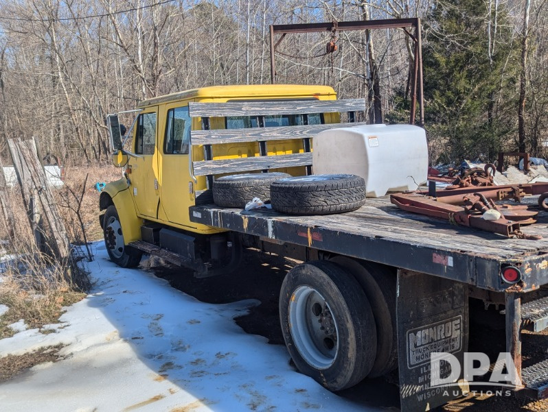 2000 International 4700 Truck (ED5433), DT444E 7.3L engine, Allison automatic transmission, heat (worked last time used, air brakes, crew cab, Lo profile, 12' flatbed, 245/75/22.5 tires.