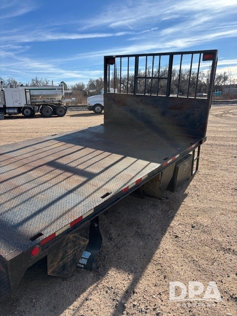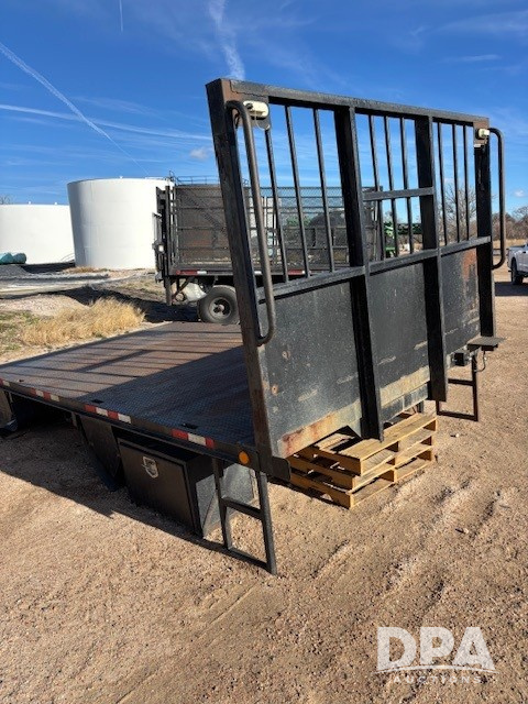 Truck Bed (DR13190), 14' X102'' steel deck truck bed, stake pockets and headache rack, bottom mounted storage box.