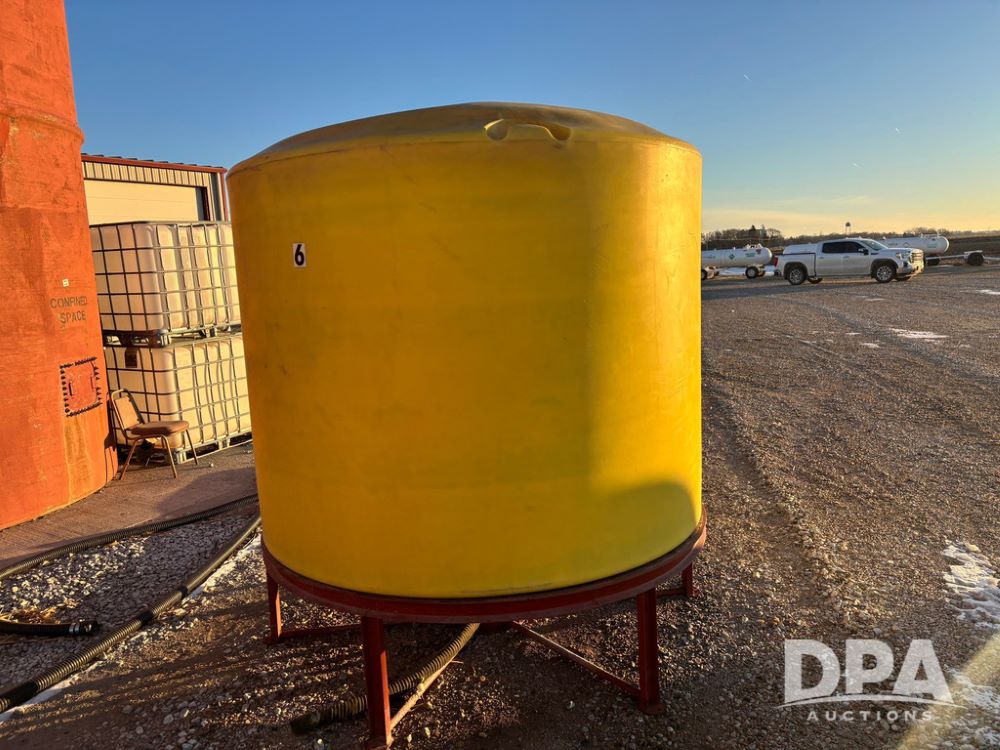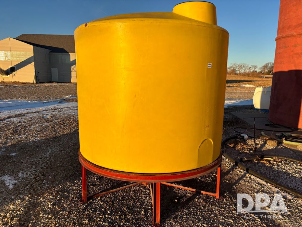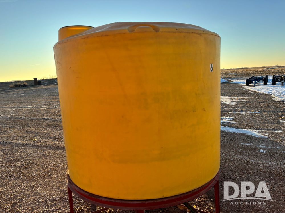 Poly Cone Bottom Liquid Tank (GP12207, Unit 6), Poly cone bottom liquid tank, stands, valve.