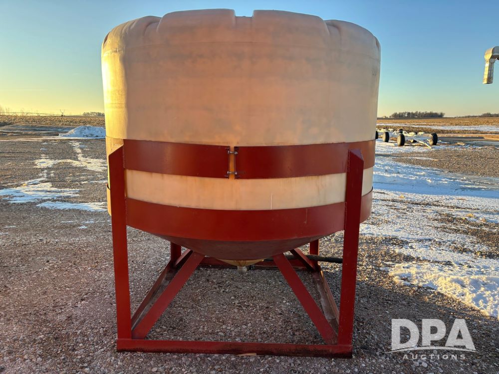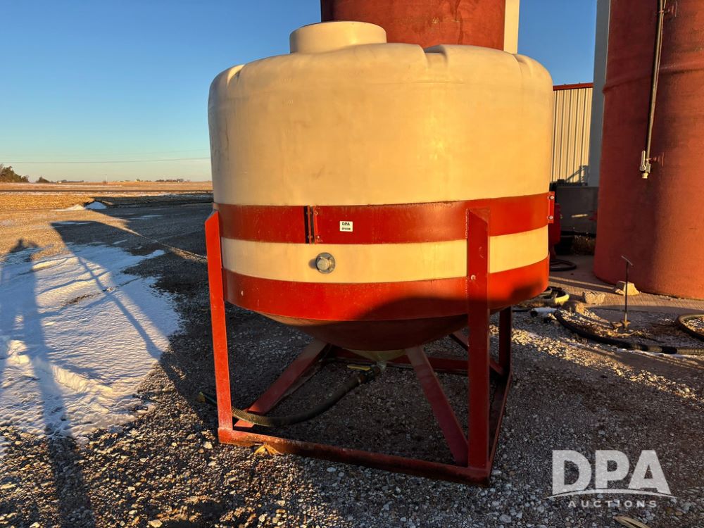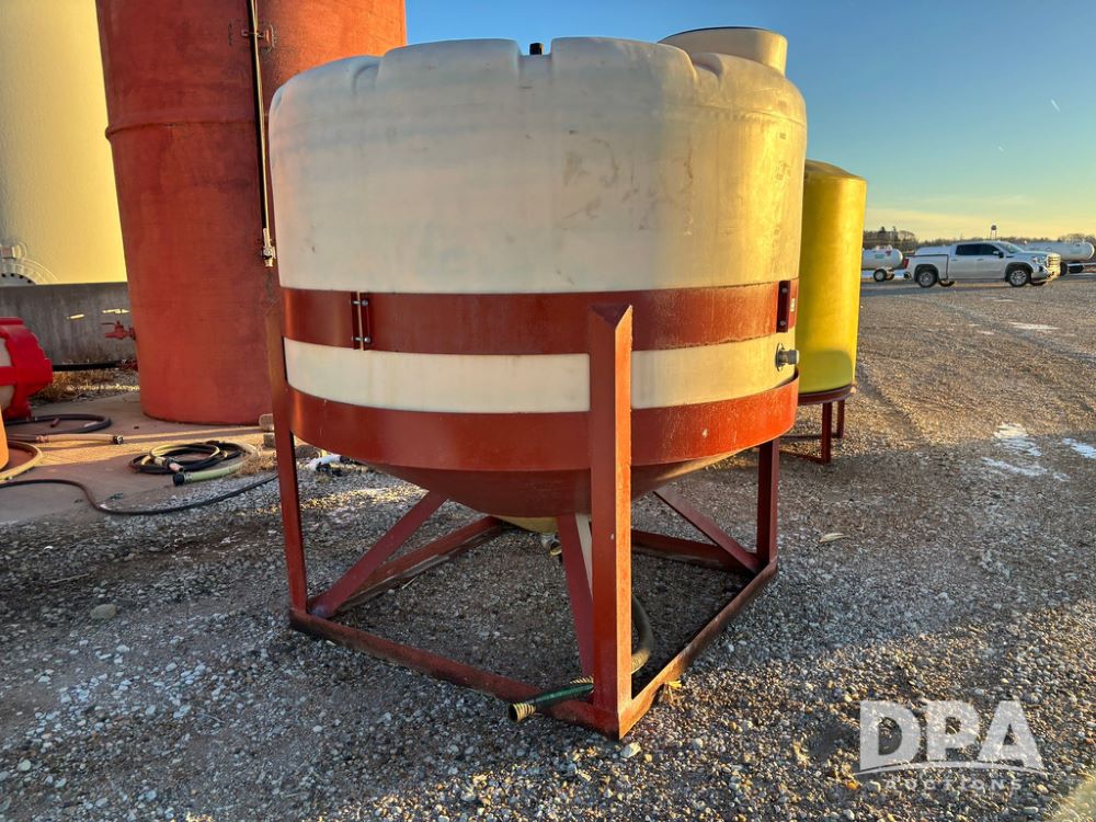 Poly Cone Bottom Liquid Tank (GP12208), Poly cone bottom liquid tank, stands, valve.