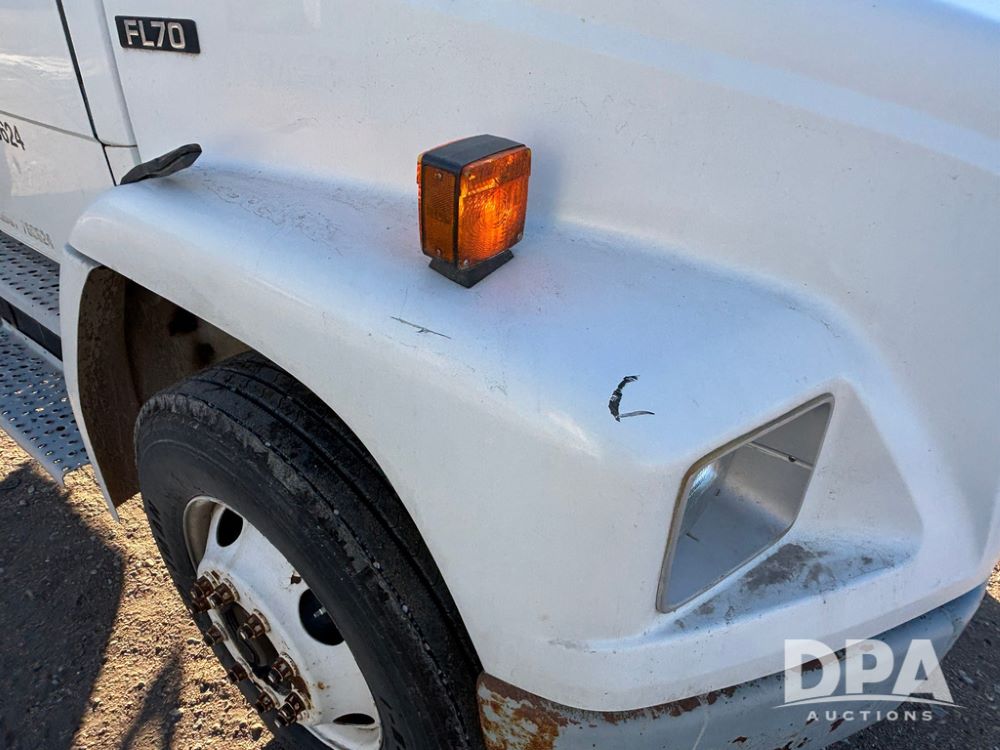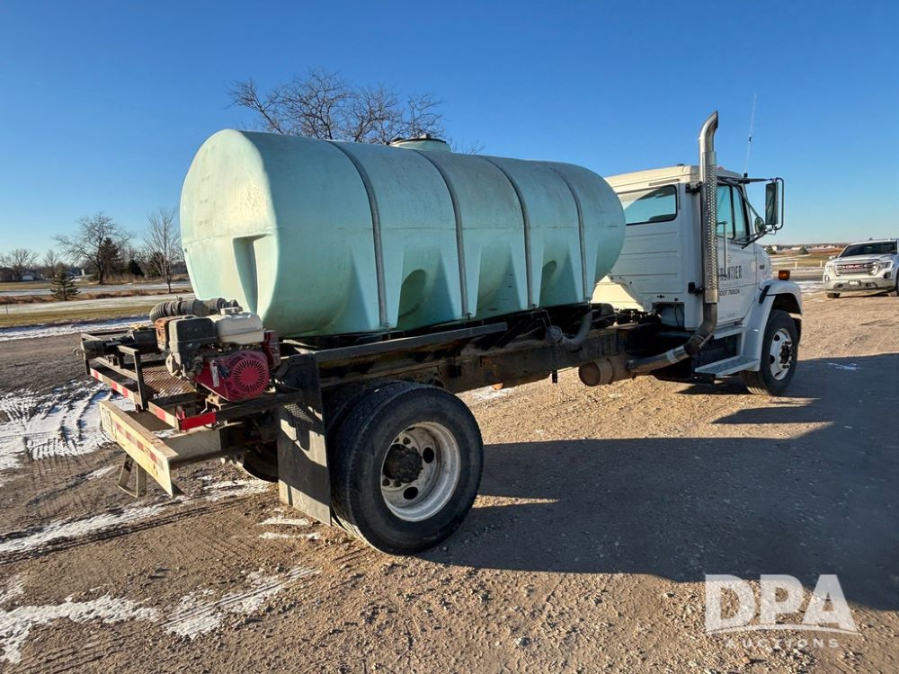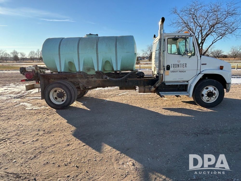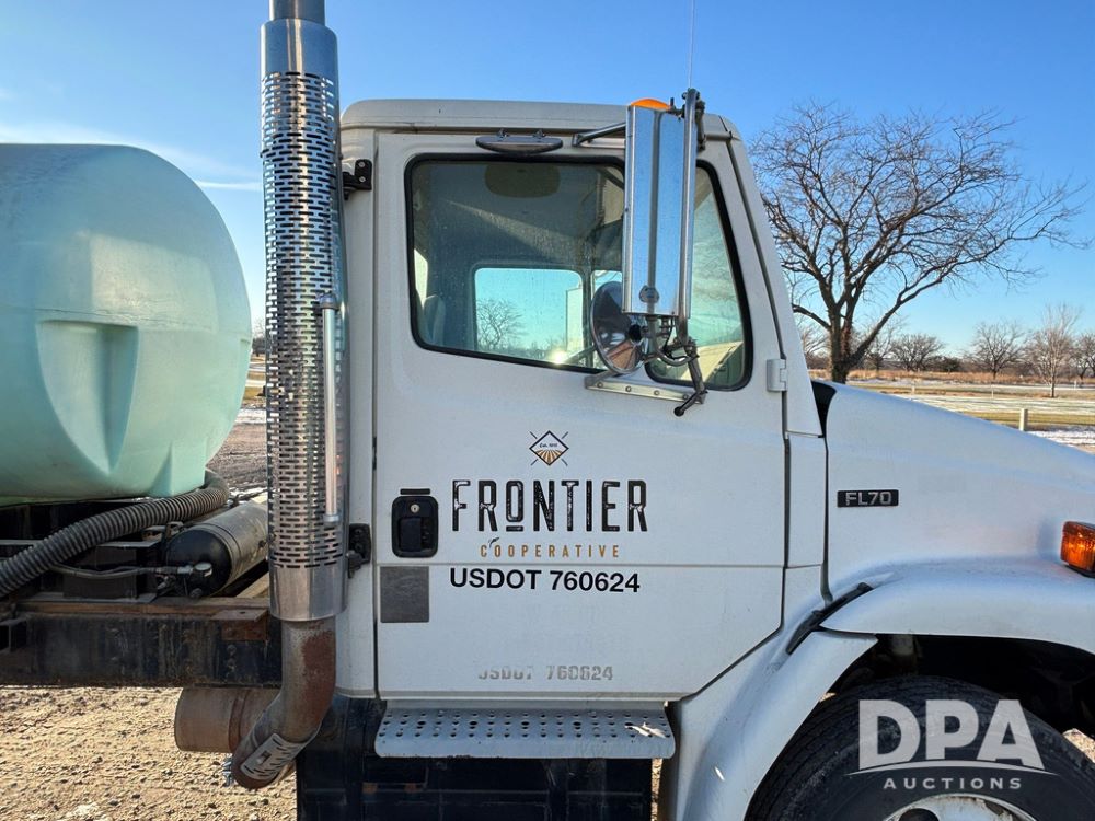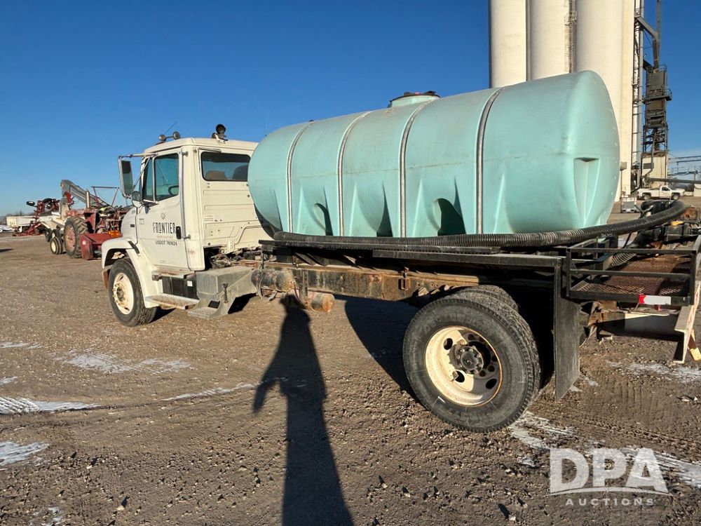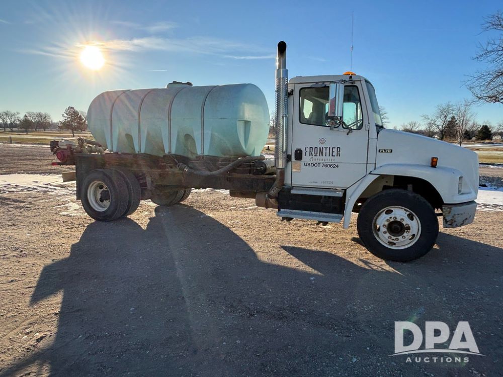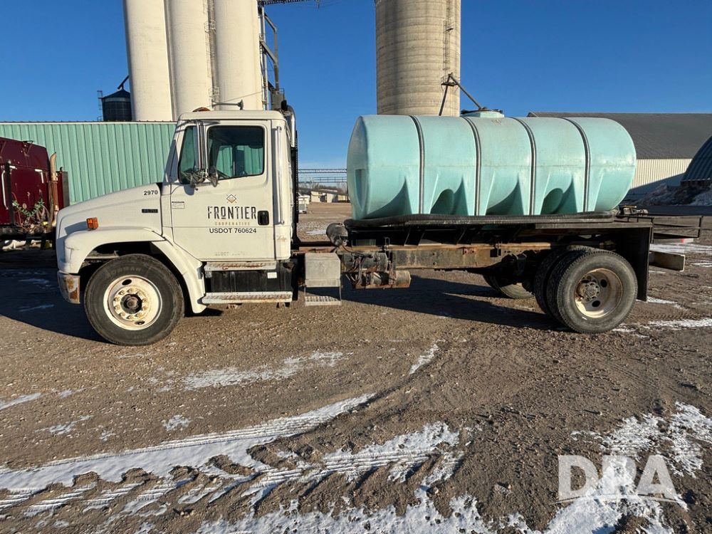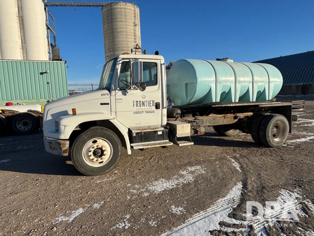 2003 Freightliner FL70 Liquid Nurse Truck (GP12213, Unit 2970), Cat 3126 diesel engine, Eaton Fuller 9 speed transmission, heat, Am/Fm radio, cruise control, power windows, single axle, spring suspension, 2,000 gallon poly liquid nurse tank Honda electric start gas engine, pump, 295/75R22.5 tires, 204,823 miles.