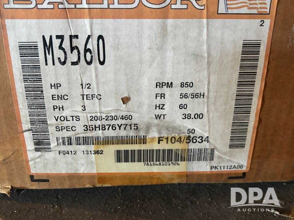 New Baldor Electric Motor (GP12260), New Baldor 1/2 hp electric motor, 3 phase.