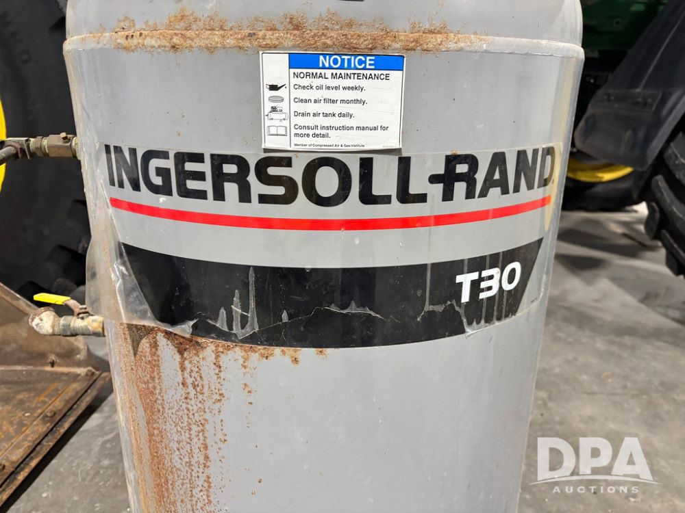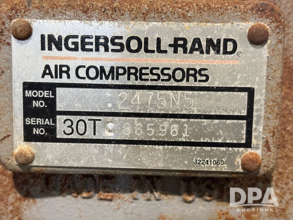 1998 Ingersoll Rand Air Compressor (GP12264), 1998 Ingersoll Rand model 2475N5 air compressor, S/N 30T - 865961, Weg 5 hp electric motor, Manchester tank 80 gallon air tank.