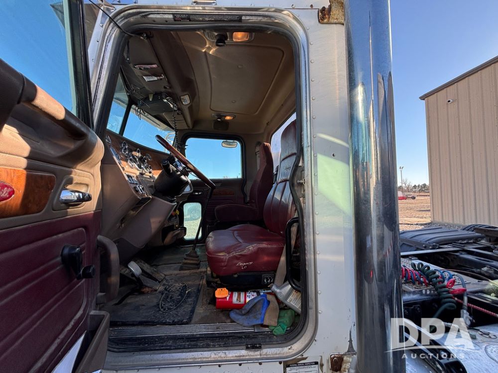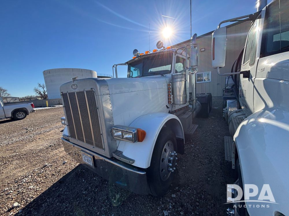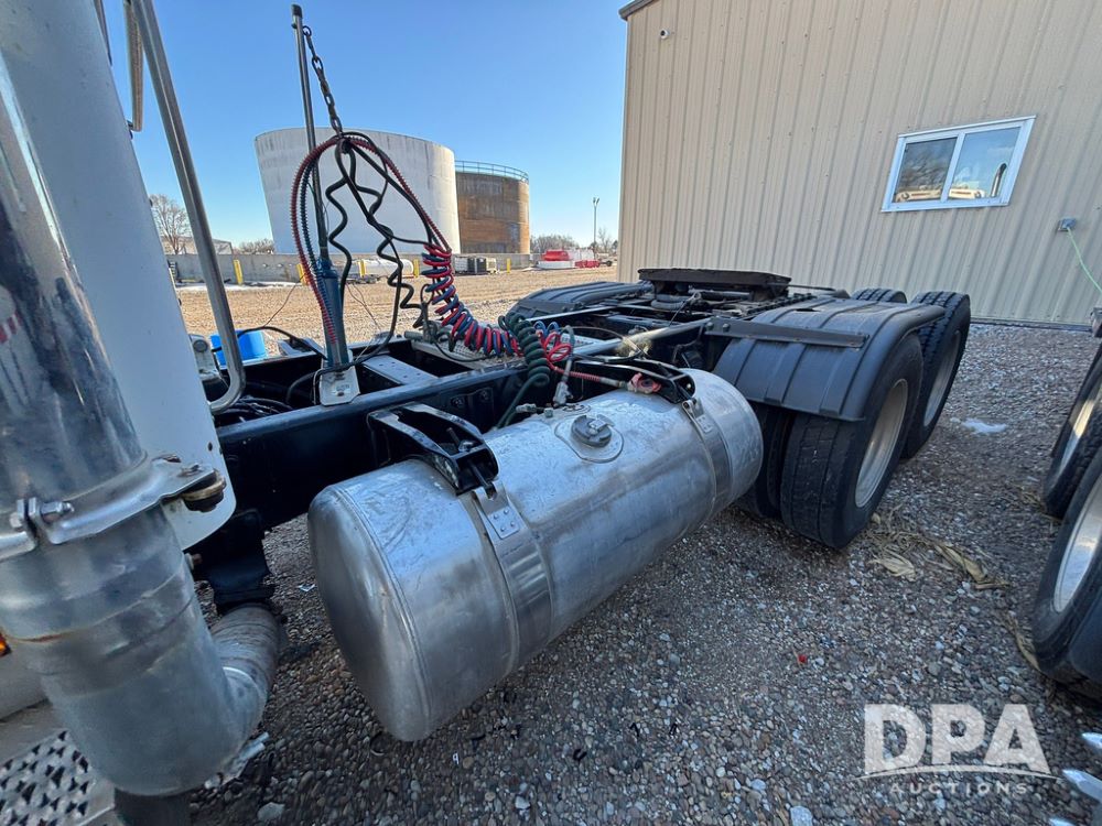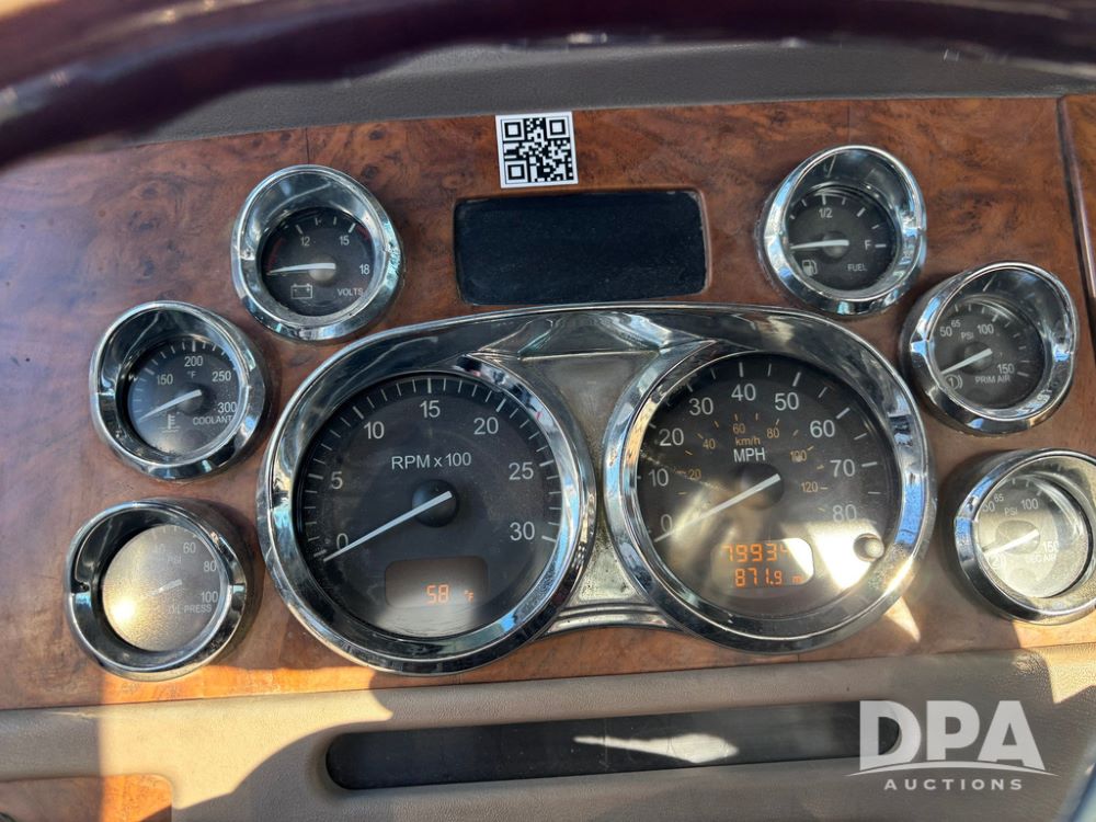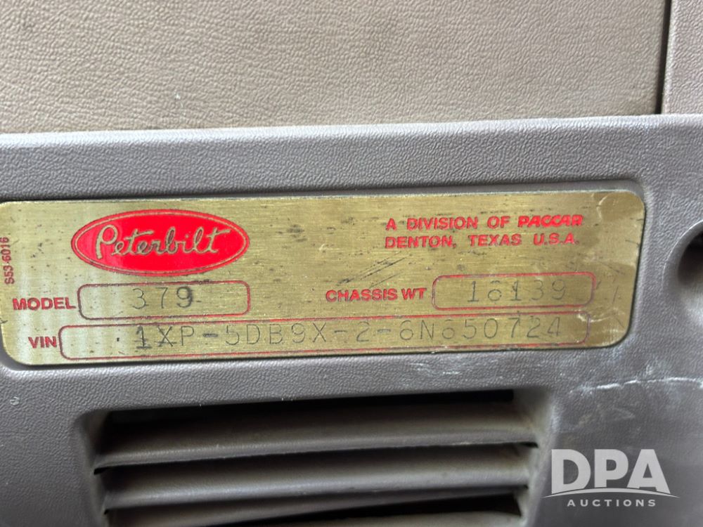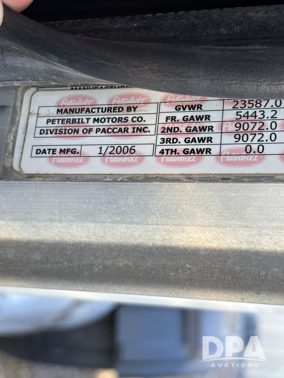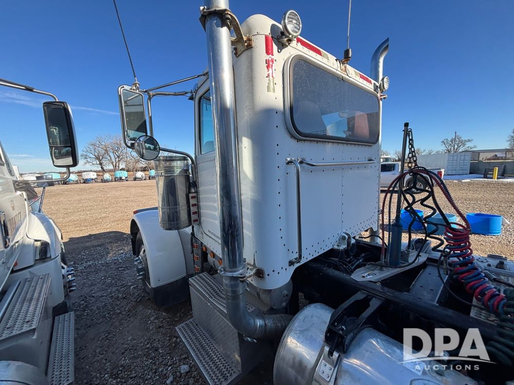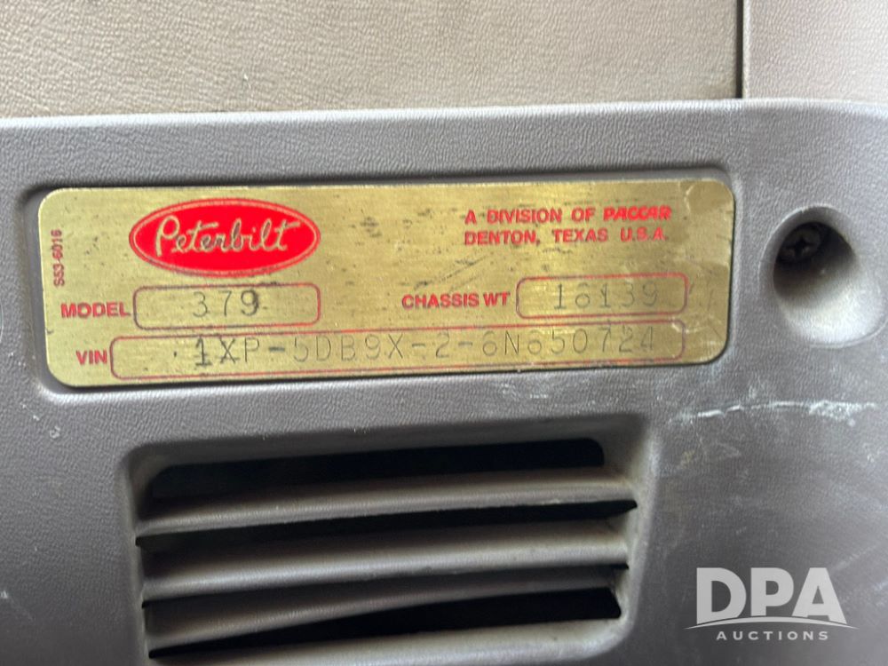 2006 Peterbilt 379 Day Cab Truck (GP12263, Unit 5095), Cat C15 Acert diesel engine, Eaton Fuller 10 speed transmission, air conditioning, heat, Am/Fm radio, cruise control, engine brake, power windows, tandem axle, full screw, air ride suspension, 5th wheel, 11R24.5 tires, aluminum rims, shows 799,349 miles.