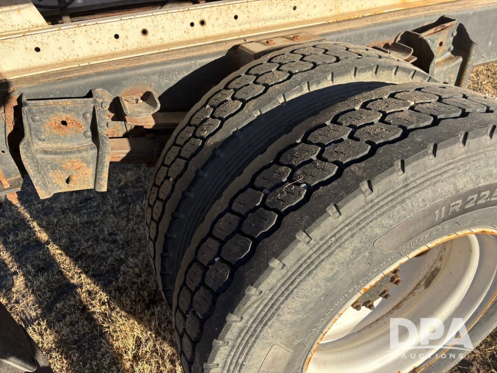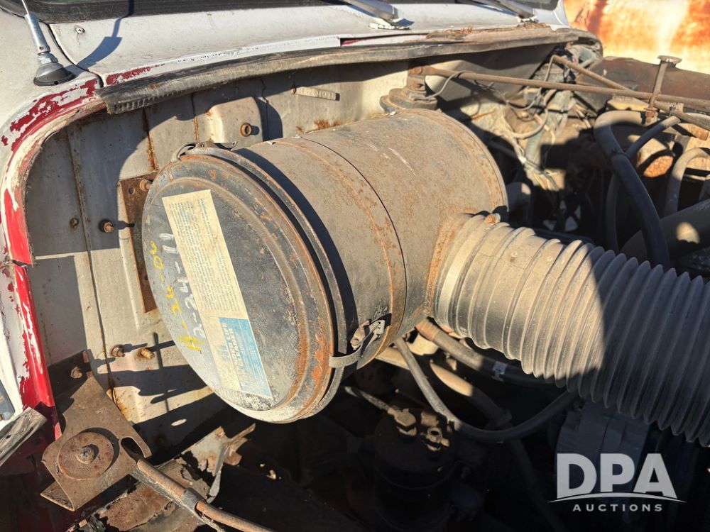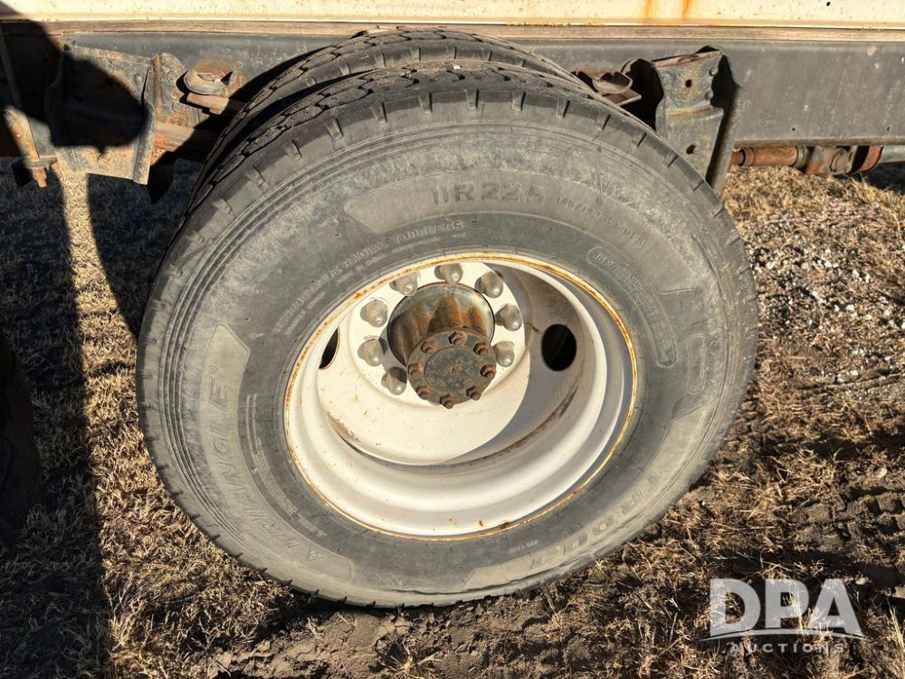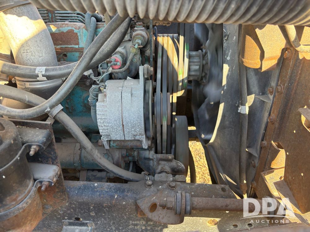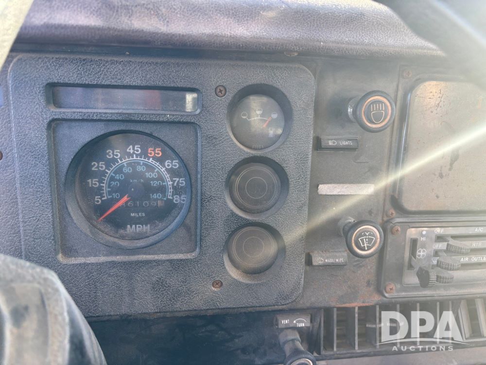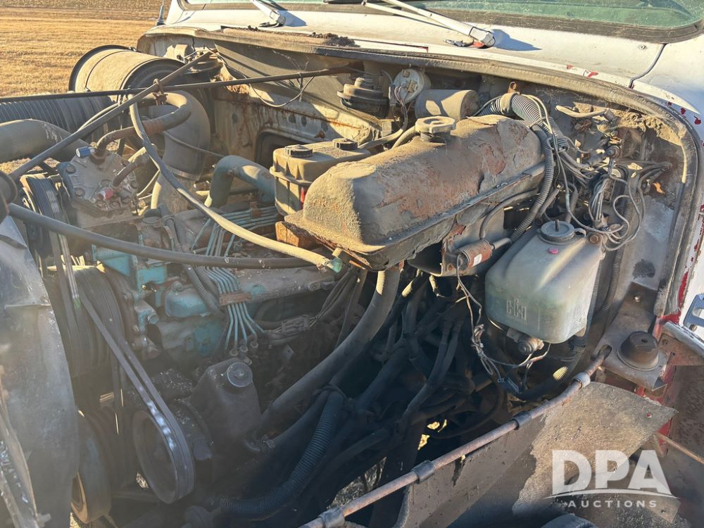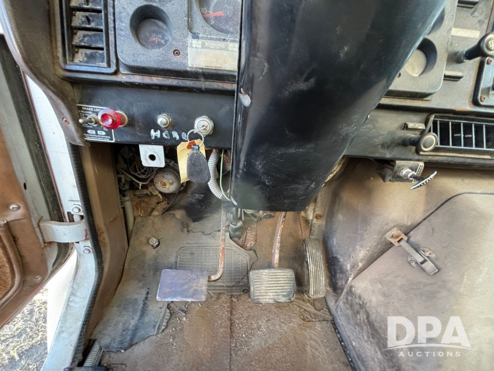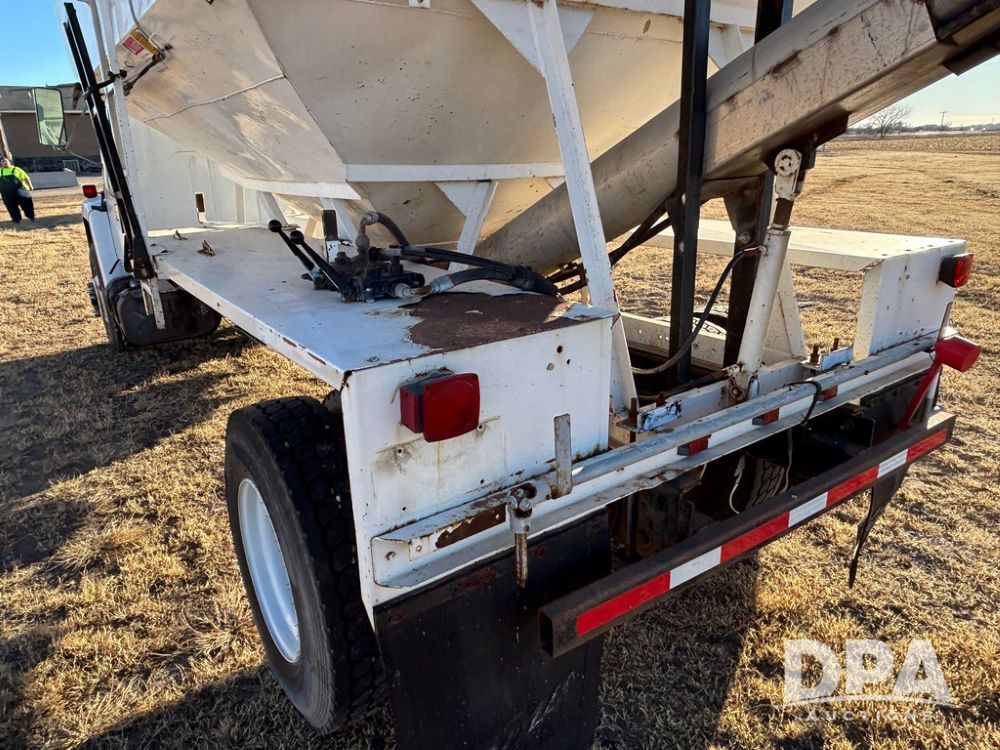 1985 IHC S1954 Dry Tender Truck (GP12272, Unit 2143), diesel engine, Spicer Double Duty D transmission, with 2 speed rear end, heat, Am/Fm radio, single axle, spring suspension, Tyler 10 ton dry tender box, rear discharge auger, all hydraulic, roll over tarp, 11R22.5 tires, shows 286,109 miles.