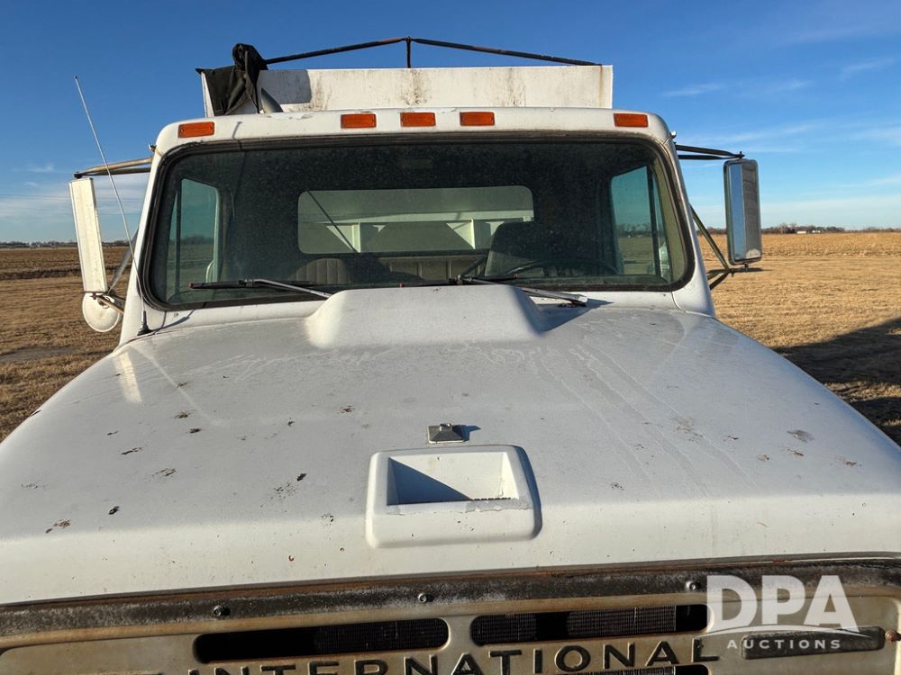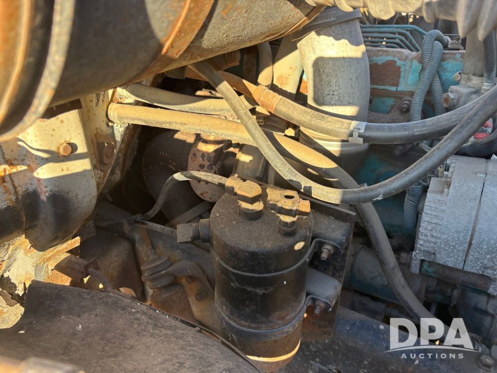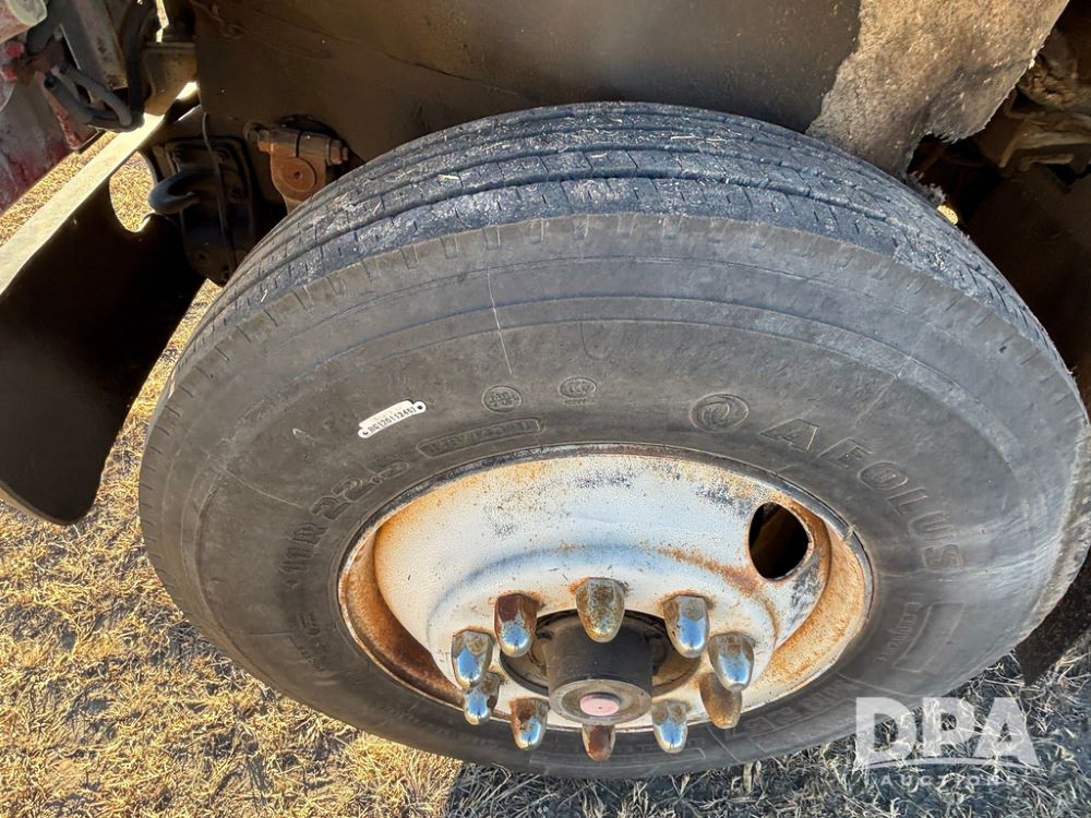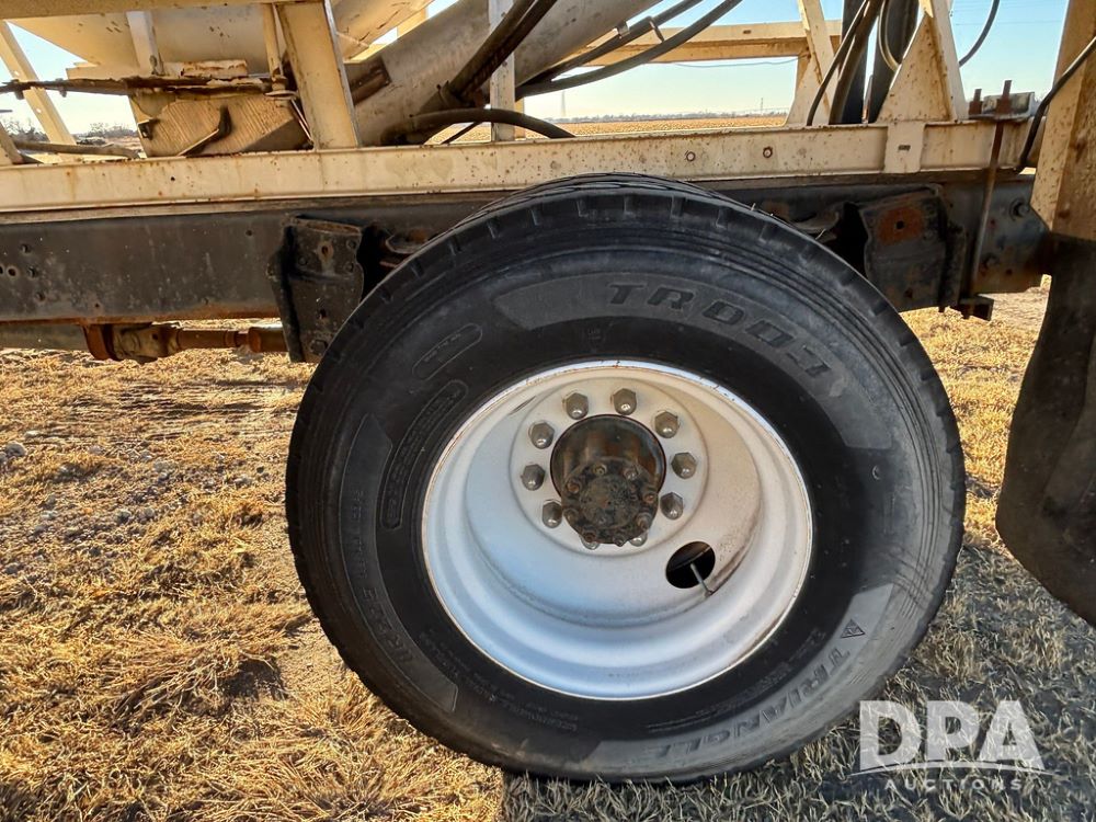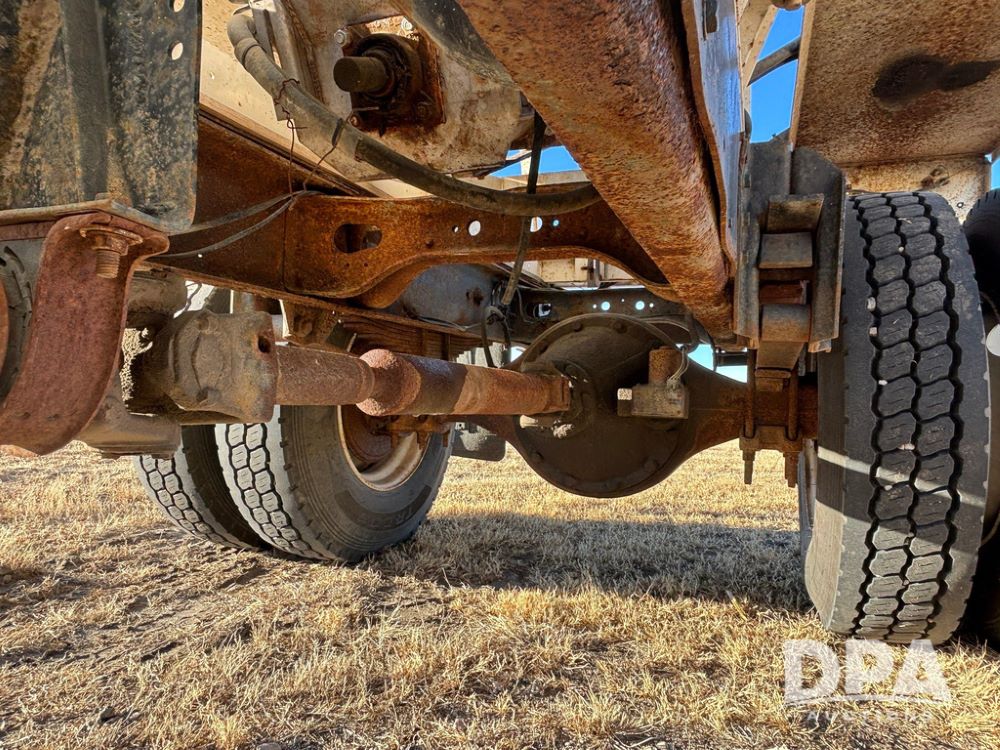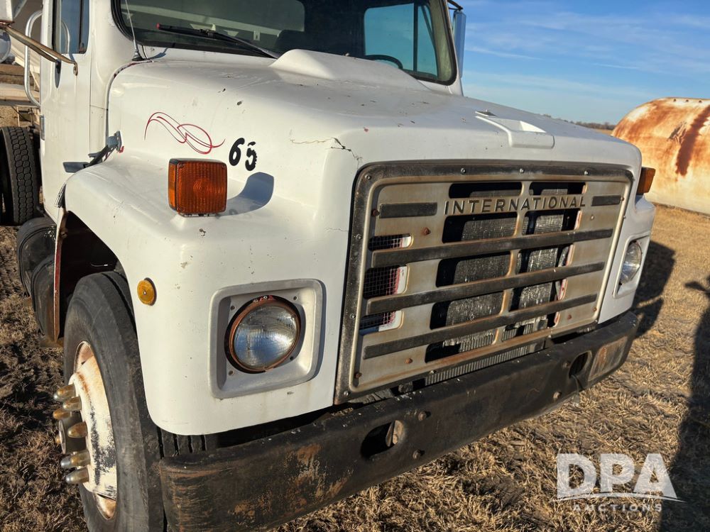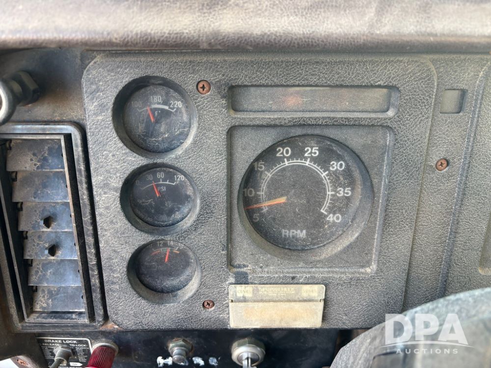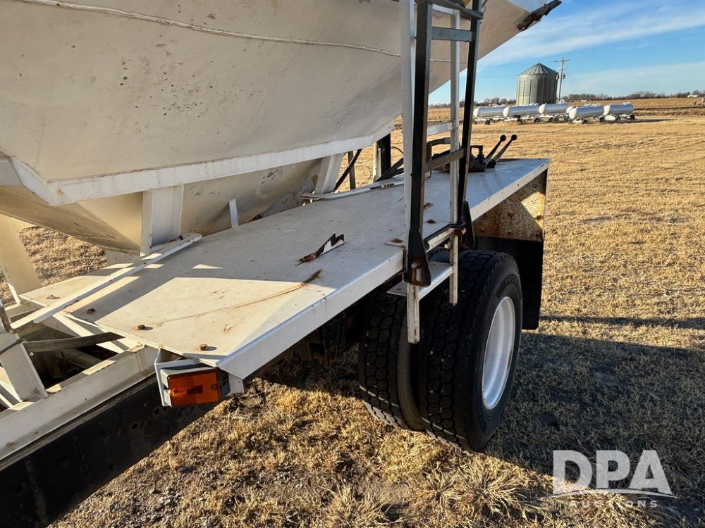 1985 IHC S1954 Dry Tender Truck (GP12272, Unit 2143), diesel engine, Spicer Double Duty D transmission, with 2 speed rear end, heat, Am/Fm radio, single axle, spring suspension, Tyler 10 ton dry tender box, rear discharge auger, all hydraulic, roll over tarp, 11R22.5 tires, shows 286,109 miles.