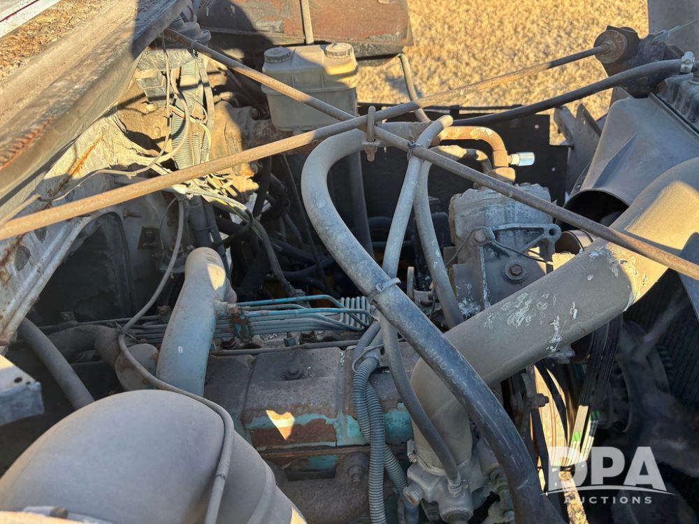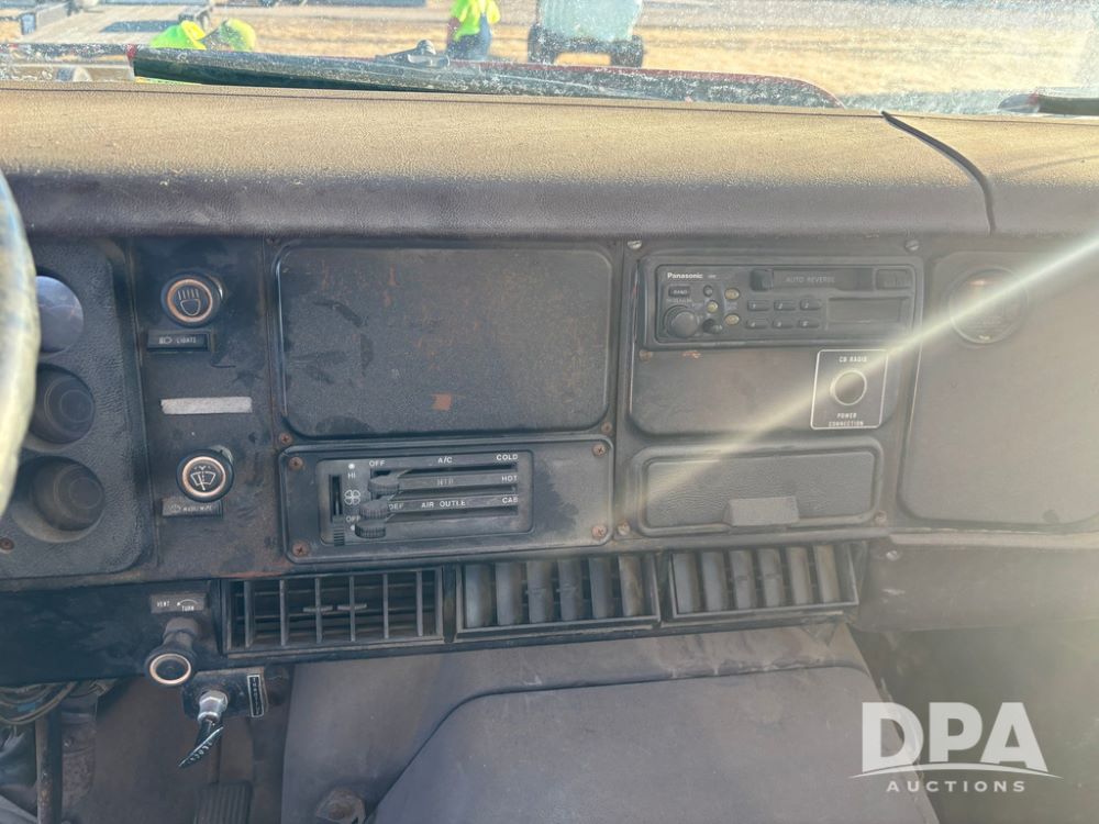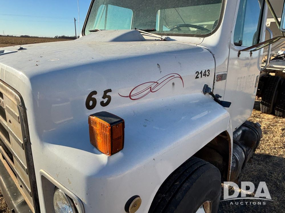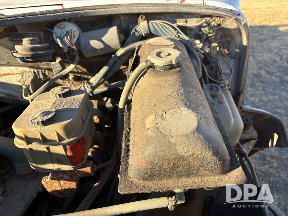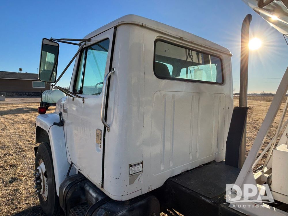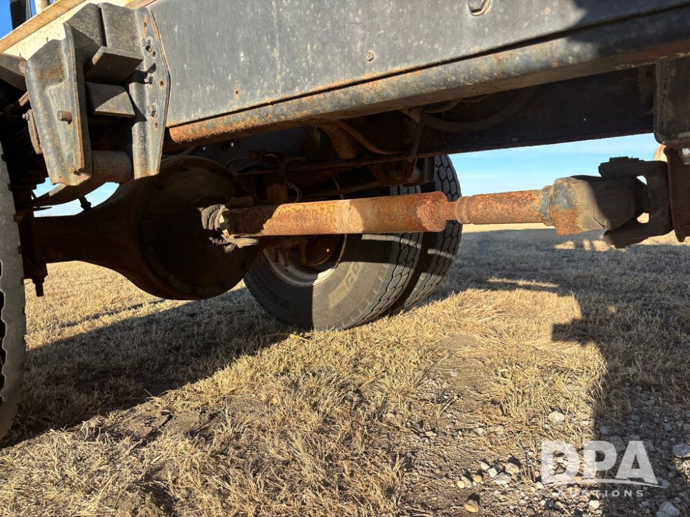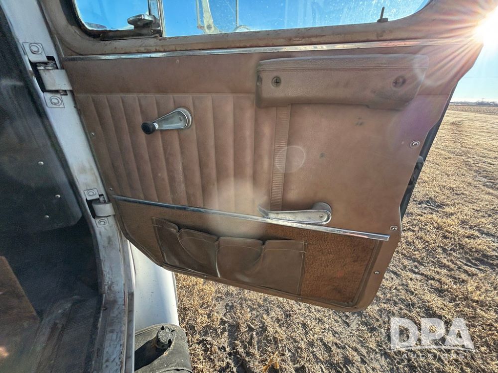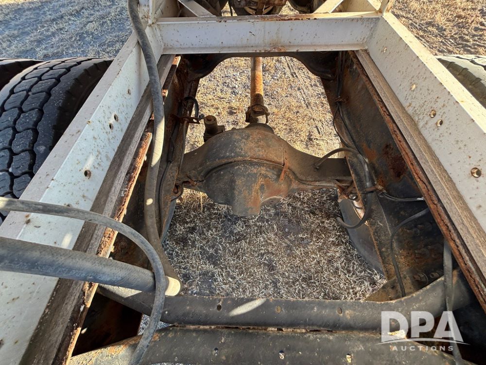 1985 IHC S1954 Dry Tender Truck (GP12272, Unit 2143), diesel engine, Spicer Double Duty D transmission, with 2 speed rear end, heat, Am/Fm radio, single axle, spring suspension, Tyler 10 ton dry tender box, rear discharge auger, all hydraulic, roll over tarp, 11R22.5 tires, shows 286,109 miles.