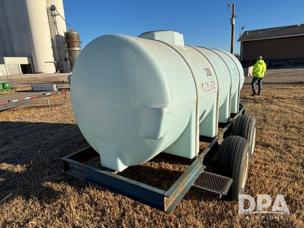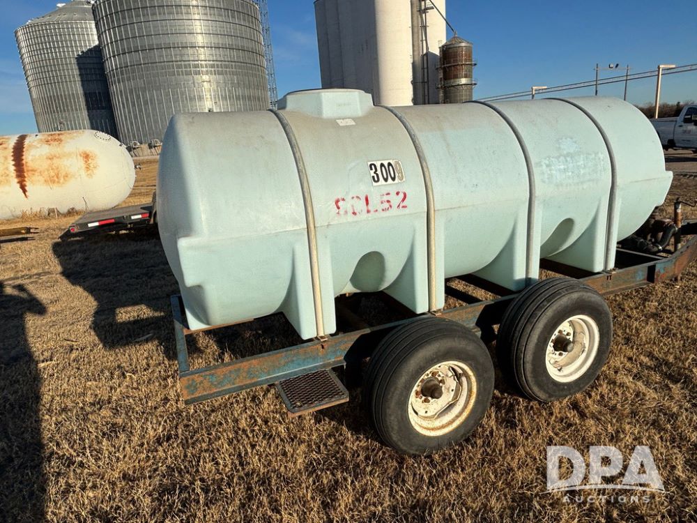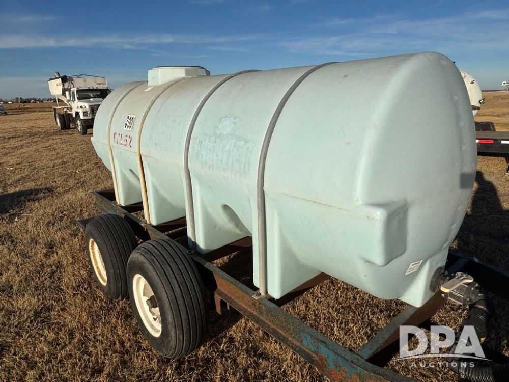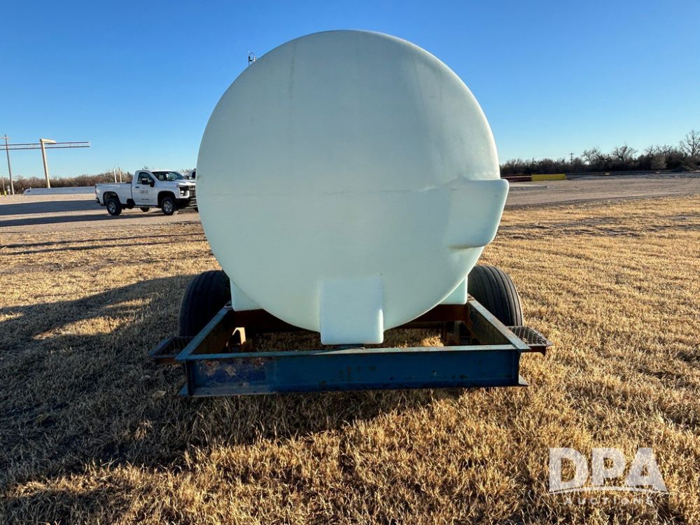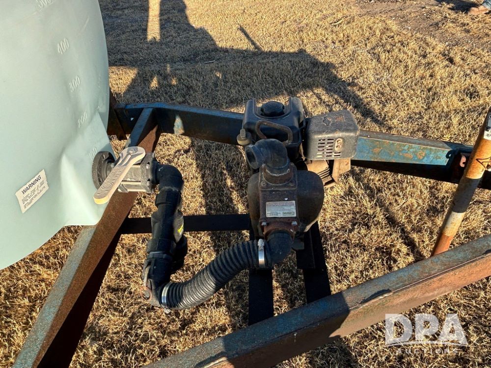 Poly Liquid Nurse Trailer (GP12275, Unit 141), 1000 gallon poly liquid nurse tank, Briggs & Stratton 5.5 hp gas engine, Banjo pump, tandem axle gear, 11L-15 flotation tires.
