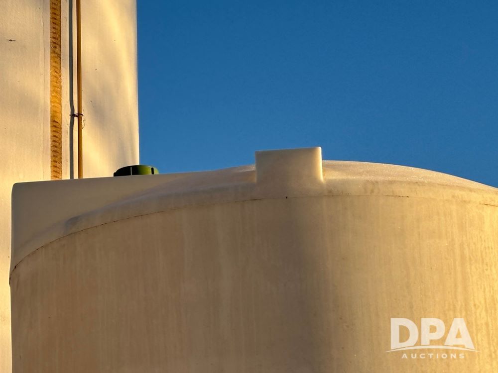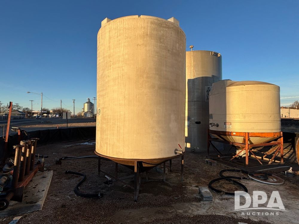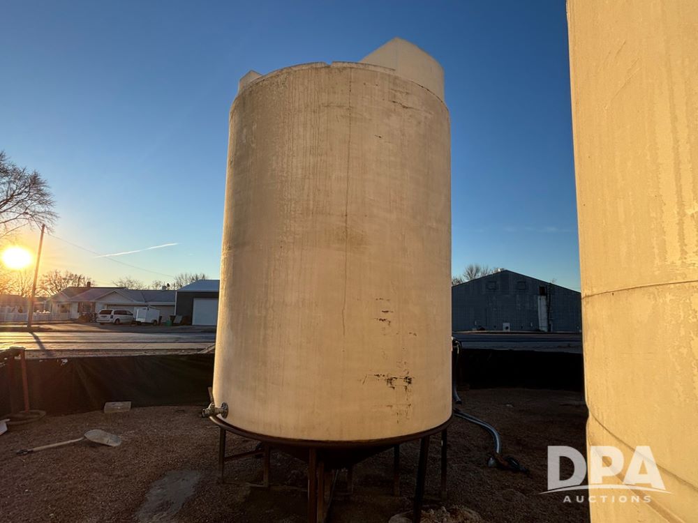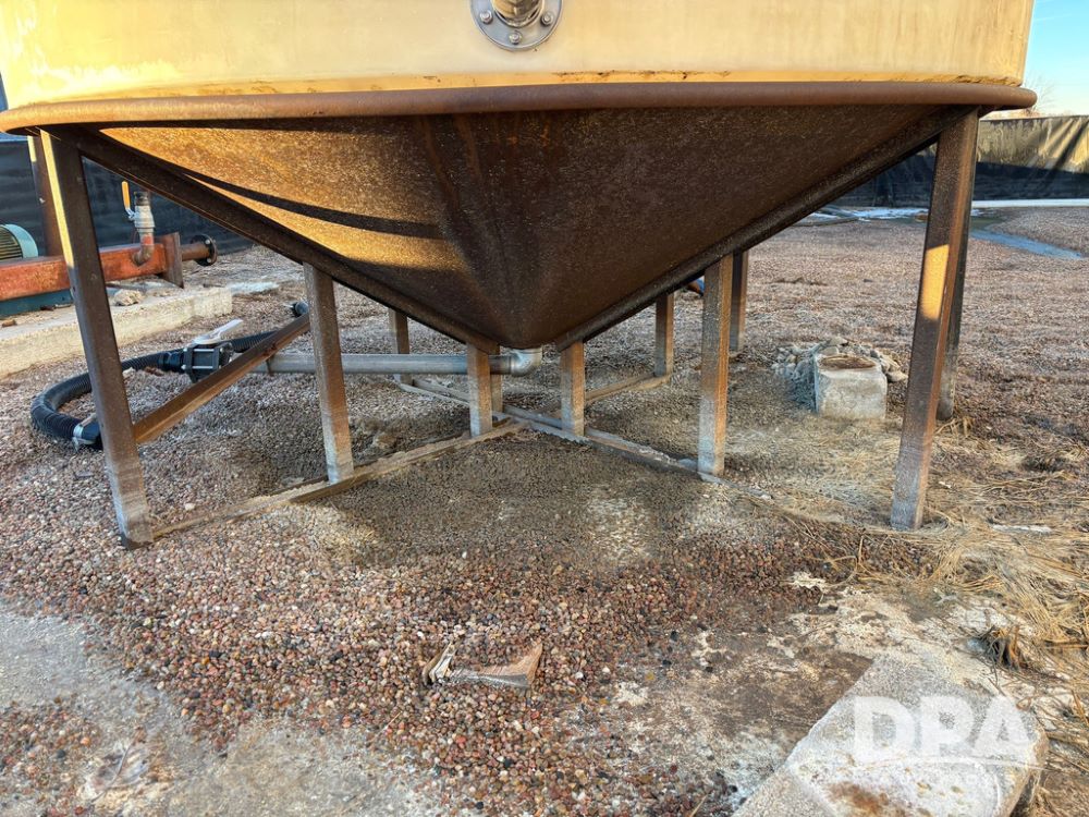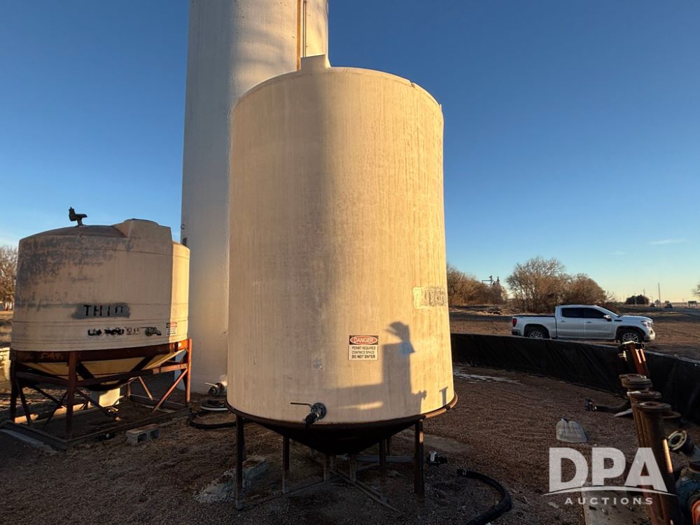 Poly Cone Bottom Liquid Tank (GP12281), approx. 3000 gallon poly cone bottom liquid tank, steel stand, valve.