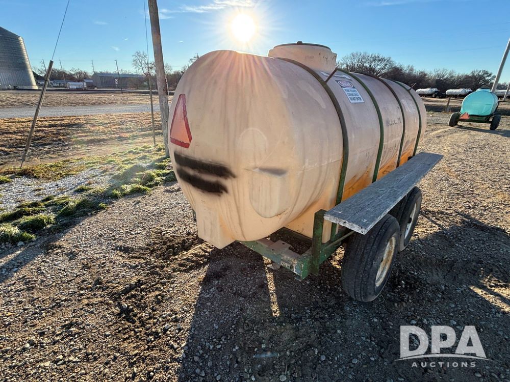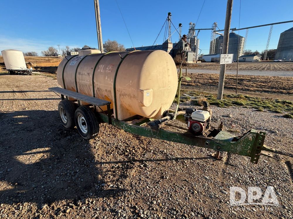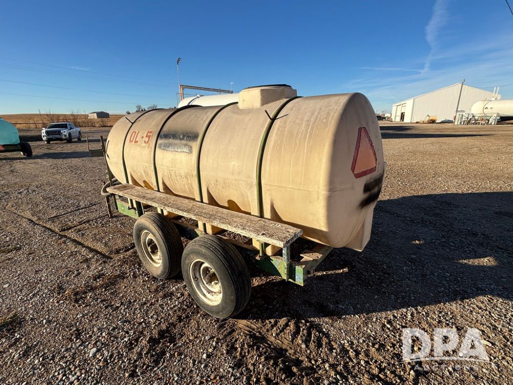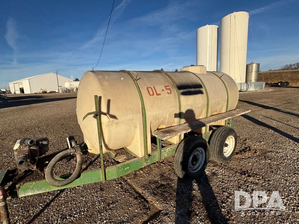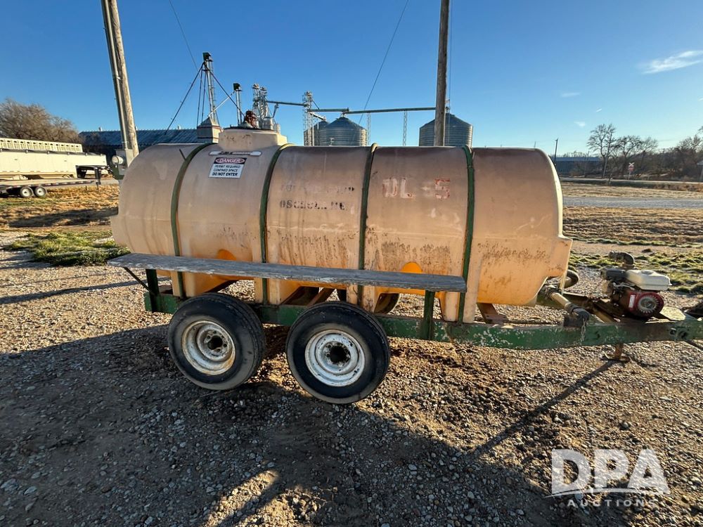 Poly Liquid Nurse Trailer (GP12285, Unit OL-5), 1000 gallon poly liquid nurse tank, gas engine, pump, tandem axle gear, 9.5L-15 flotation tires.