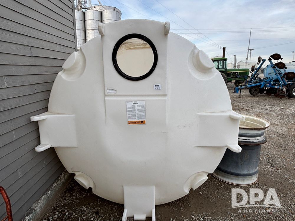 Poly Cone Bottom Liquid Tank (GP12310), approx. 2000 gallon poly cone bottom liquid tank.