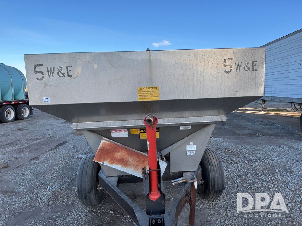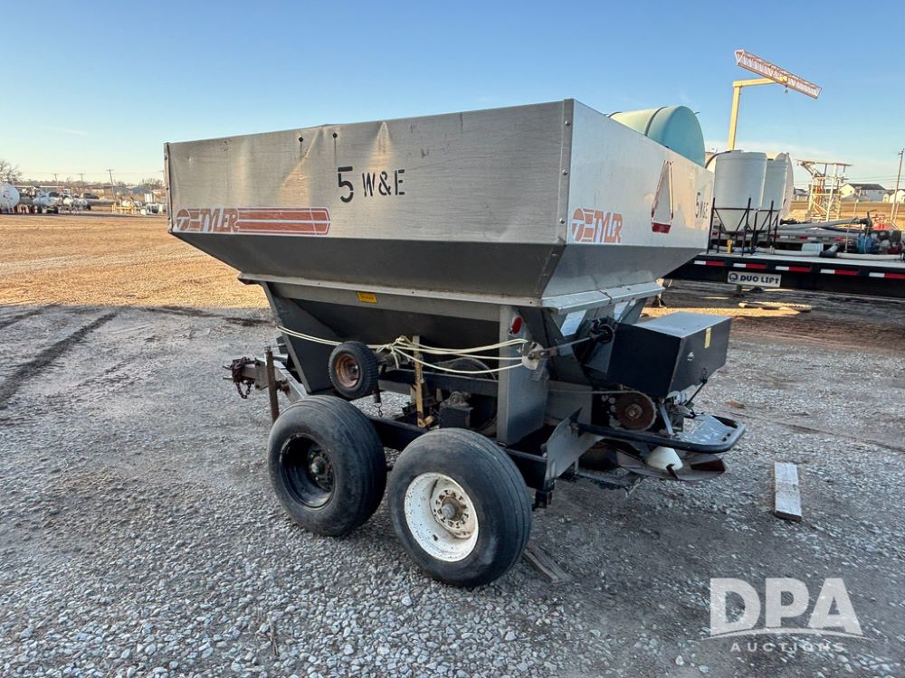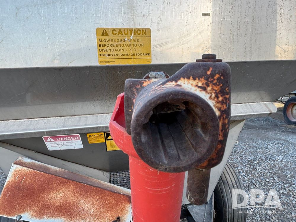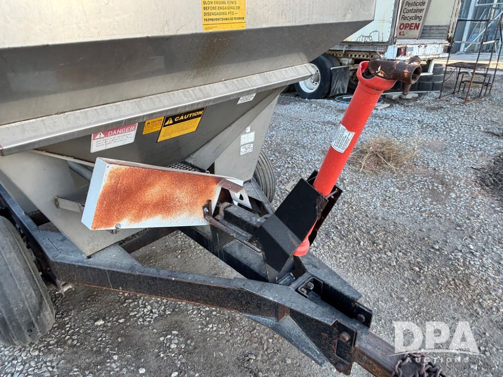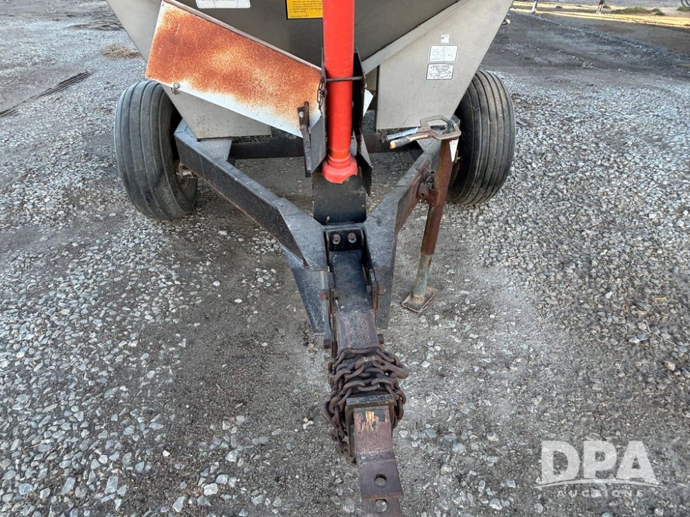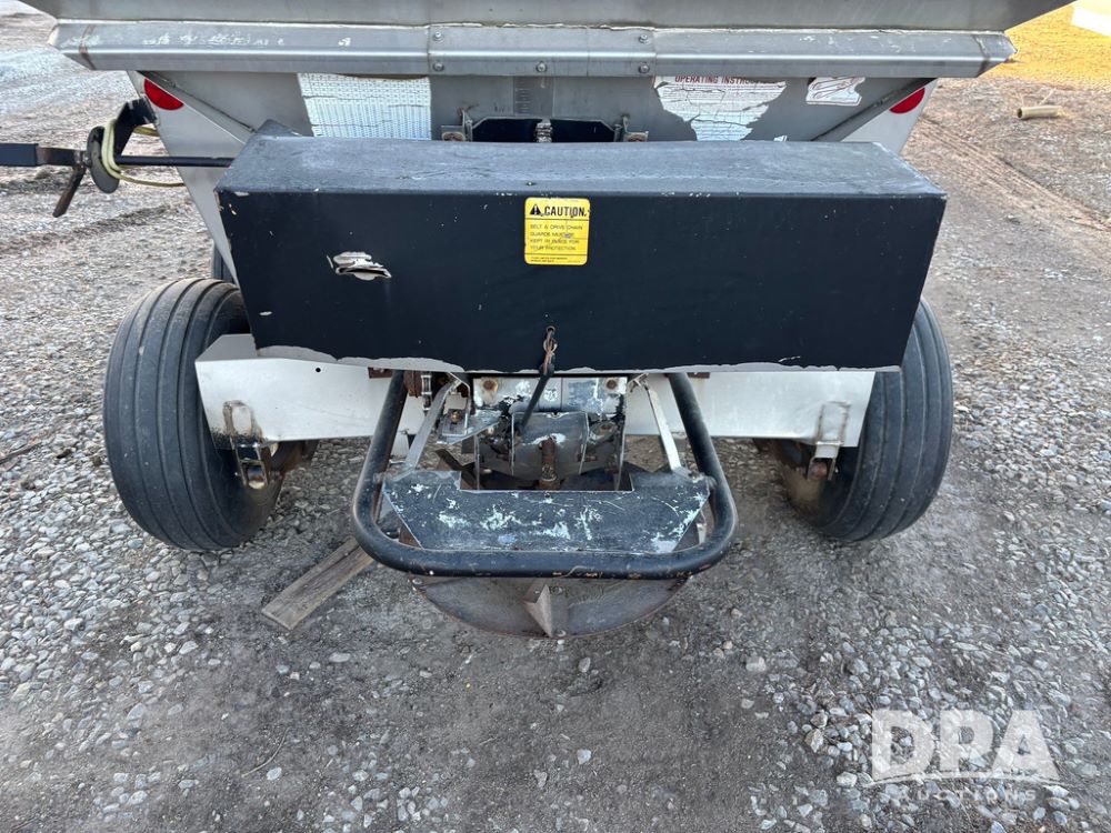 Tyler Dry Spreader (GP12327, Unit 5), Tyler stainless steel dry spreader, single spinner, PTO, tandem axle, 11L-15 flotation tires.