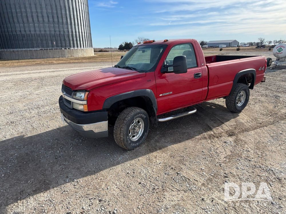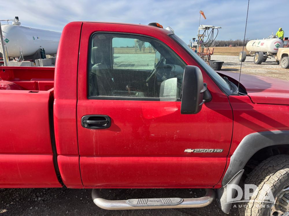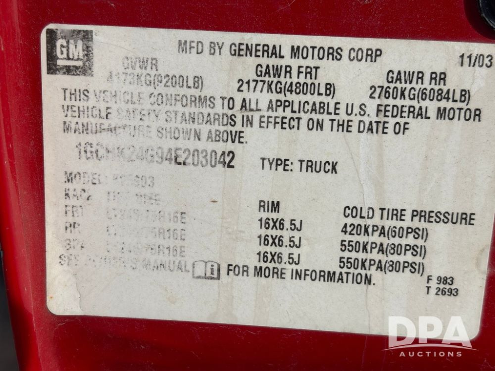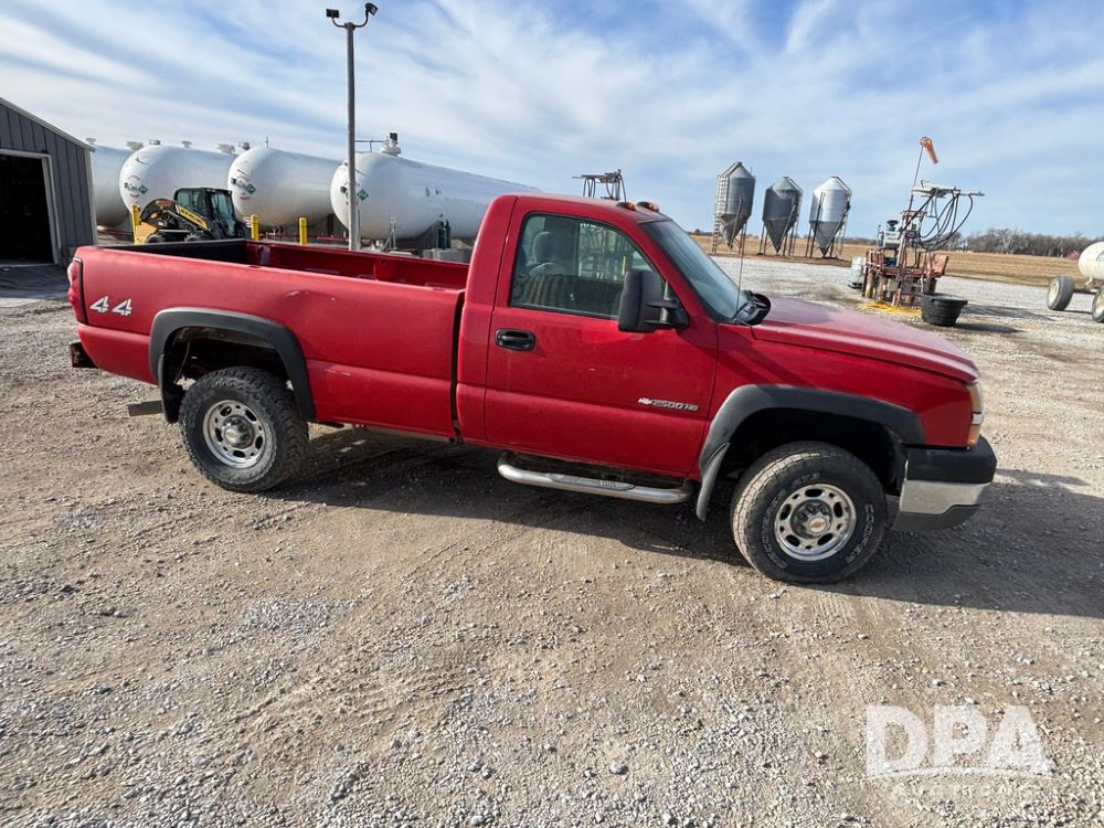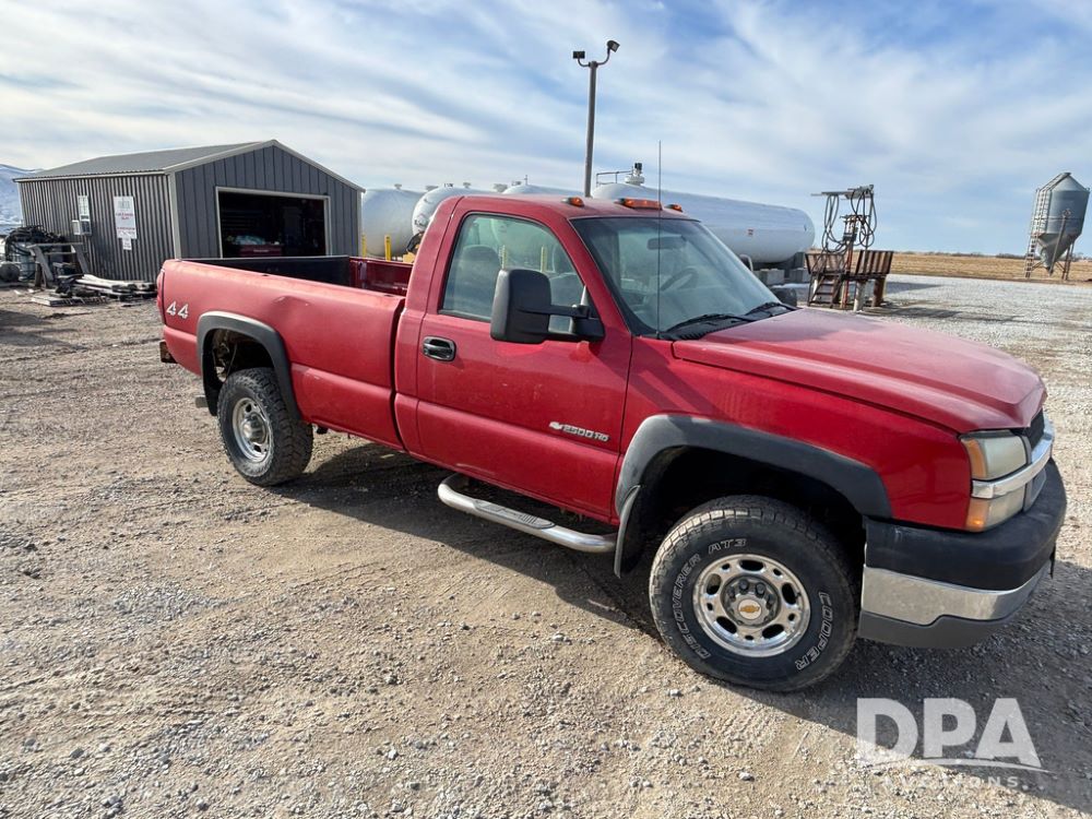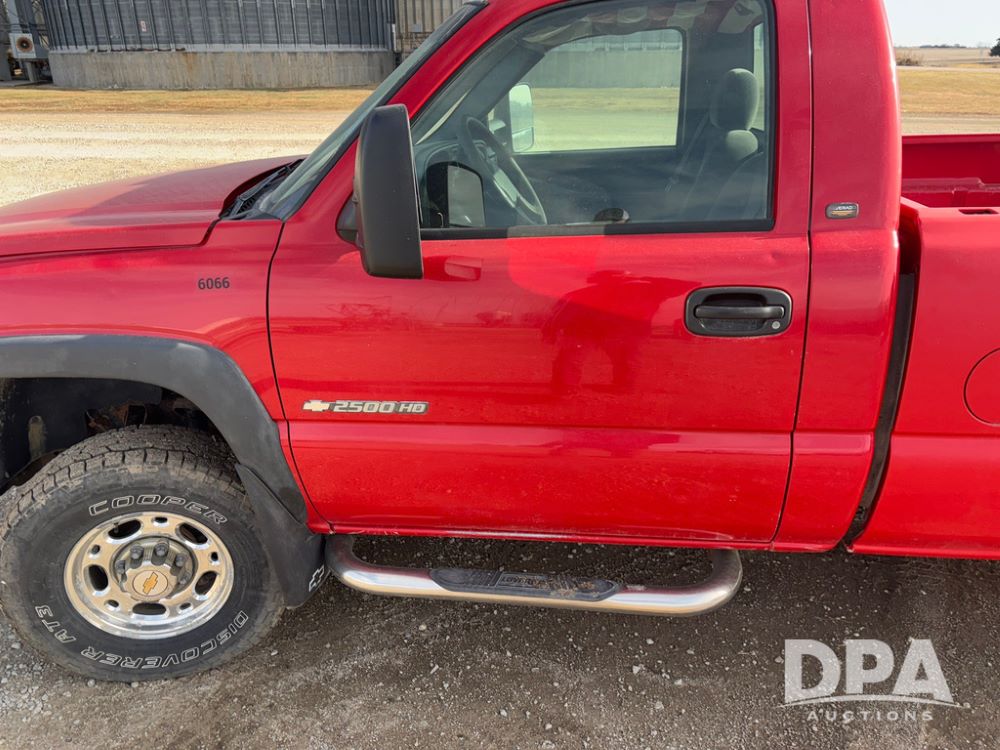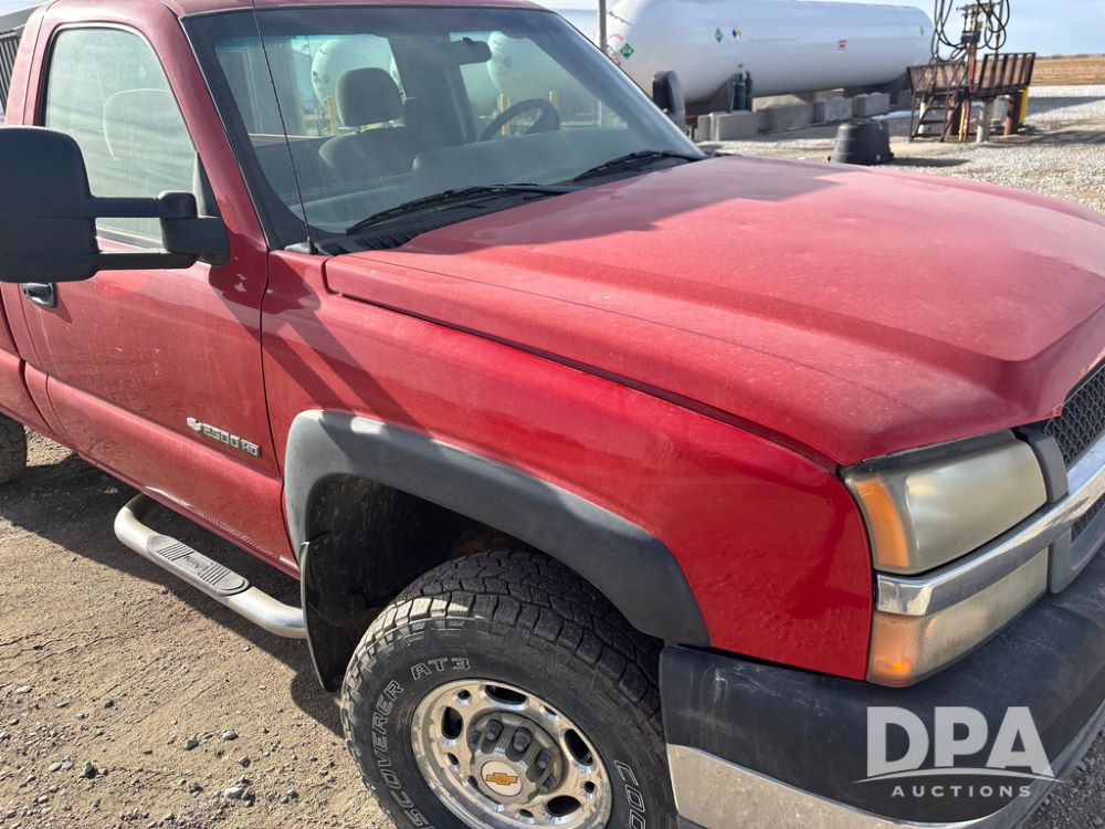 2004 Chevrolet 2500HD Pickup (GP12360, Unit 6066), 4x4, Vortec gas engine, automatic transmission, air conditioning, heat, Am/Fm radio, cruise control, running boards, rear hitch, LT265/75R16 tires, shows 127,695 miles.