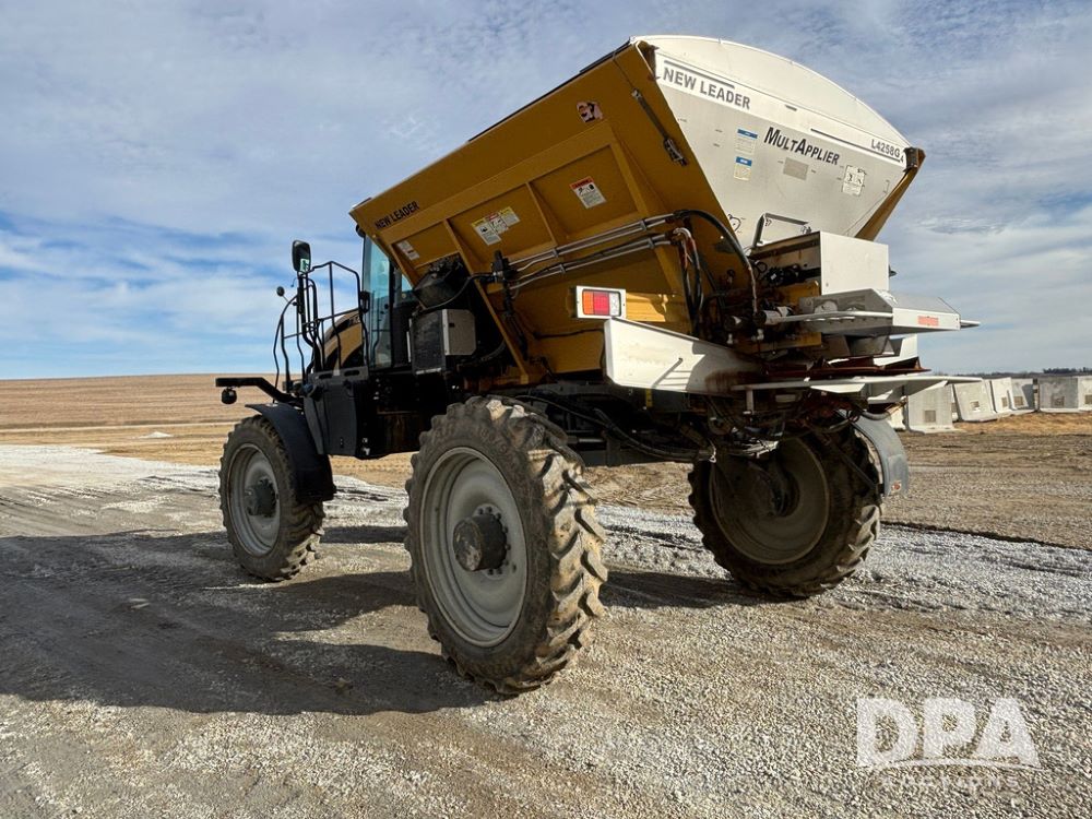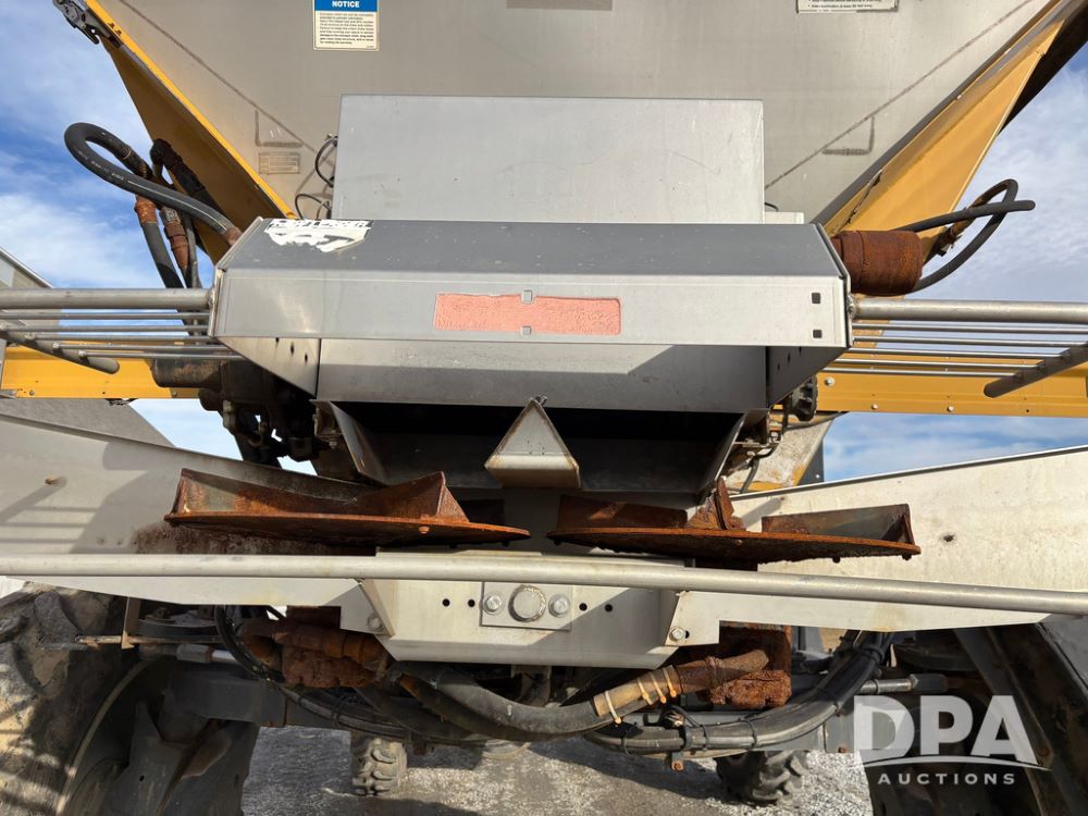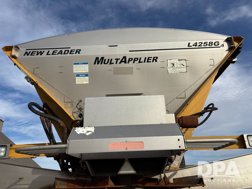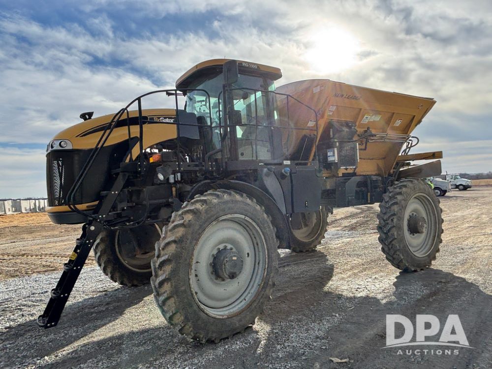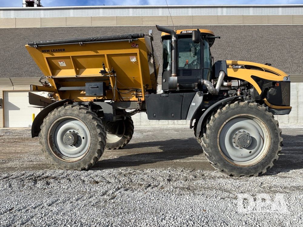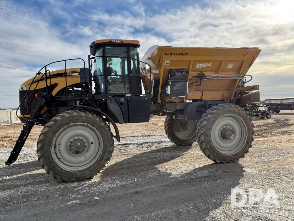 2013 RoGator 1100 Dry Machine (GP12363, Unit 3860), AGCO Sisu diesel engine, hydrostatic transmission, air conditioning, heat, Am/Fm CD radio, leather seat, buddy seat, New Leader L4258 G4 - 11' dry spreader box (S/N 134234), twin spinner, all hydraulic, New Leader 5' stainless steel insert (S/N 134755), electric roll over tarp, Good Year 380/90R46 tires, fenders, lightbar, Raven Viper 4 monitor, shows 4,020 hours.