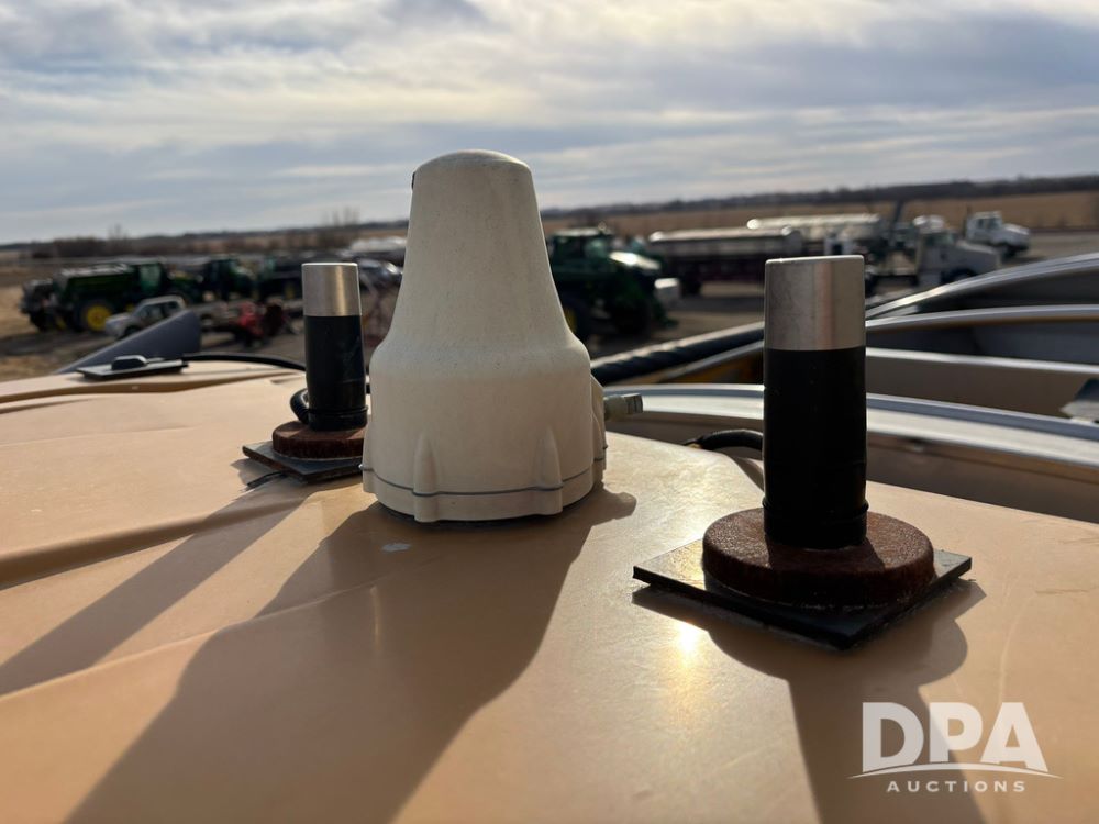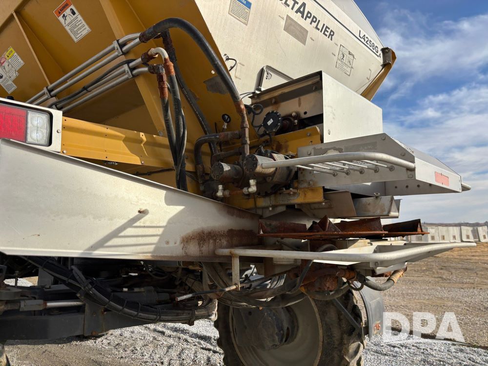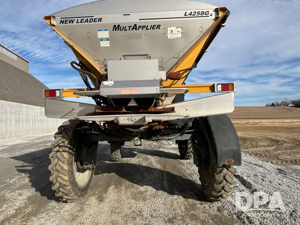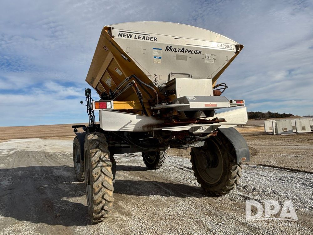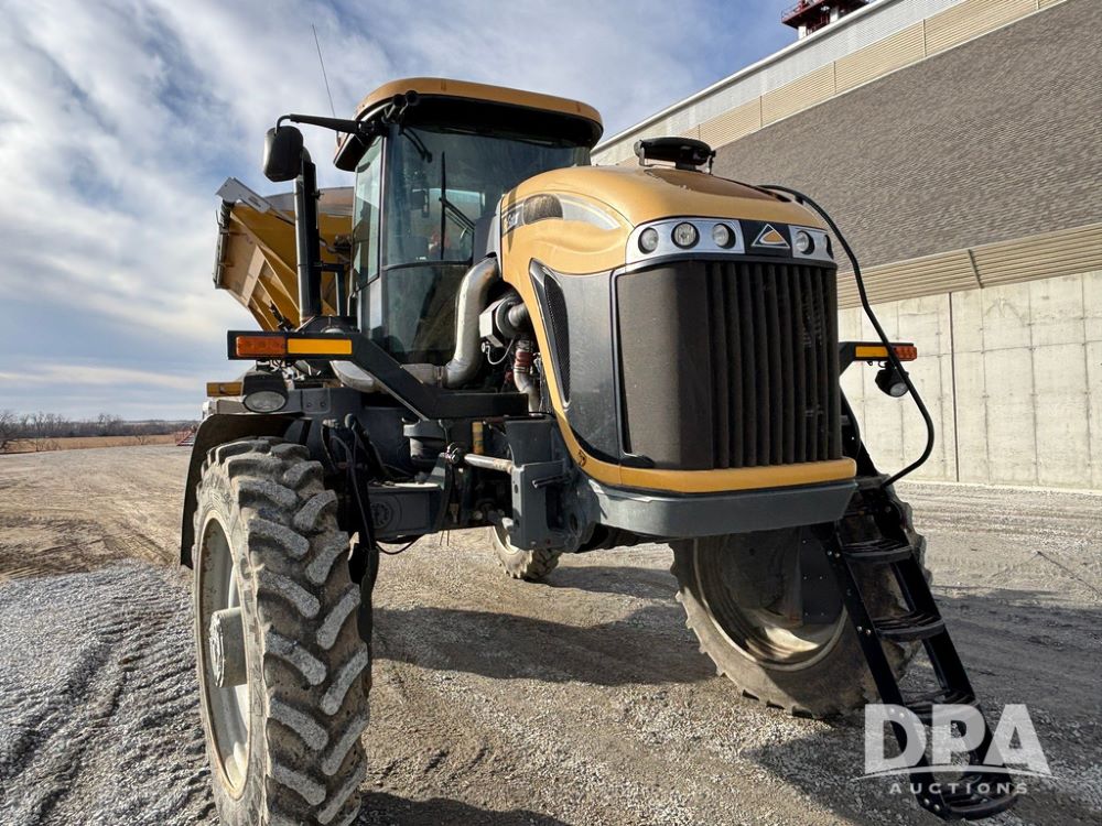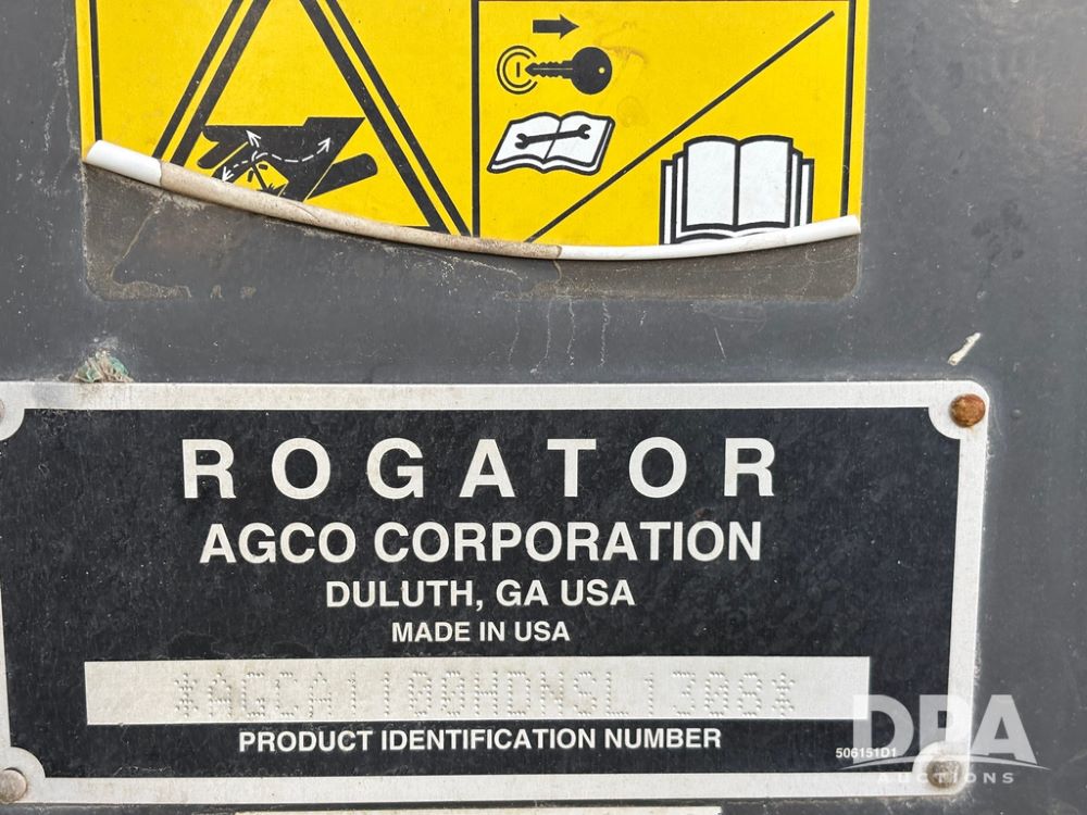 2013 RoGator 1100 Dry Machine (GP12363, Unit 3860), AGCO Sisu diesel engine, hydrostatic transmission, air conditioning, heat, Am/Fm CD radio, leather seat, buddy seat, New Leader L4258 G4 - 11' dry spreader box (S/N 134234), twin spinner, all hydraulic, New Leader 5' stainless steel insert (S/N 134755), electric roll over tarp, Good Year 380/90R46 tires, fenders, lightbar, Raven Viper 4 monitor, shows 4,020 hours.