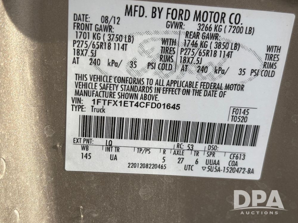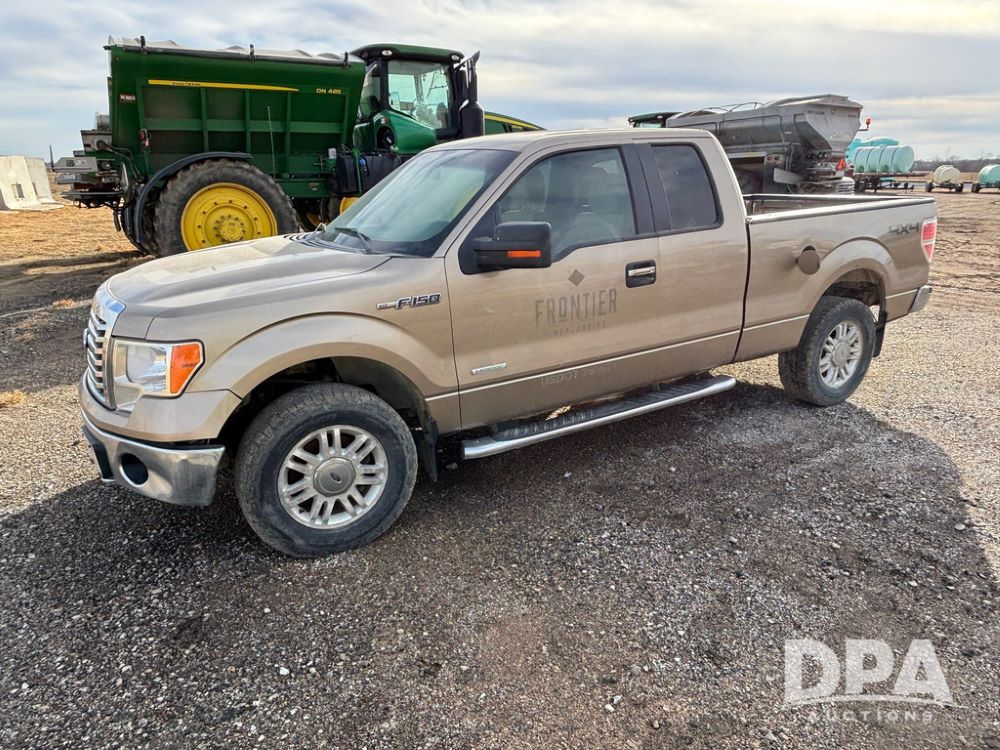 2012 Ford F150 XLT Extended Cab Pickup (GP12365, Unit 7046), 4x4, 3.5L gas engine, automatic transmission, air conditioning, heat, Am/Fm CD radio, cruise control, power windows & locks, power drivers seat, running boards, rear hitch, LT275/65R18 tires, shows 197,848 miles.