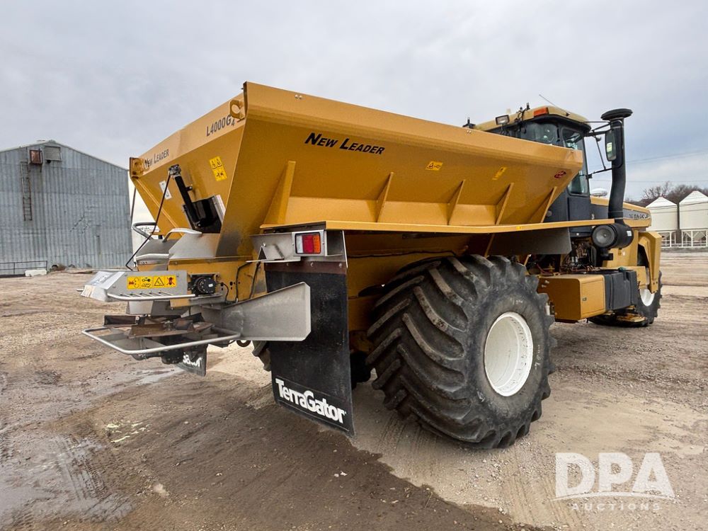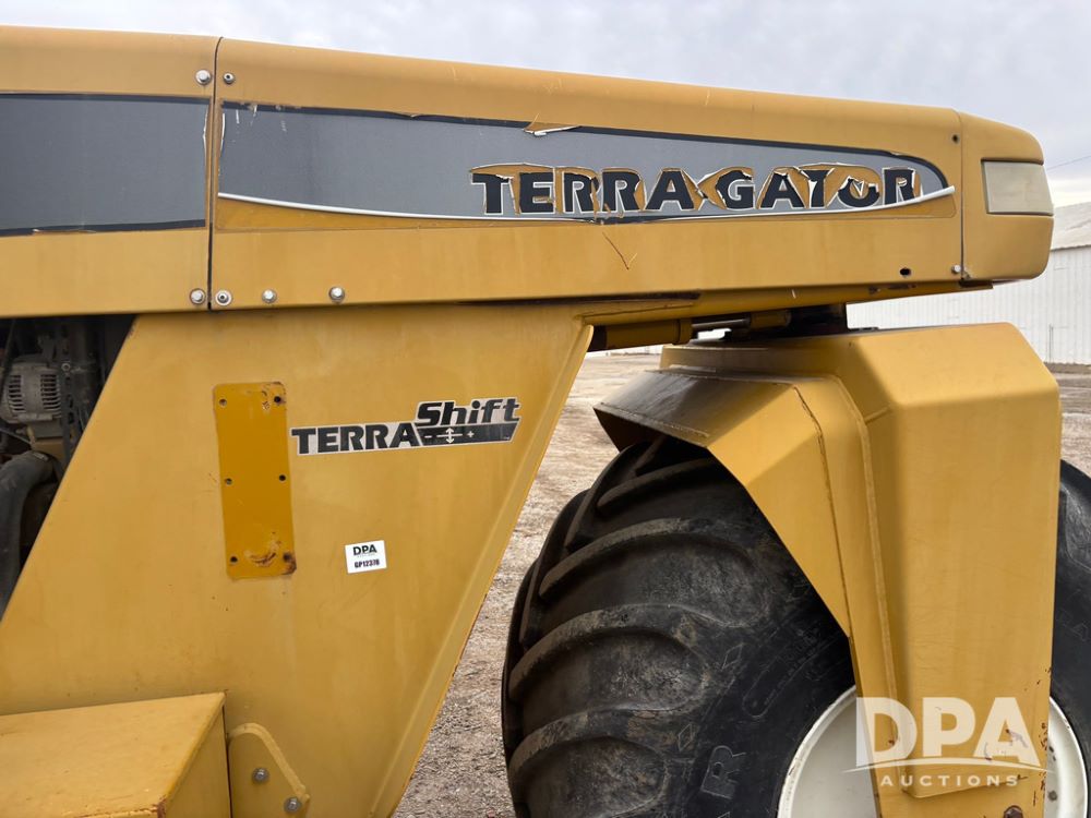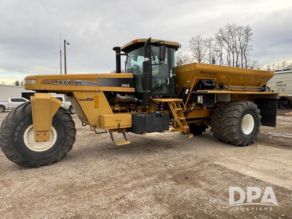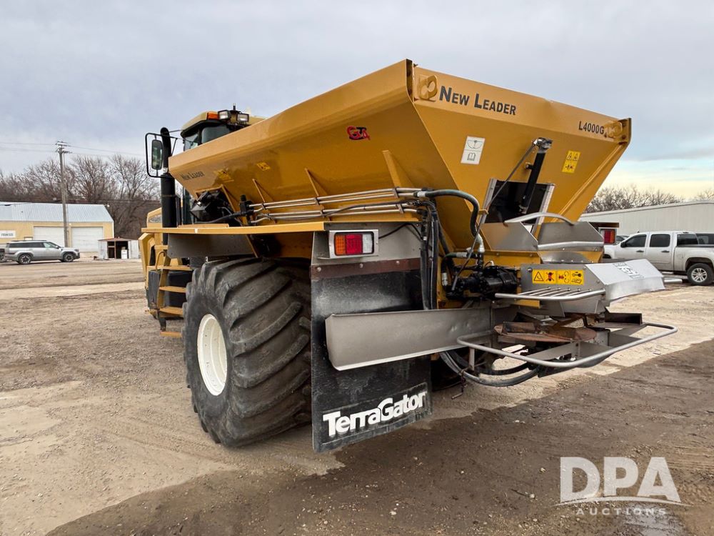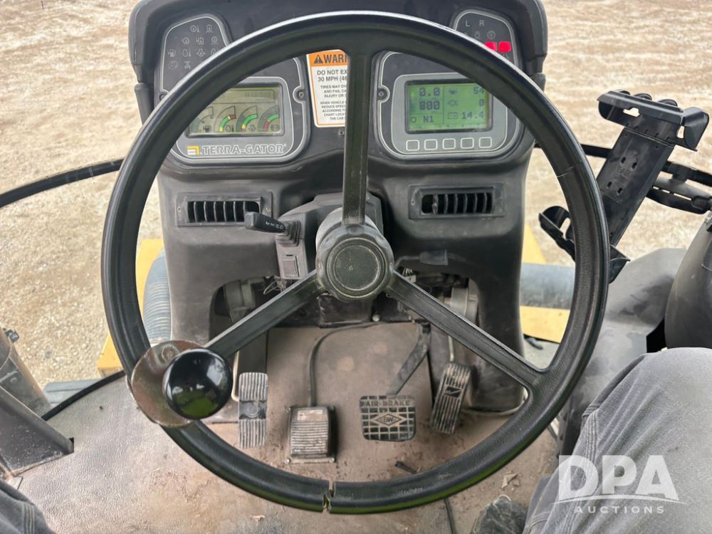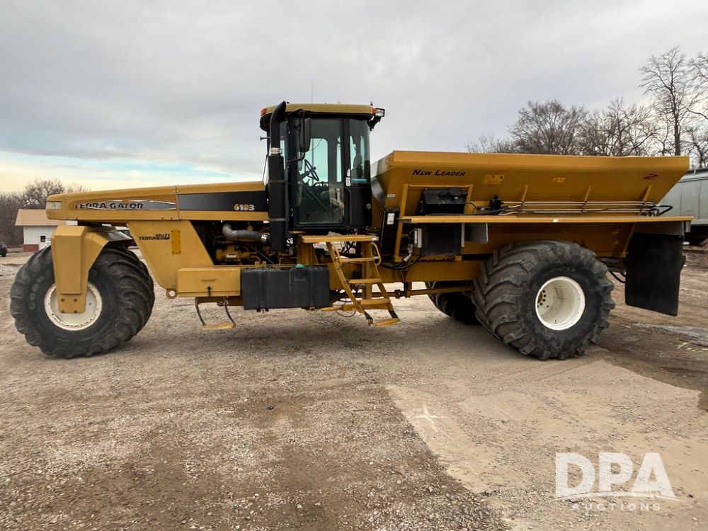 2001 Terra Gator 6103 Dry Floater (GP12378), John Deere diesel engine, Terra Shift transmission, air conditioning, heat, Am/Fm radio, New Leader G4 - 14' stainless steel dry spreader box (S/N 504706), twin spinner, all hydraulic, Good Year 1000/50R25 front tire, Alliance Agri-Star & Good Year 1000/50R25 rear tires, slingshot field hub, Raven Viper 4 monitor, shows 6,692 hours.