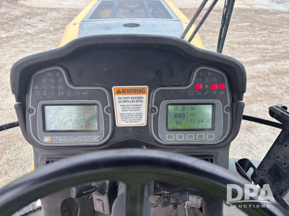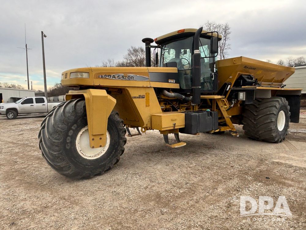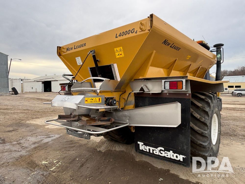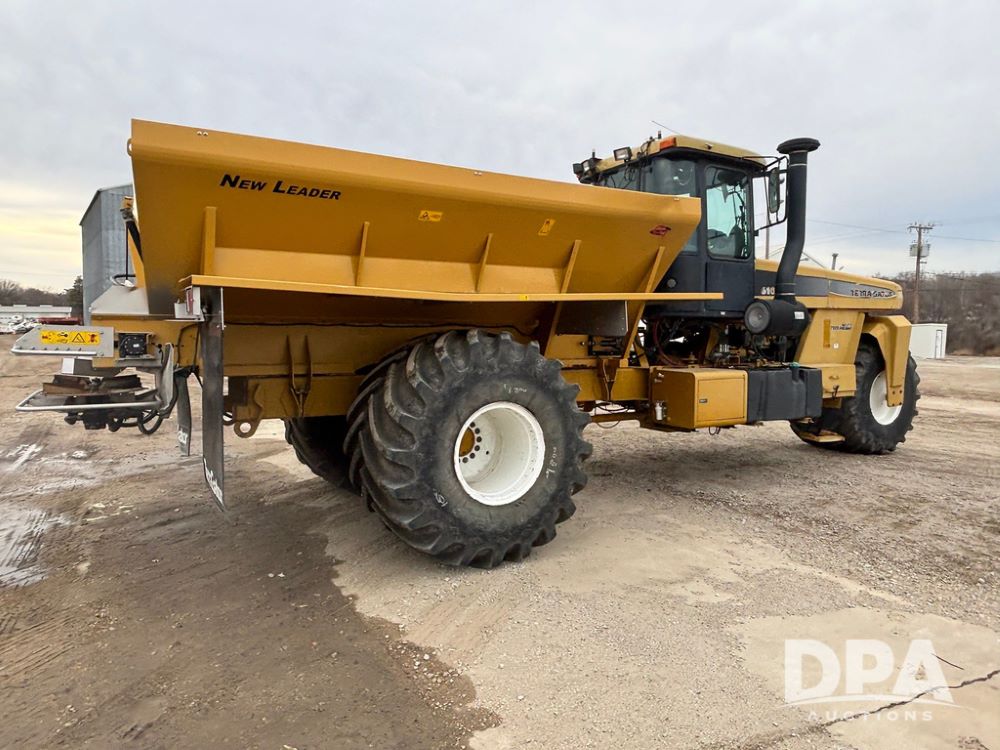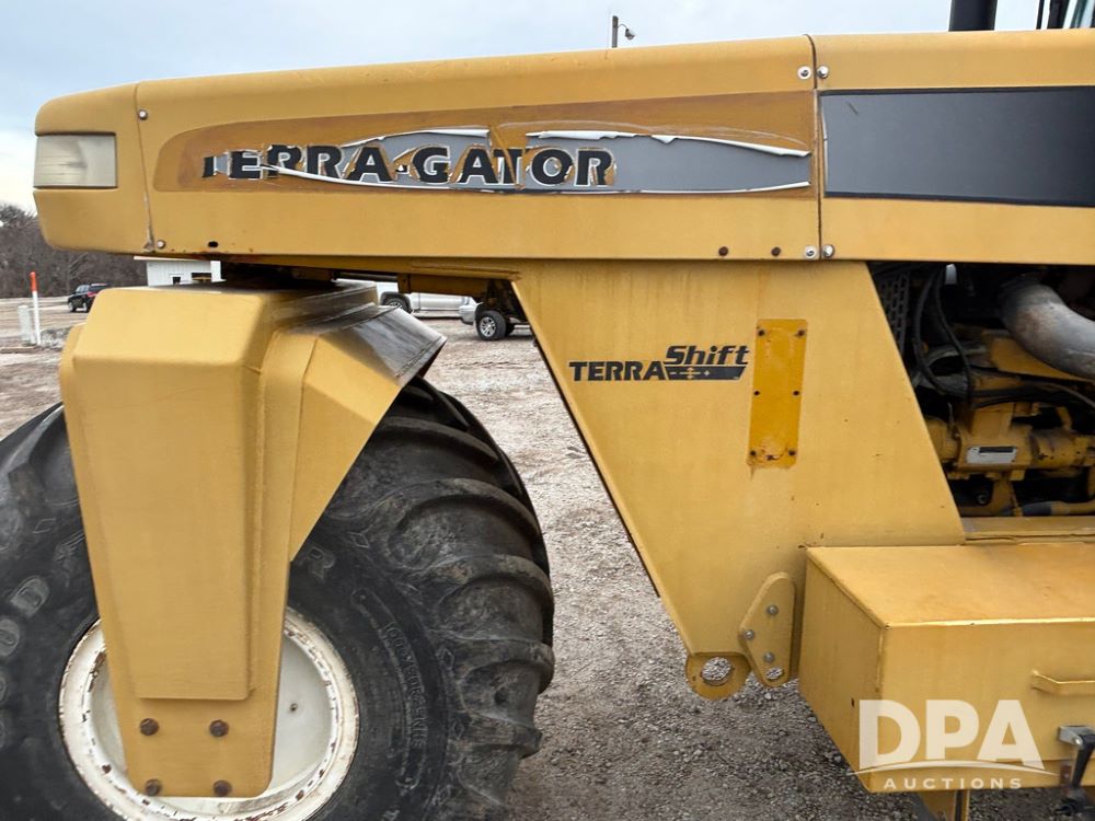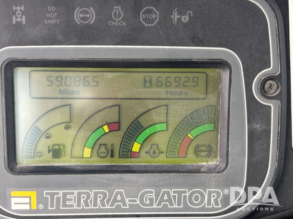 2001 Terra Gator 6103 Dry Floater (GP12378), John Deere diesel engine, Terra Shift transmission, air conditioning, heat, Am/Fm radio, New Leader G4 - 14' stainless steel dry spreader box (S/N 504706), twin spinner, all hydraulic, Good Year 1000/50R25 front tire, Alliance Agri-Star & Good Year 1000/50R25 rear tires, slingshot field hub, Raven Viper 4 monitor, shows 6,692 hours.