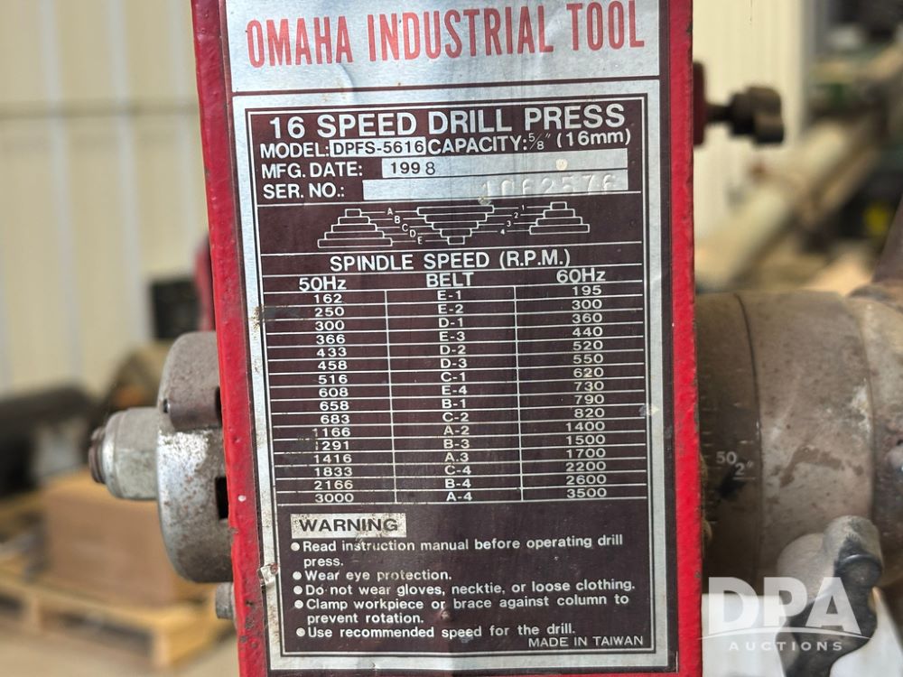 1998 Omaha Industrial Tool Drill Press (GP12382), Omaha Industrial Tool model DPFS-5616 drill press.