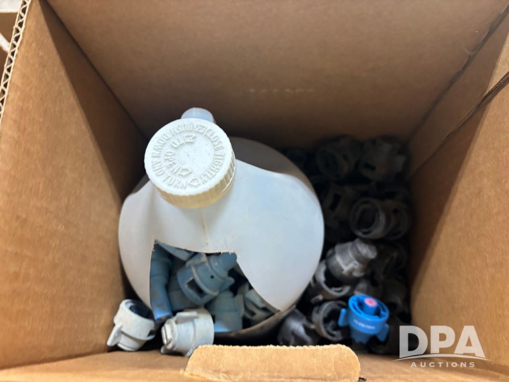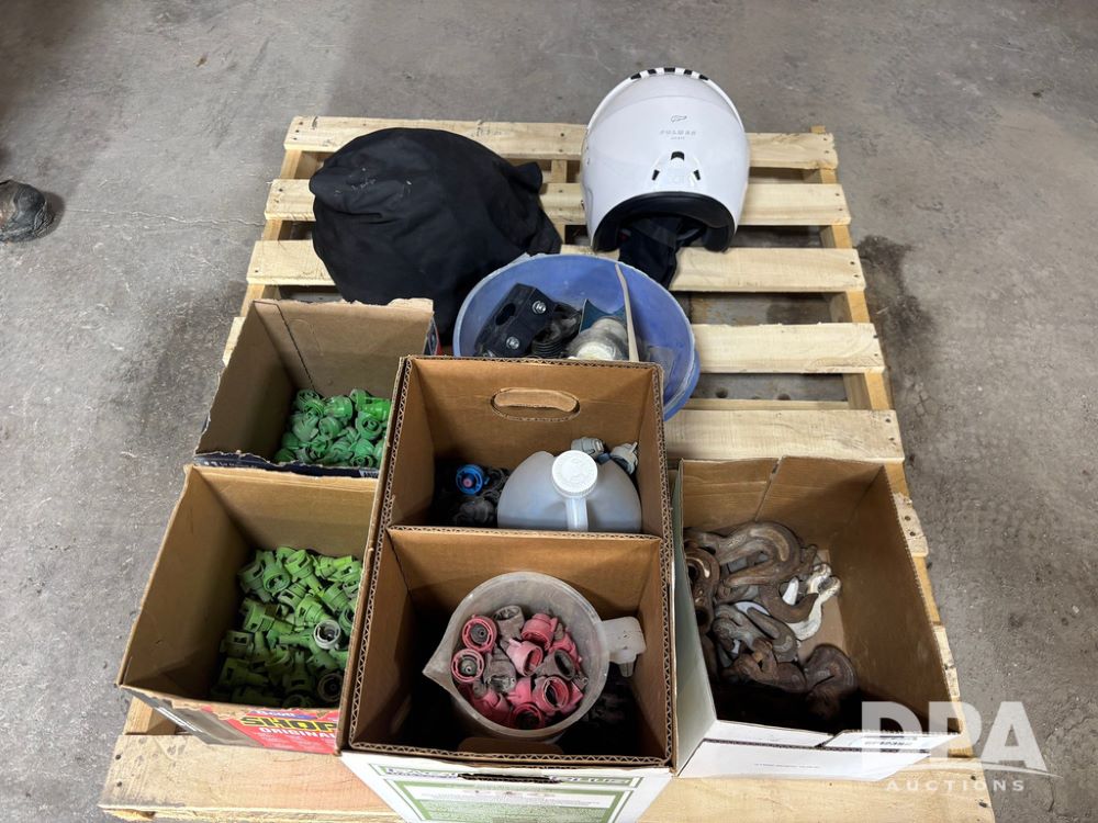 Pallet of Spray Nozzles (GP12396), Pallet of spray nozzles and ATV helmets.